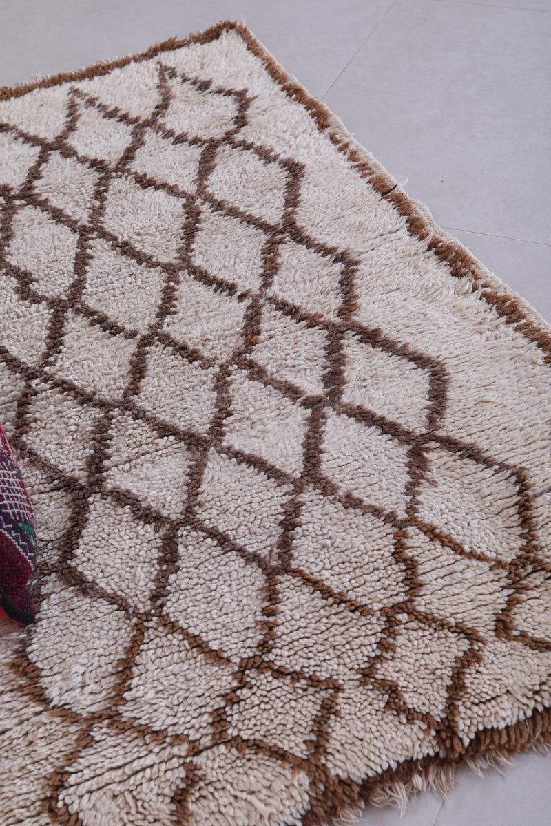 Elevate your interior with this beige and brown Beni Ourain rug, handwoven from soft Moroccan wool. Measuring 2.8 x 4.8 FT, it features a classic lattice pattern in warm earthy tones—ideal for bedrooms, reading nooks, or minimalist spaces that crave cozy sophistication.