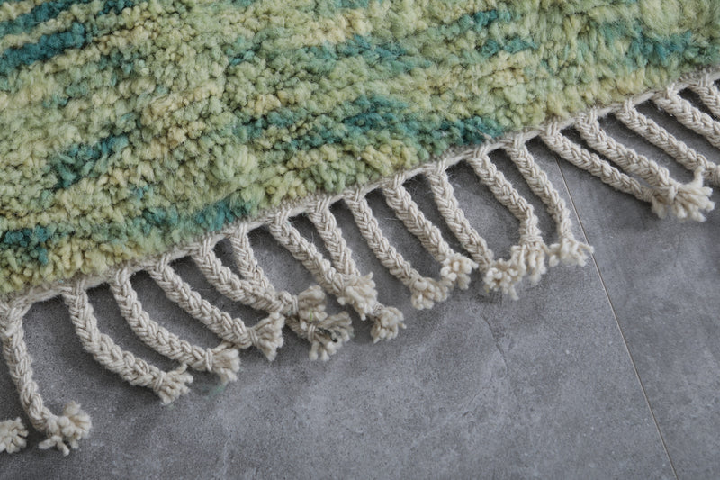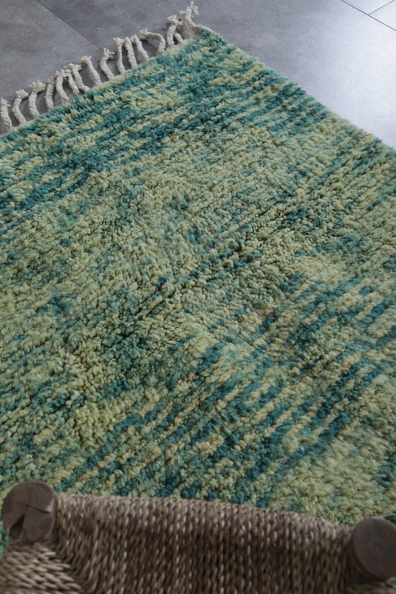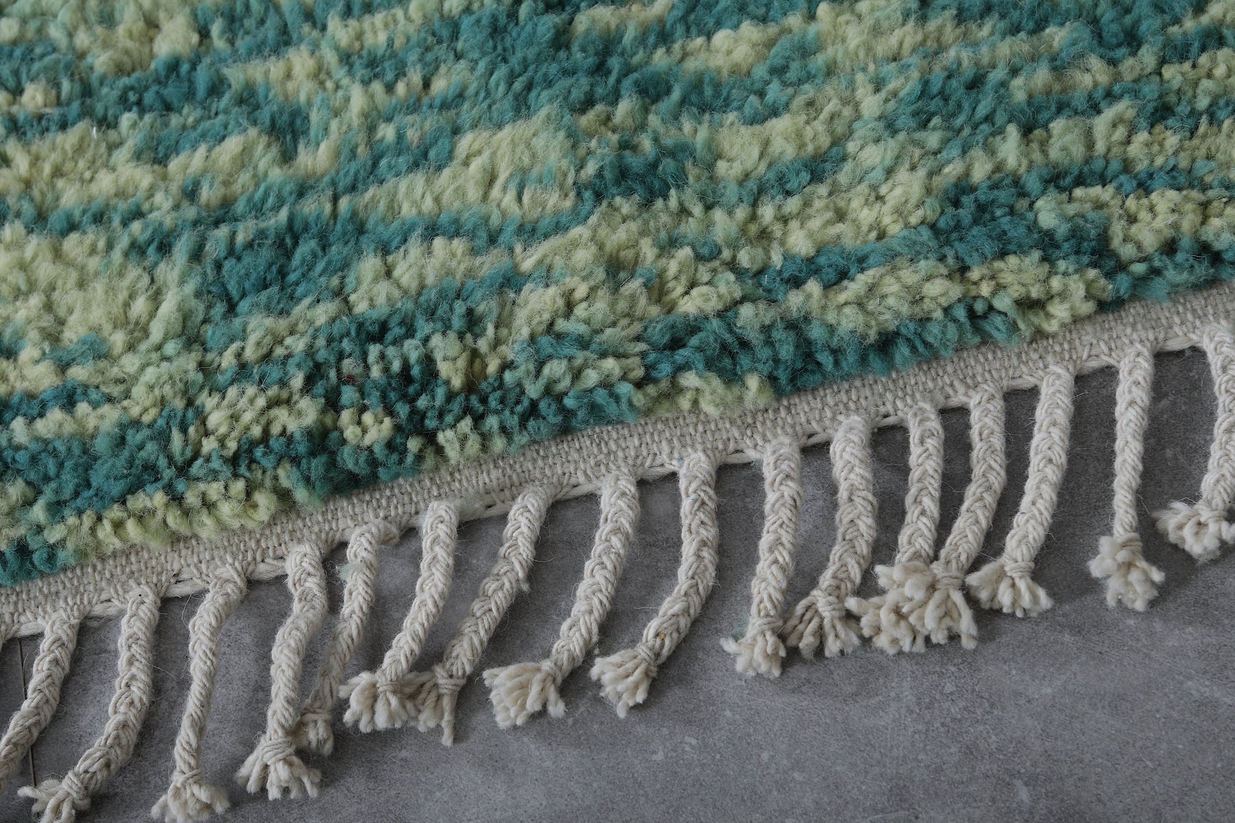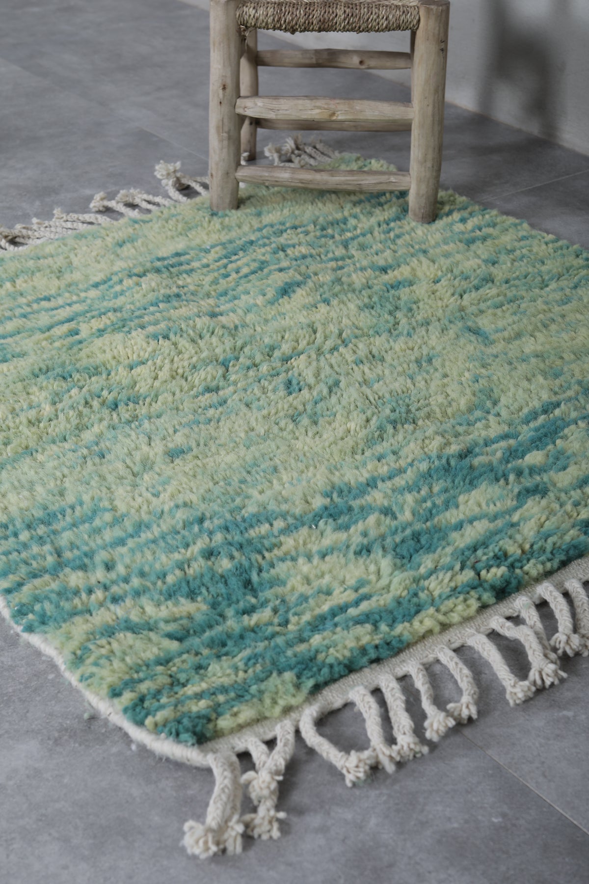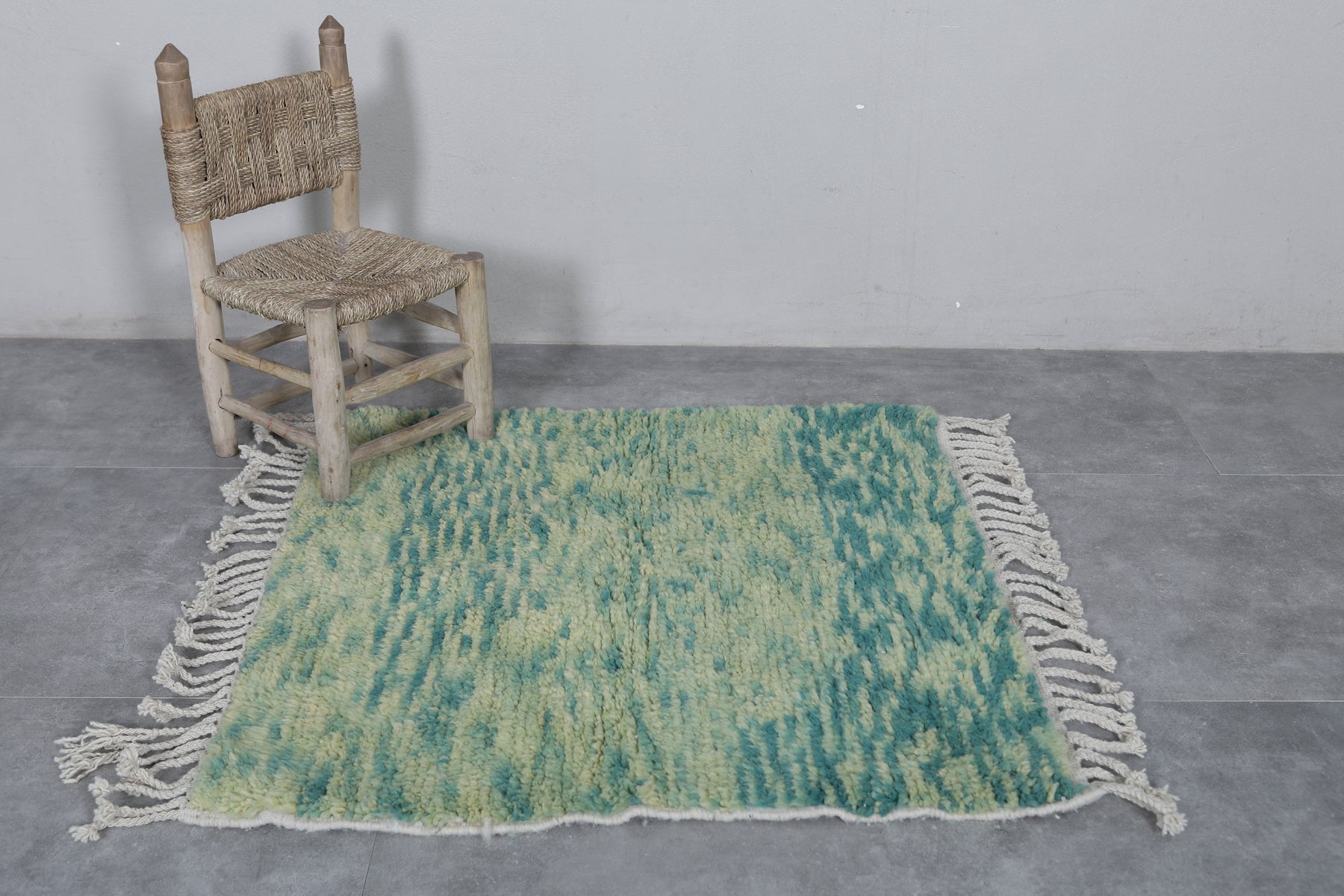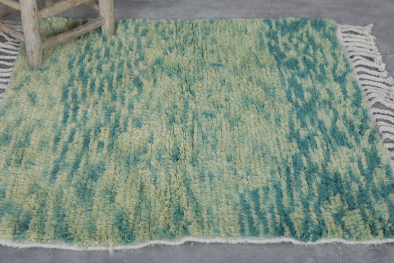 Beni ourain Moroccan rug - Handwoven 3.1 x 3.1 Feet | Green wool accent