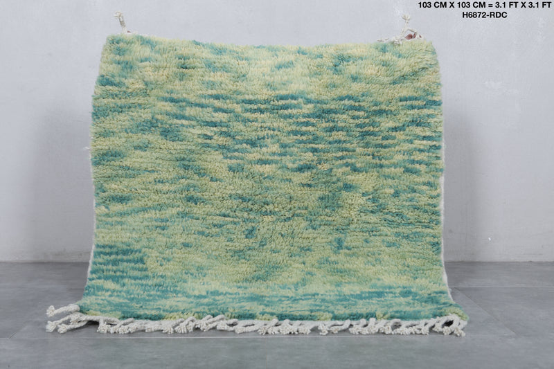 Infuse your space with the vibrant charm of this Beni Ourain Moroccan Rug, handwoven from premium natural wool. Measuring 3.1 x 3.1 feet (103 CM x 103 CM), this compact rug features a stunning blend of green hues with abstract patterns, perfect for adding character to entryways, reading nooks, or small living areas. Its square shape and plush texture ensure comfort and style, while its high-quality craftsmanship provides lasting durability. A blend of traditional Moroccan artistry and modern design, this rug is a versatile and elegant accent for any home. Add a splash of color to your space today!