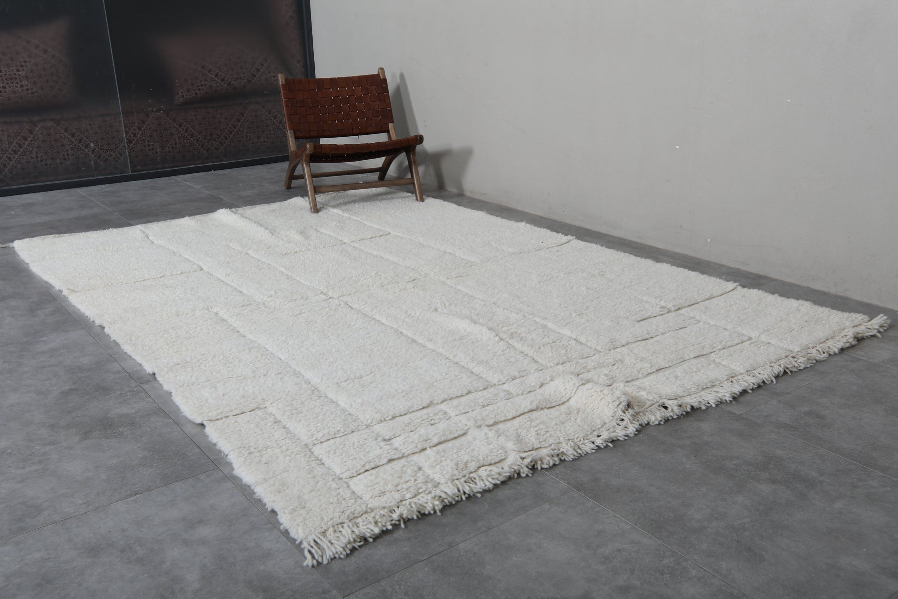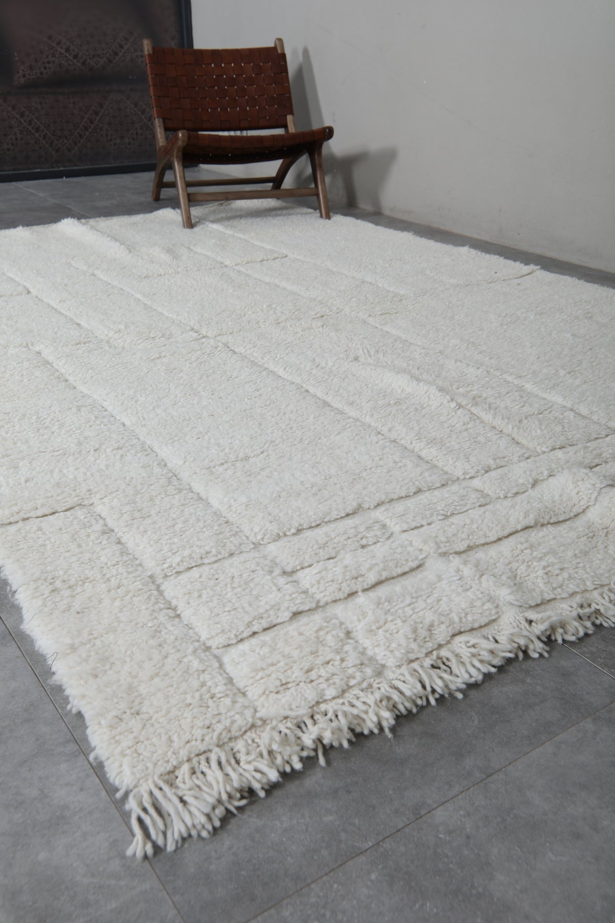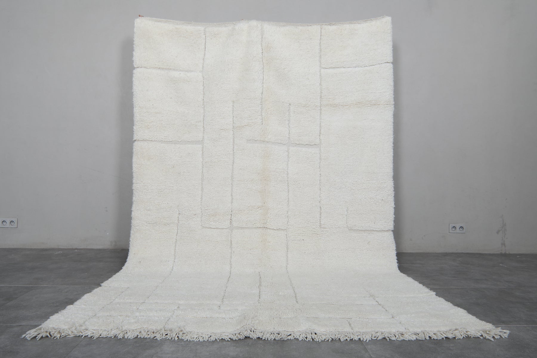 Beni ourain Moroccan wool rug - 6.6 x 9.6 Feet | Minimalist ivory design