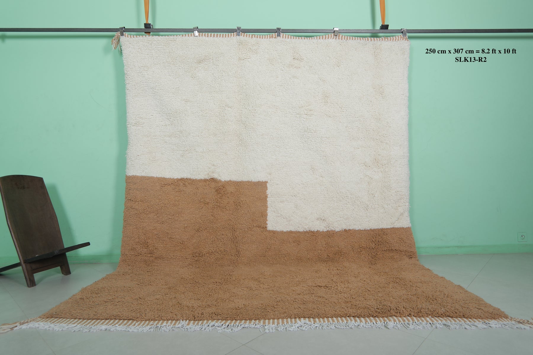 Elevate your space with this Beni Ourain Moroccan Rug, sized at 8.2 x 10 feet (250 CM x 307 CM). Handwoven from 100% natural wool, this exquisite rug features a modern two-tone design with soft white and warm beige hues, creating a cozy yet stylish ambiance. Its plush texture ensures exceptional comfort, while its durable craftsmanship guarantees long-lasting quality. A seamless blend of traditional Moroccan artistry and contemporary sophistication, this rug is a timeless statement piece for any home.