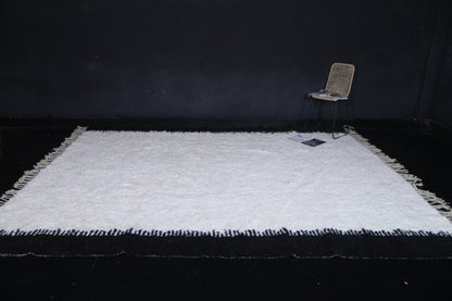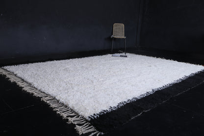 Add this stunning Moroccan rug to your room, with its minimalist design in crisp white and bold black side borders. Handwoven by skilled artisans from high-quality wool, it effortlessly merges traditional craftsmanship with modern aesthetics. The soft texture and clean contrast make it a perfect statement piece for contemporary, Scandinavian, or boho interiors. Perfect for living rooms, bedrooms, or office rooms, it adds warmth, depth, and a touch of Moroccan heritage to your home. Its neutral tones will easily fit in anywhere, while the bold edges bring a unique visual appeal to them. Durable, cozy, and timeless, this is one beautiful addition to any modern home.