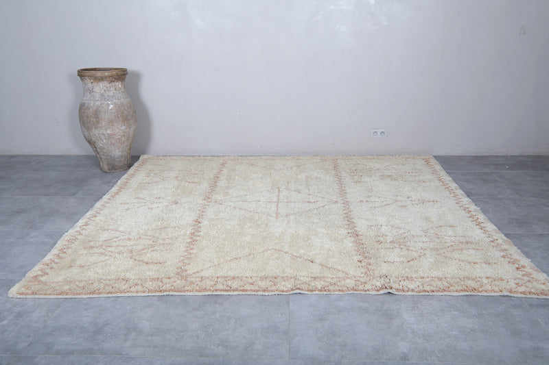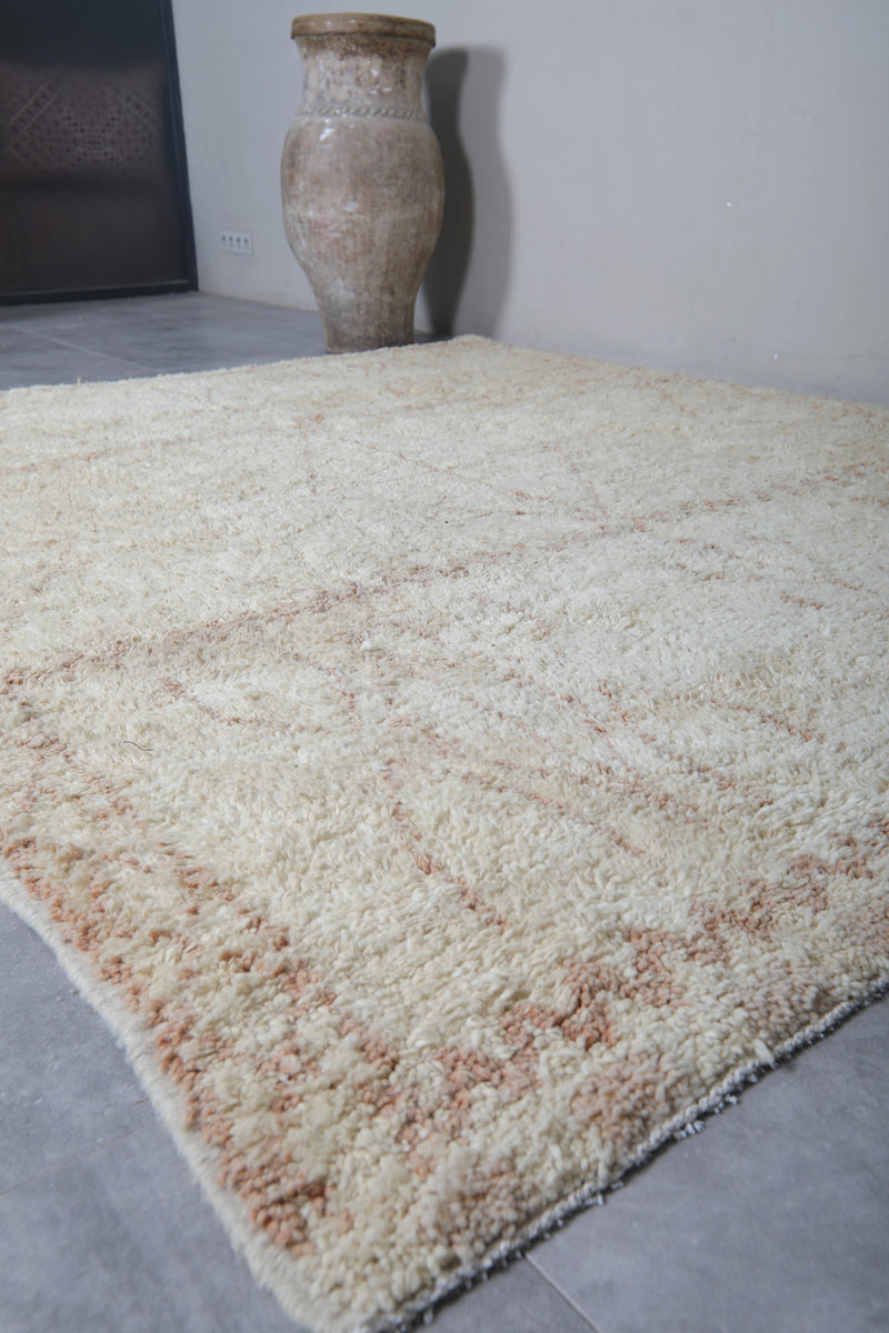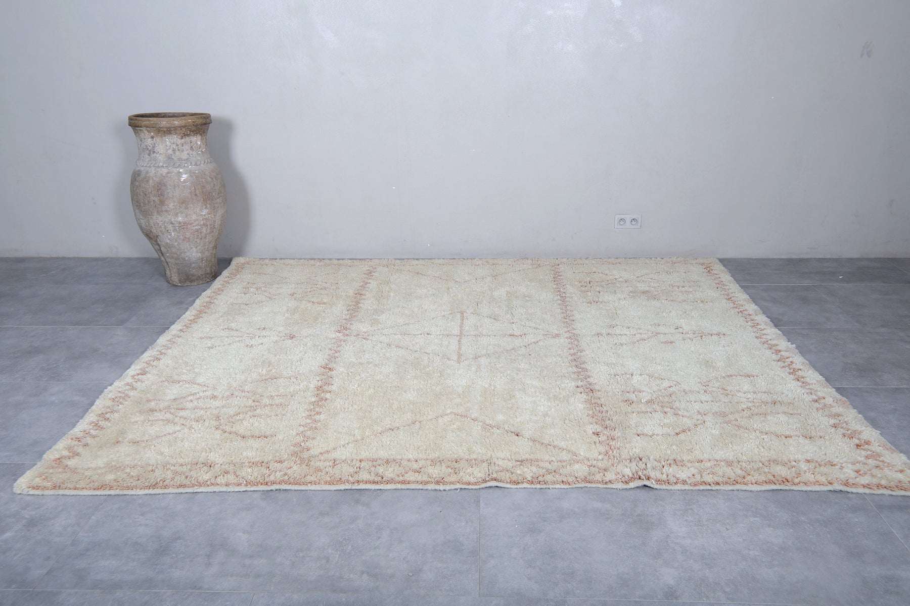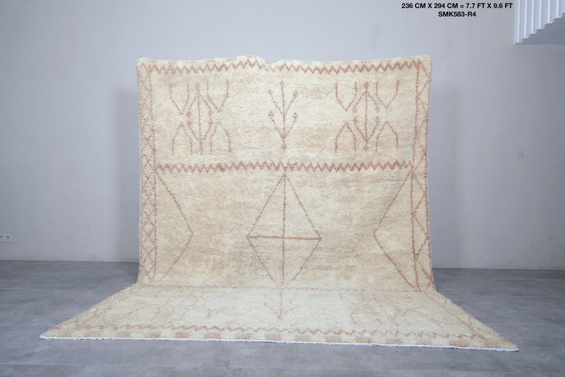 Cream beni ourain Moroccan rug - 7.7 x 9.6 Feet | Handwoven wool rug