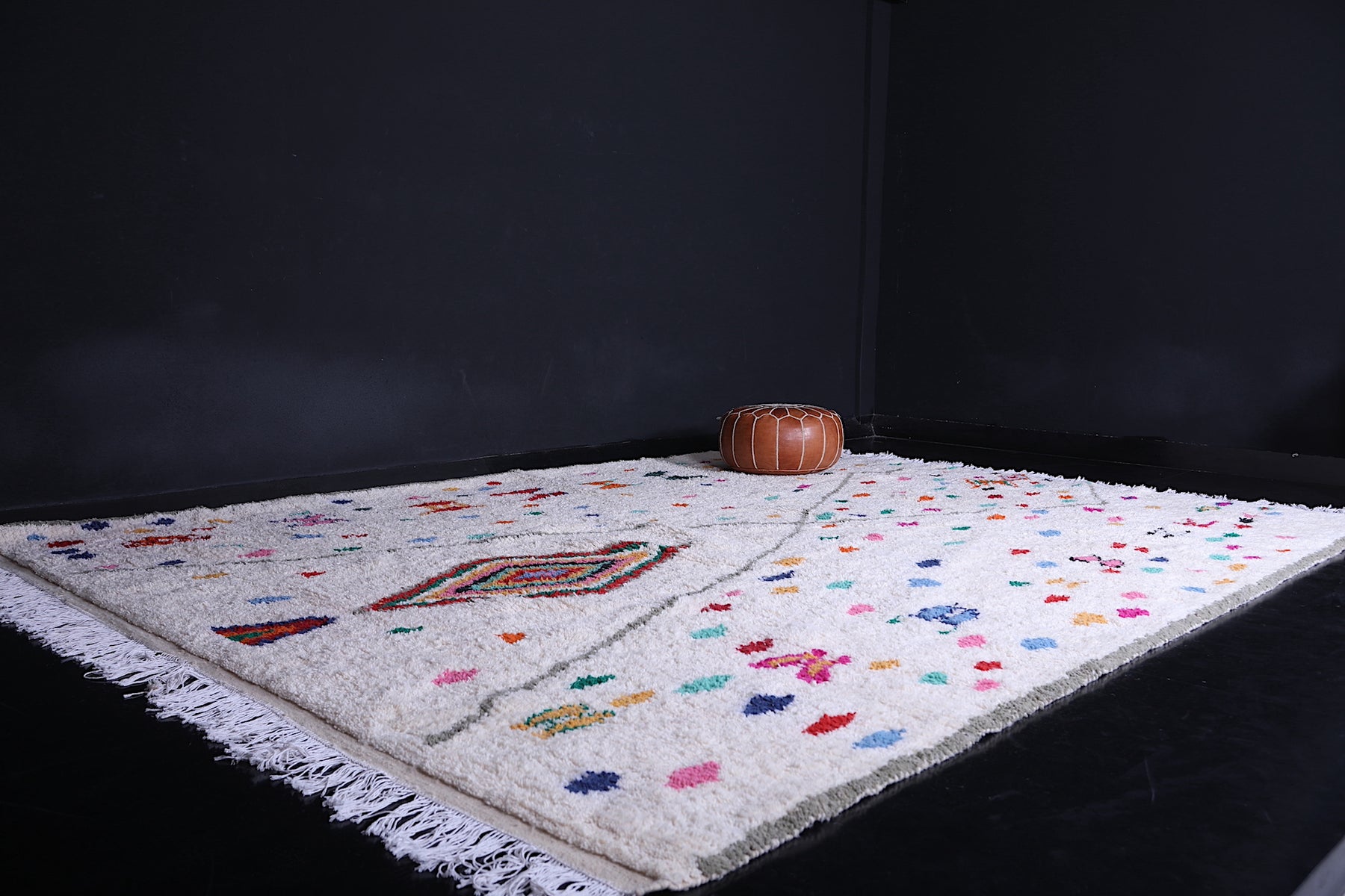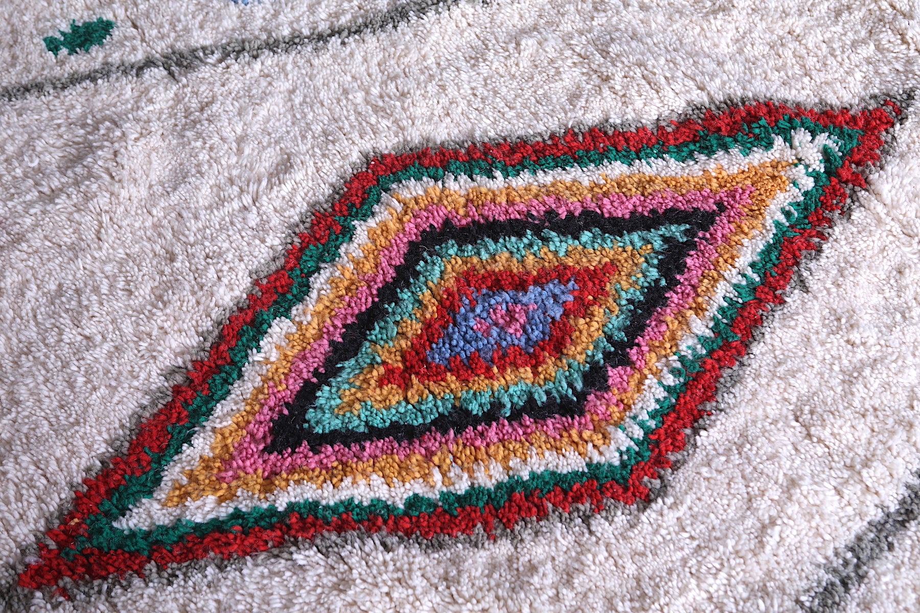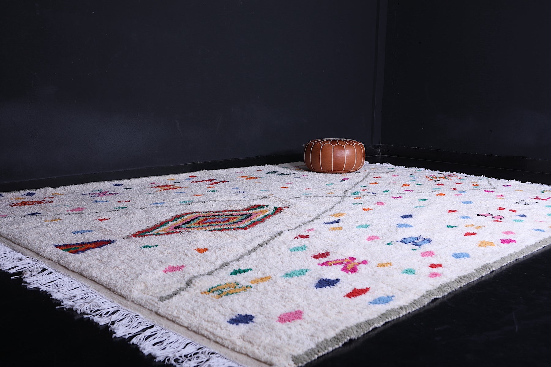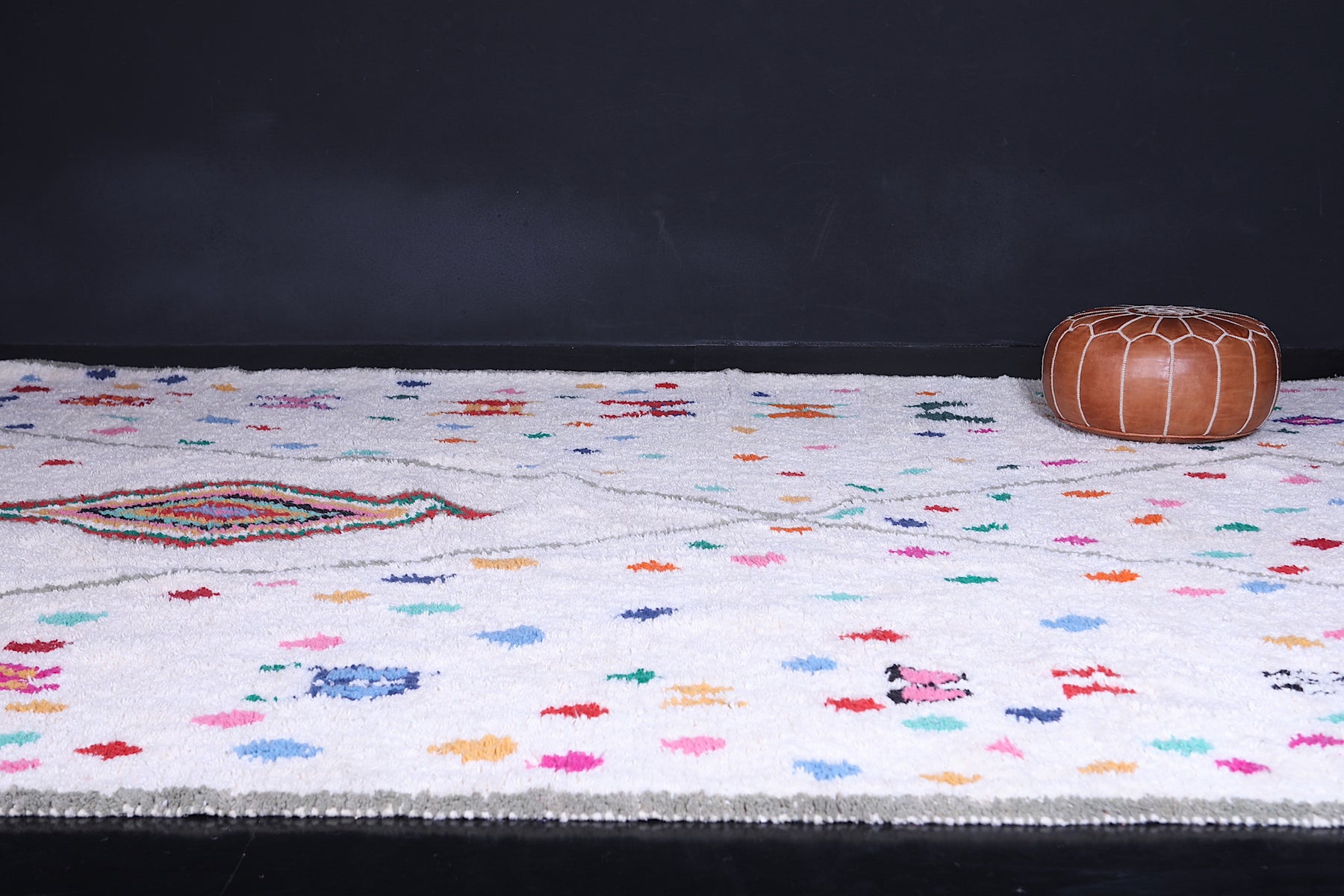 Add a burst of Moroccan charm to your home with this one-of-a-kind Beni Ourain rug that effortlessly blends heritage with joyful artistry.