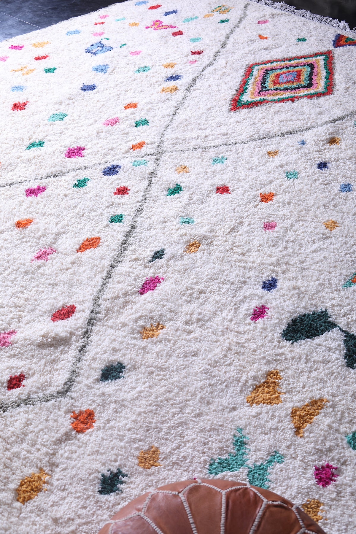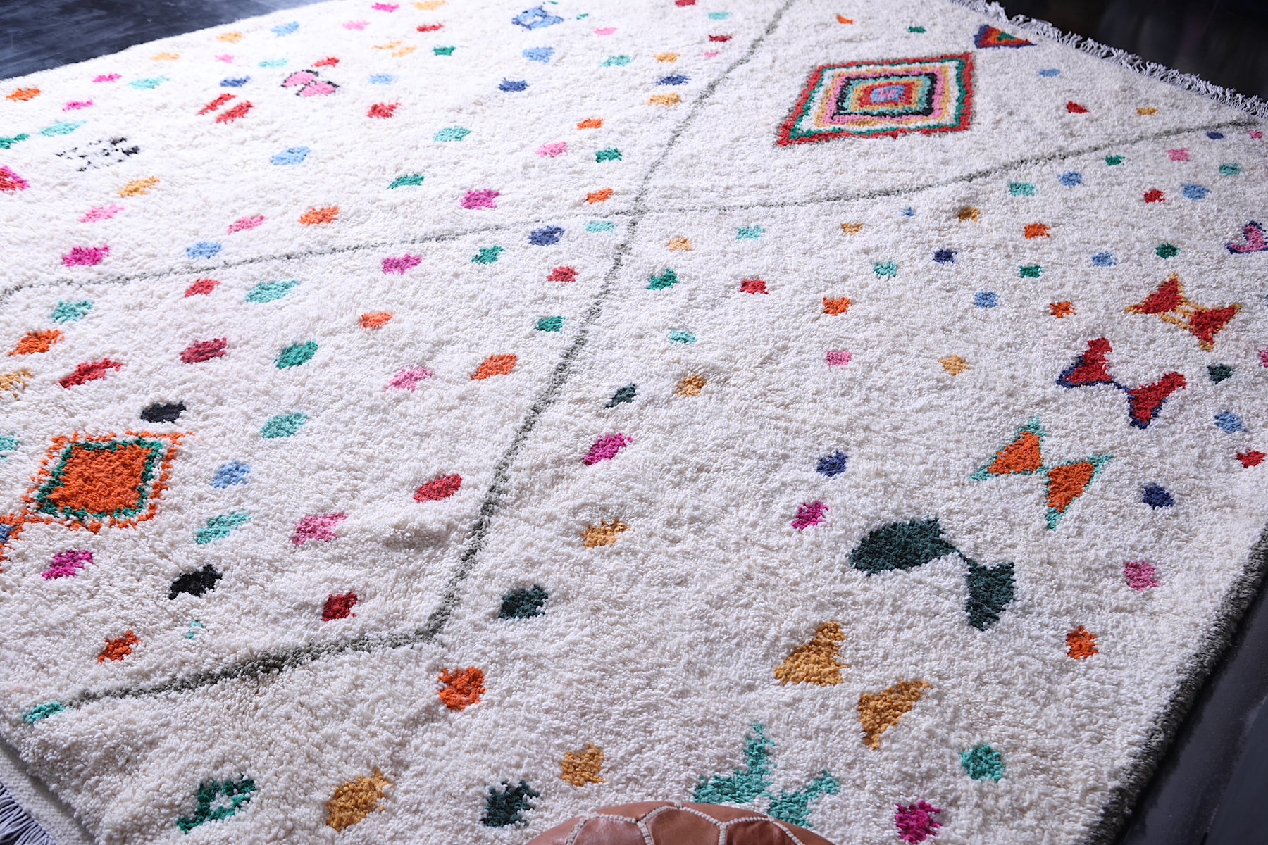 Reflecting the rich cultural heritage of the Atlas Mountains, each rug is individually crafted with meticulous care to ensure outstanding softness, warmth, and durability. Its bold and playful design brings a lively, welcoming energy into any interior, from modern lofts to bohemian hideaways.
