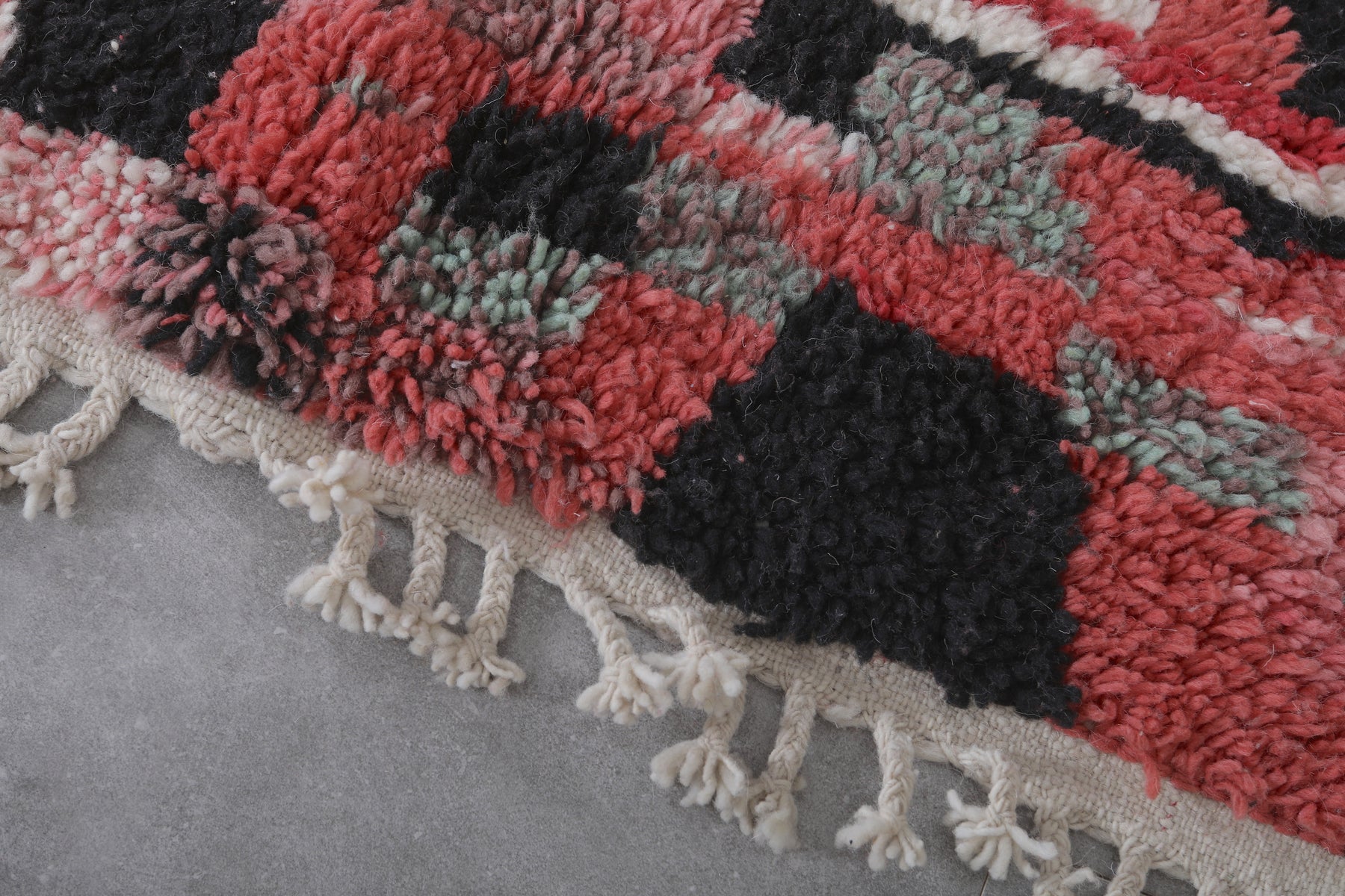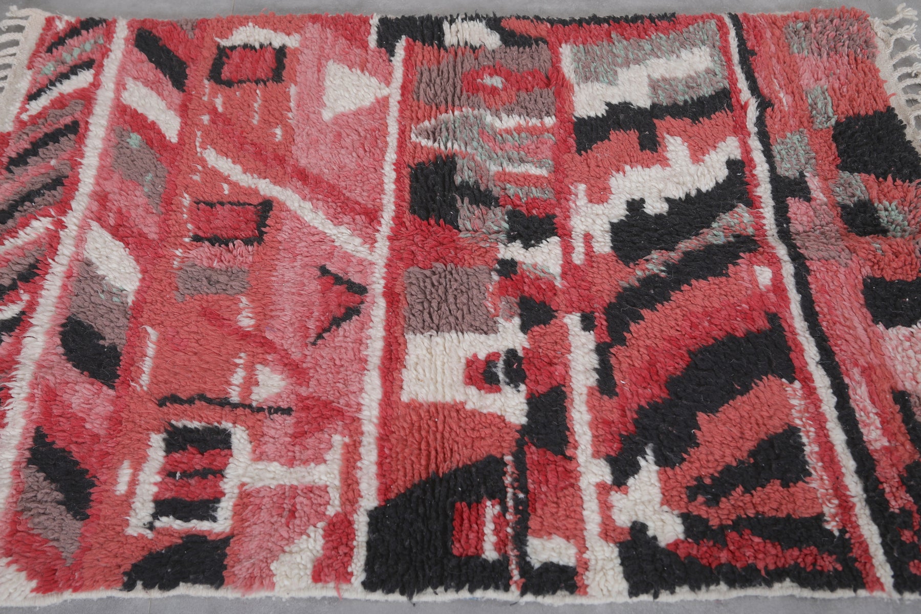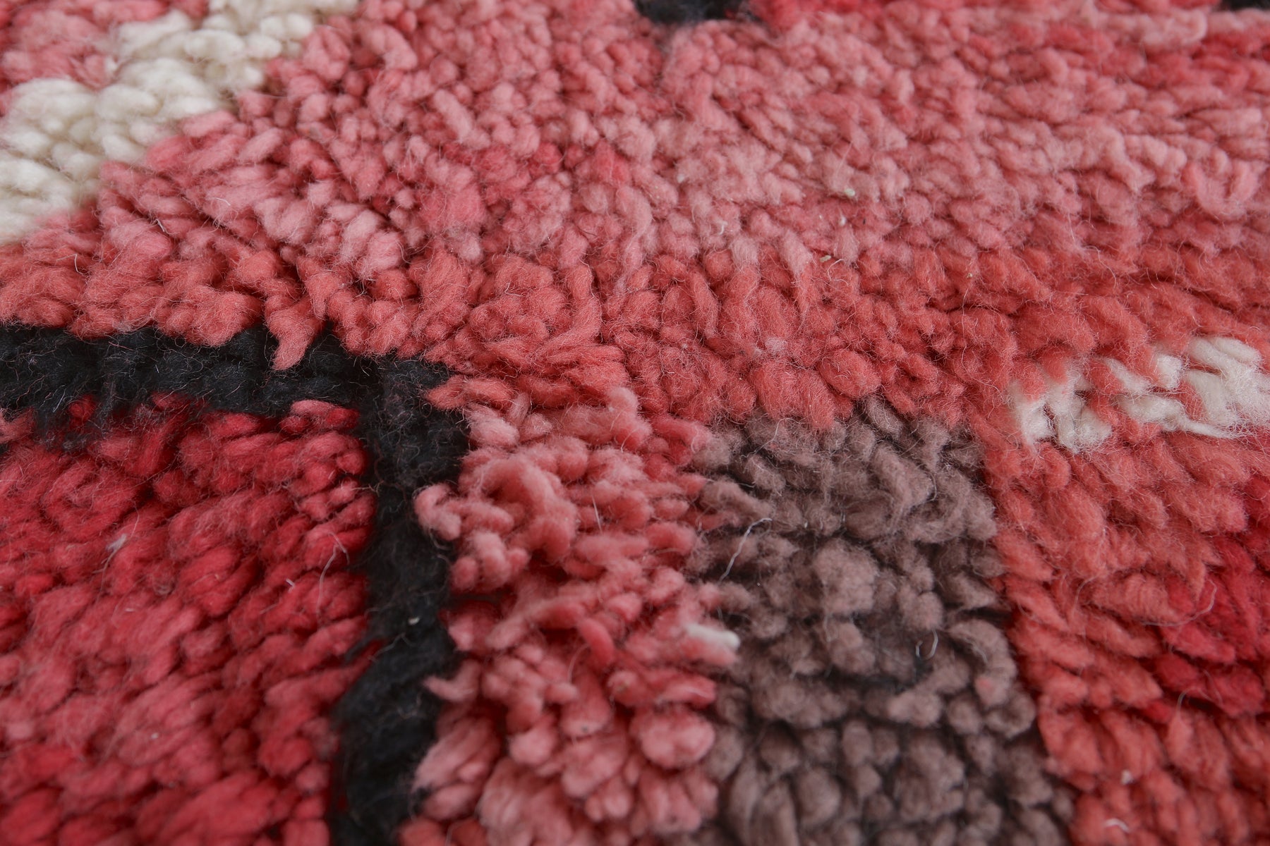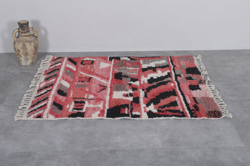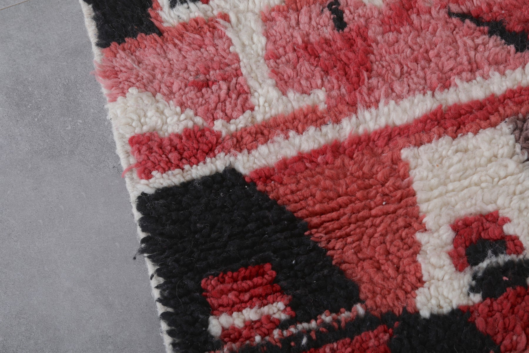 Add timeless charm to your décor with this Beni Ourain Rug, sized at 3.8 x 5.1 feet (117 CM x 156 CM). Handwoven by Moroccan artisans, this rug features striking tribal patterns in bold shades of red, black, and white.