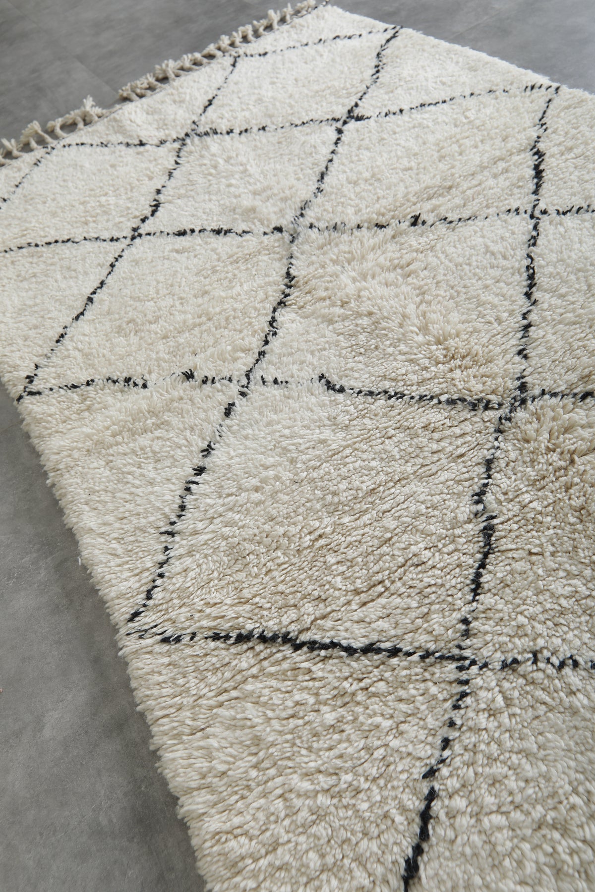 Elevate your home decor with the timeless elegance of the Beni Ourain Rug. Handcrafted in a generous 4.6 X 8.3 feet size, this Moroccan Trellis Rug boasts a classic Beni Ourain trellis design and is made with all wool for ultimate comfort and warmth. Experience the perfect blend of tradition and sophistication in any room.