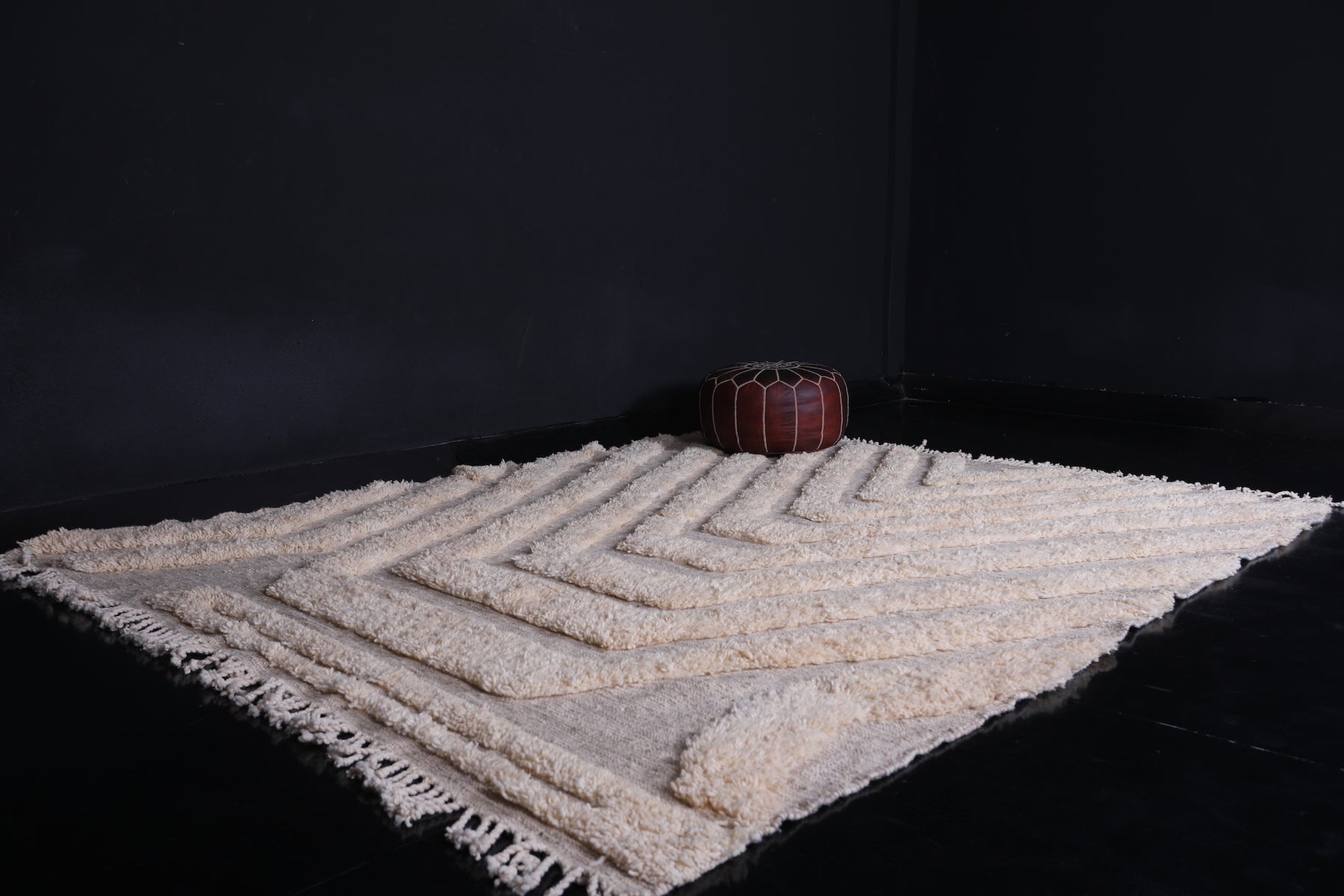 Upgrade your home with this Handmade Beni Ourain Rug, sized at 7.8 x 10 feet (238 CM x 304 CM). Featuring a minimalist geometric design in soft, natural wool, this handmade rug is a timeless statement piece.