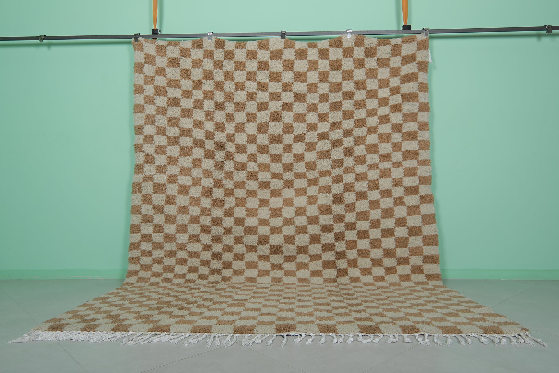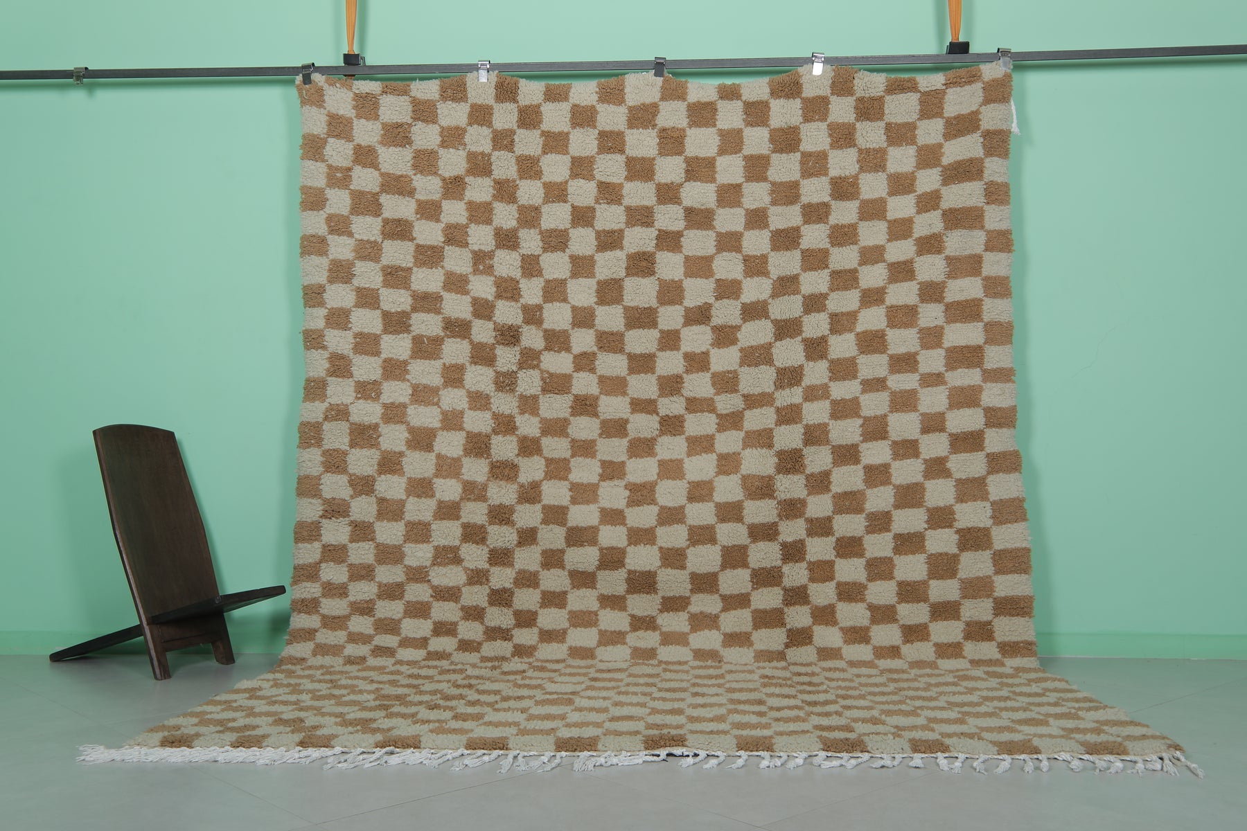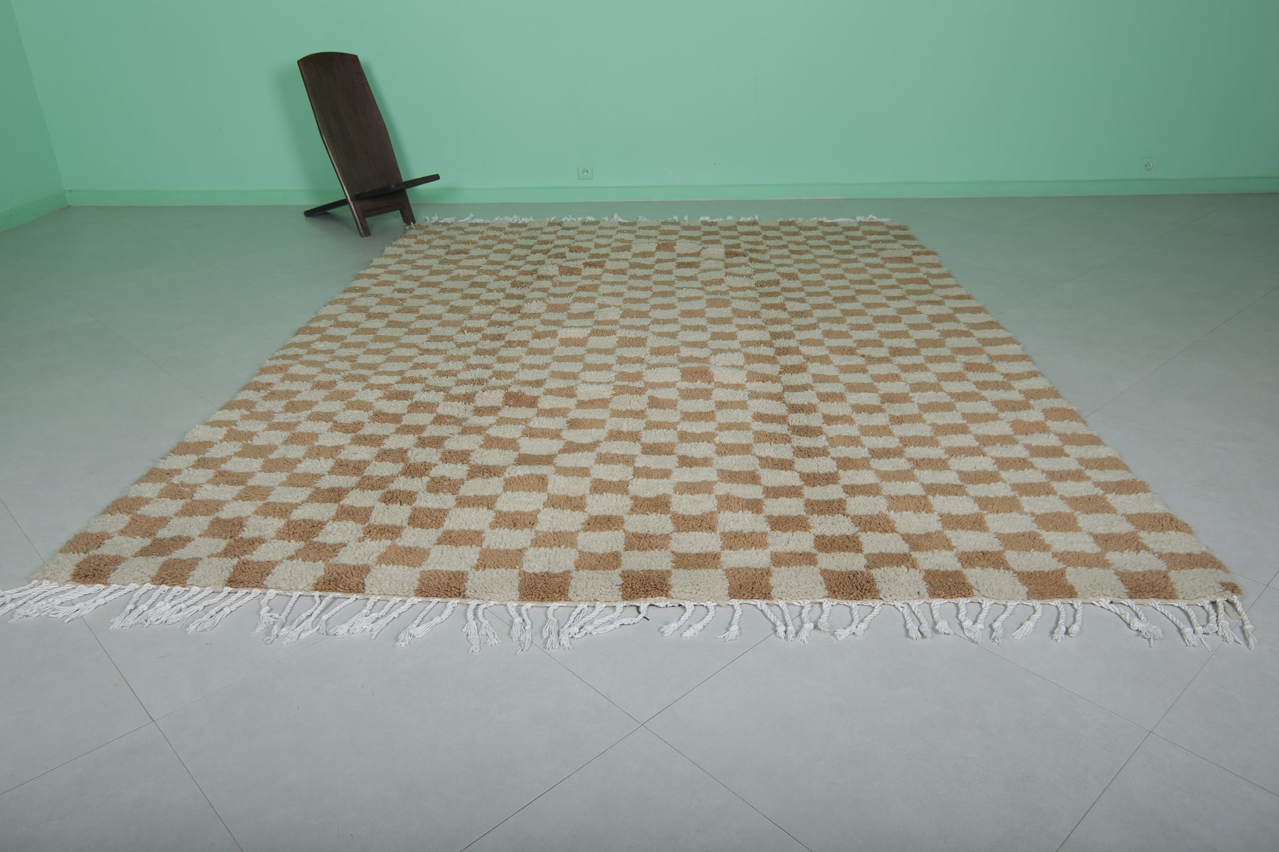 Transform your living space with this Beni Ourain Checkered Rug, sized at 8.1 x 10.5 feet (248 CM x 322 CM). Handwoven from 100% natural wool by skilled Moroccan artisans, this masterpiece blends elegance and durability. Its soft, plush texture offers exceptional comfort, while the neutral tones complement any decor style.