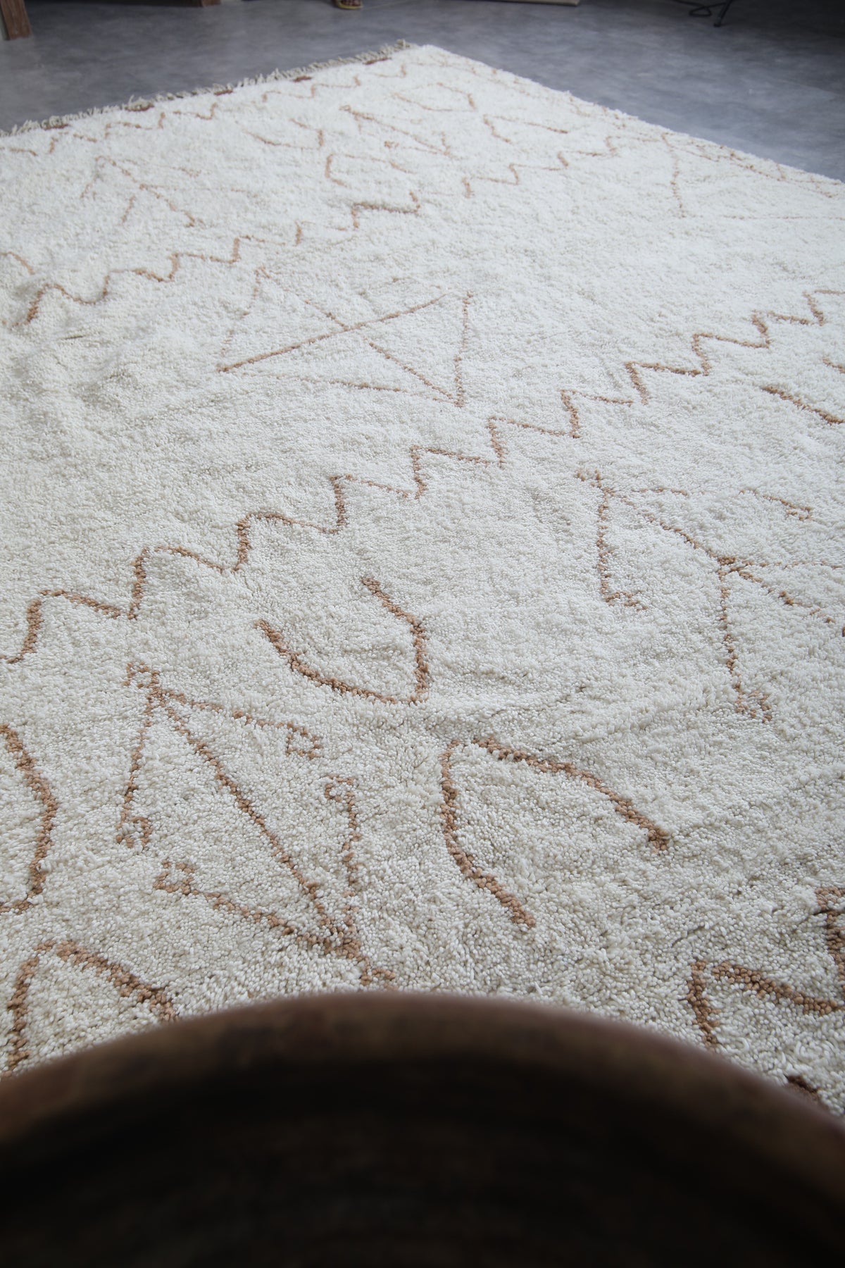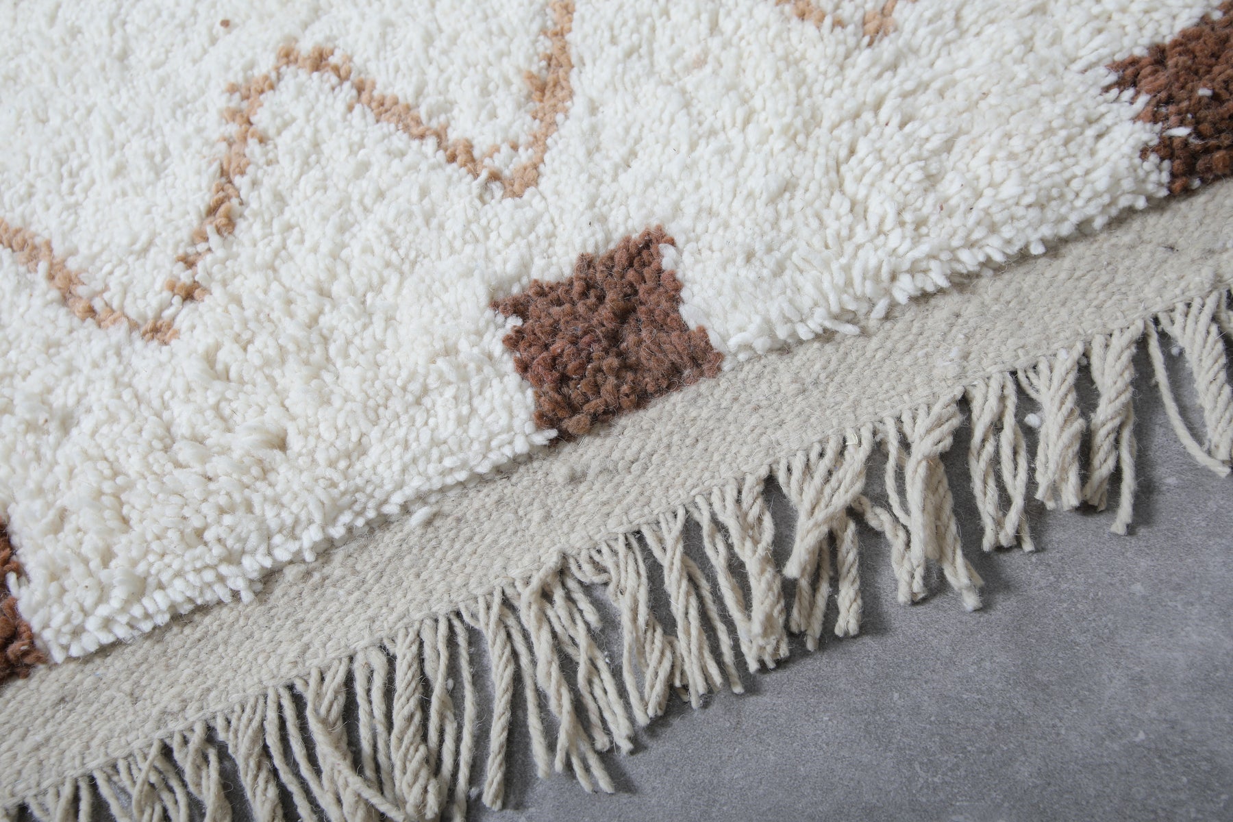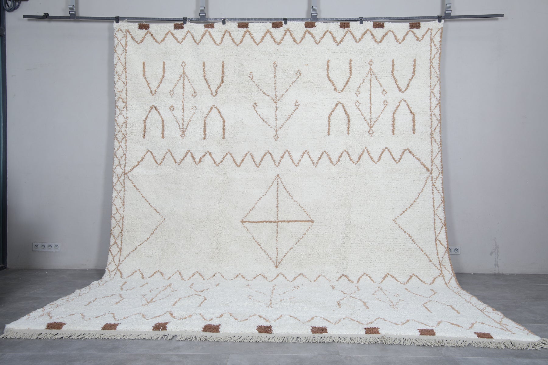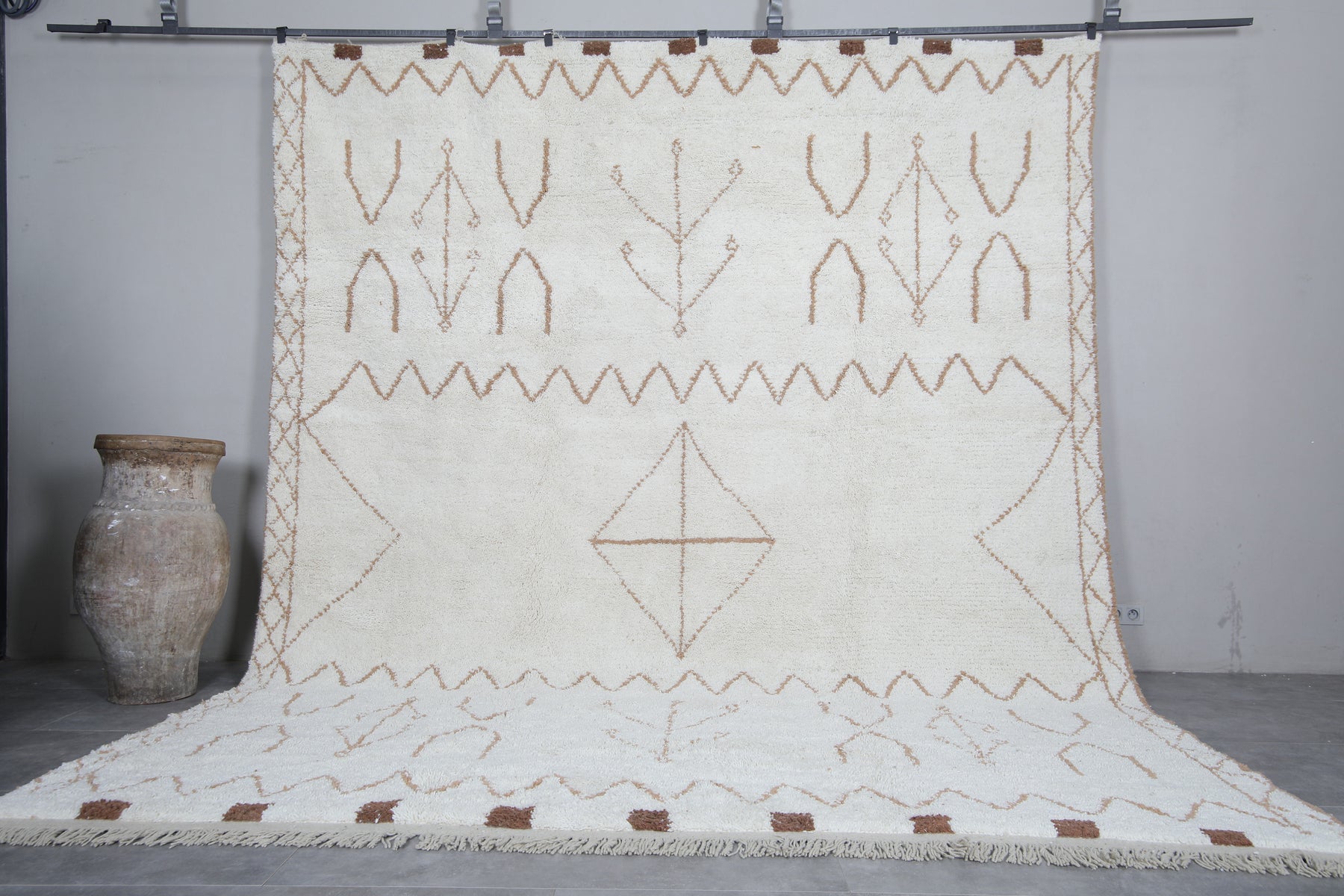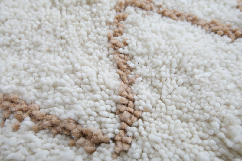The traditional Berber motifs—carefully hand-knotted into the creamy white wool—add both cultural authenticity and modern appeal. Whether you’re styling a boho living room, minimalist bedroom, or cozy reading nook, this rug brings texture, warmth, and a statement-worthy aesthetic.