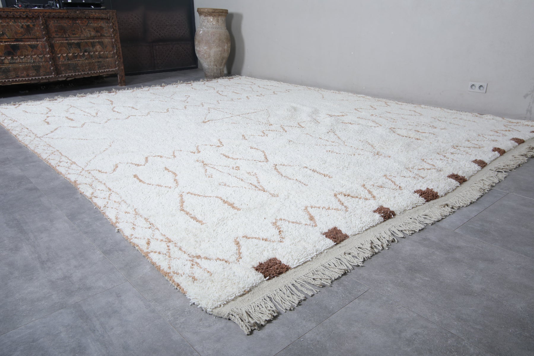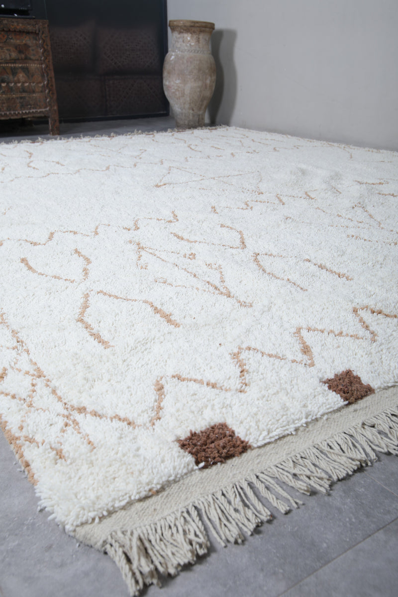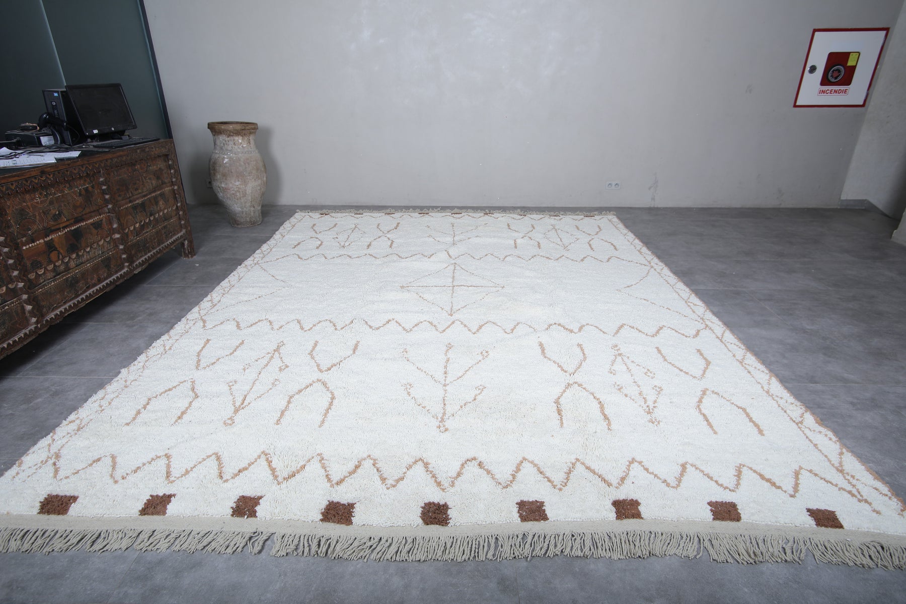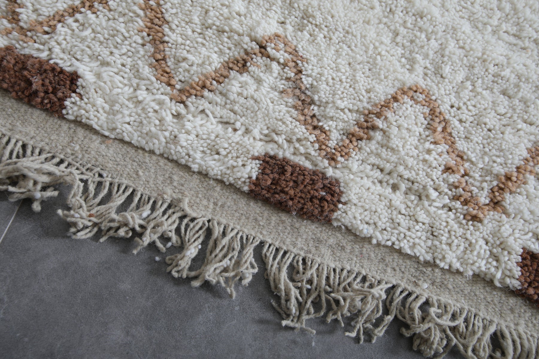 The traditional Berber motifs—carefully hand-knotted into the creamy white wool—add both cultural authenticity and modern appeal. Whether you’re styling a boho living room, minimalist bedroom, or cozy reading nook, this rug brings texture, warmth, and a statement-worthy aesthetic.