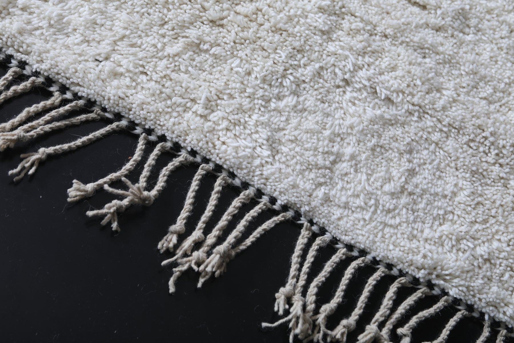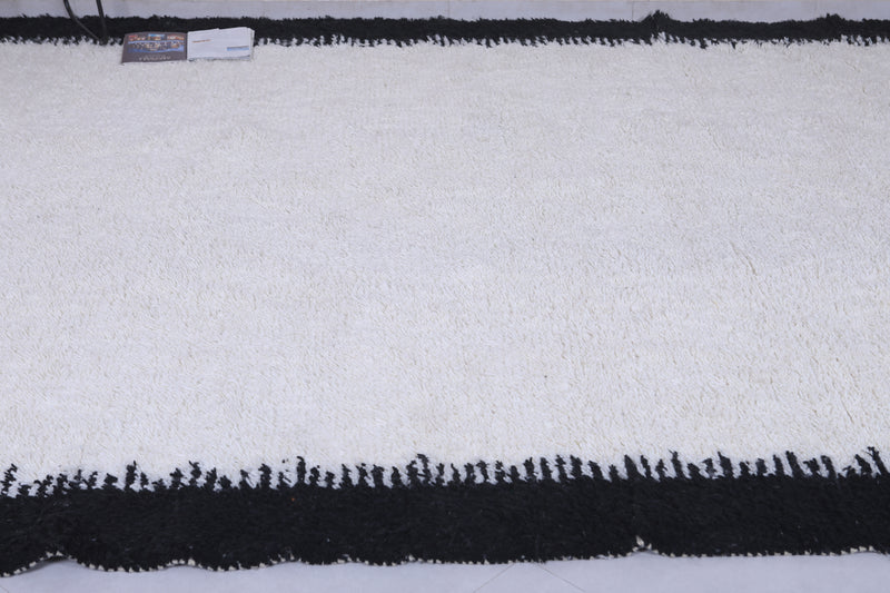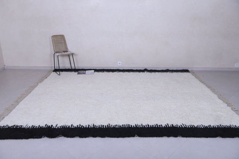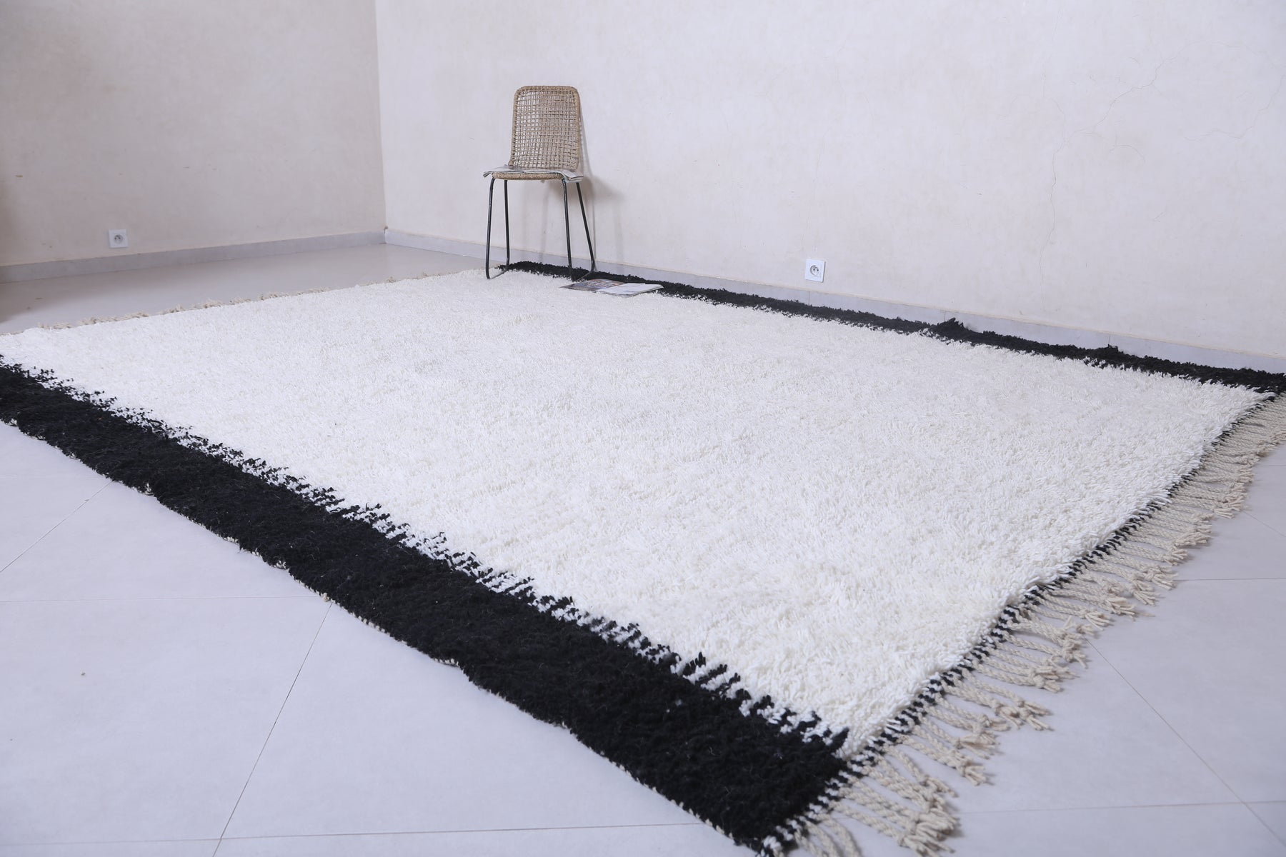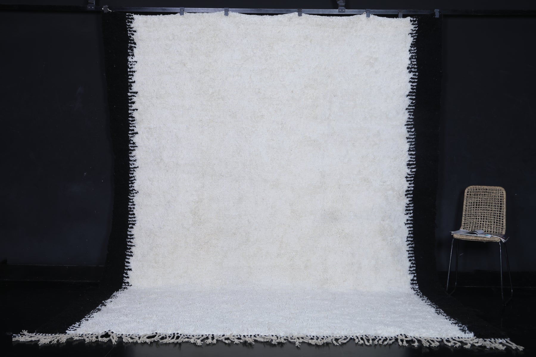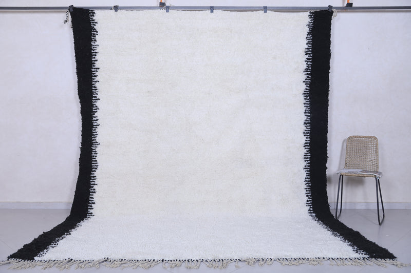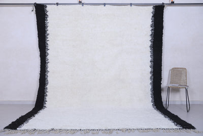 Add this stunning Moroccan rug to your room, with its minimalist design in crisp white and bold black side borders. Handwoven by skilled artisans from high-quality wool, it effortlessly merges traditional craftsmanship with modern aesthetics. The soft texture and clean contrast make it a perfect statement piece for contemporary, Scandinavian, or boho interiors. Perfect for living rooms, bedrooms, or office rooms, it adds warmth, depth, and a touch of Moroccan heritage to your home. Its neutral tones will easily fit in anywhere, while the bold edges bring a unique visual appeal to them. Durable, cozy, and timeless, this is one beautiful addition to any modern home.