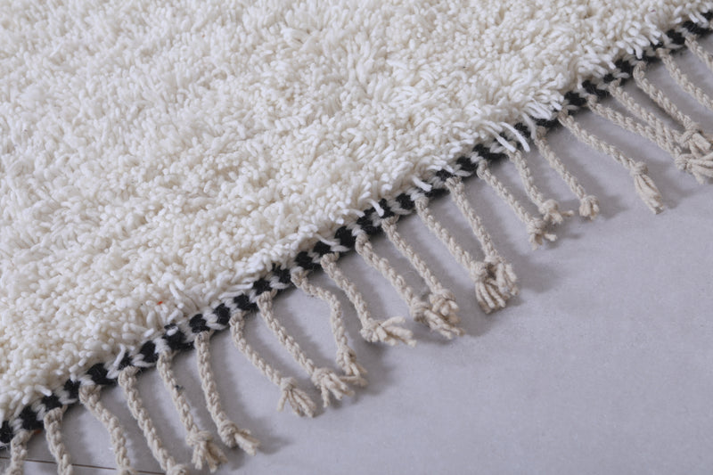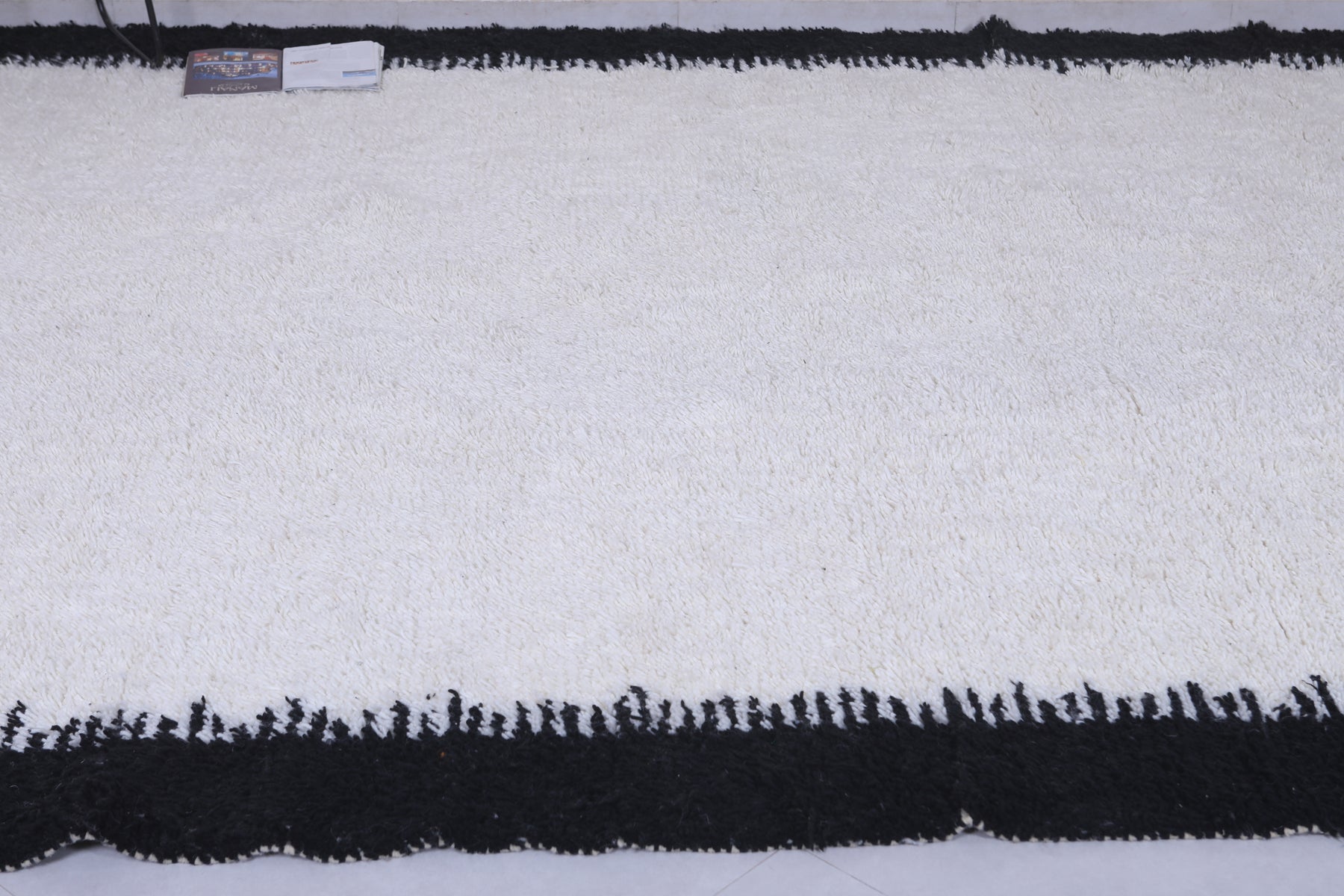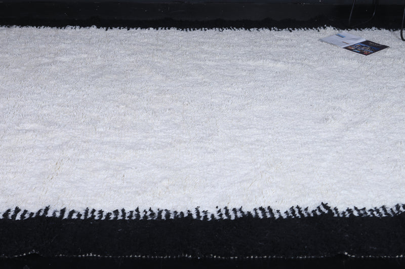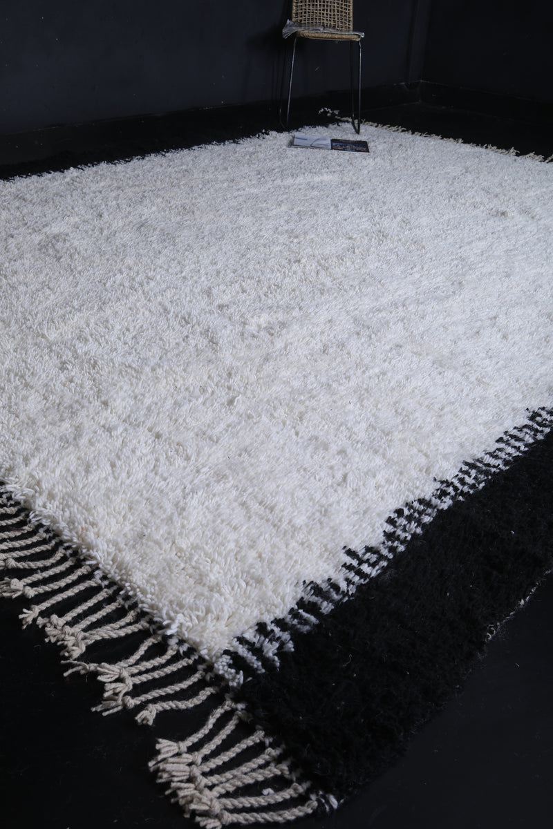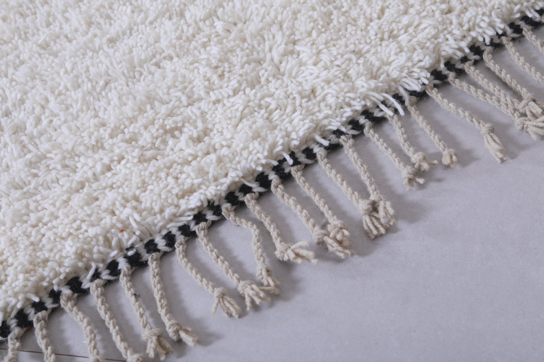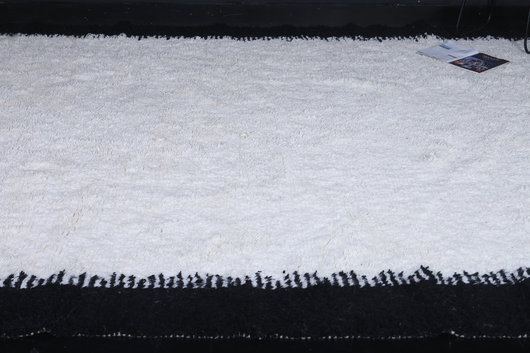 Add this stunning Moroccan rug to your room, with its minimalist design in crisp white and bold black side borders. Handwoven by skilled artisans from high-quality wool, it effortlessly merges traditional craftsmanship with modern aesthetics. The soft texture and clean contrast make it a perfect statement piece for contemporary, Scandinavian, or boho interiors. Perfect for living rooms, bedrooms, or office rooms, it adds warmth, depth, and a touch of Moroccan heritage to your home. Its neutral tones will easily fit in anywhere, while the bold edges bring a unique visual appeal to them. Durable, cozy, and timeless, this is one beautiful addition to any modern home.