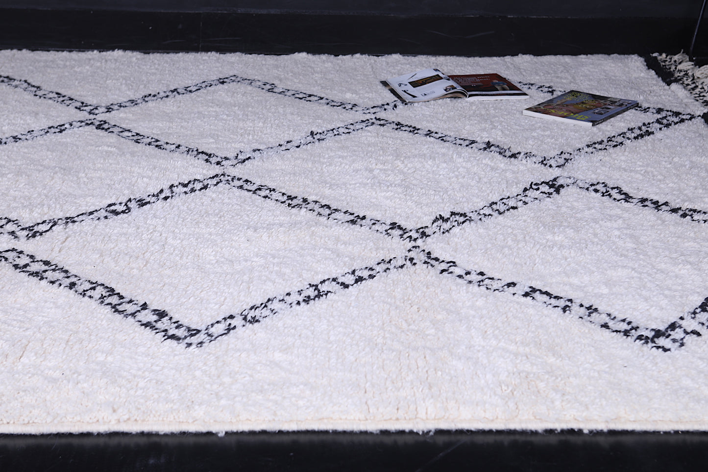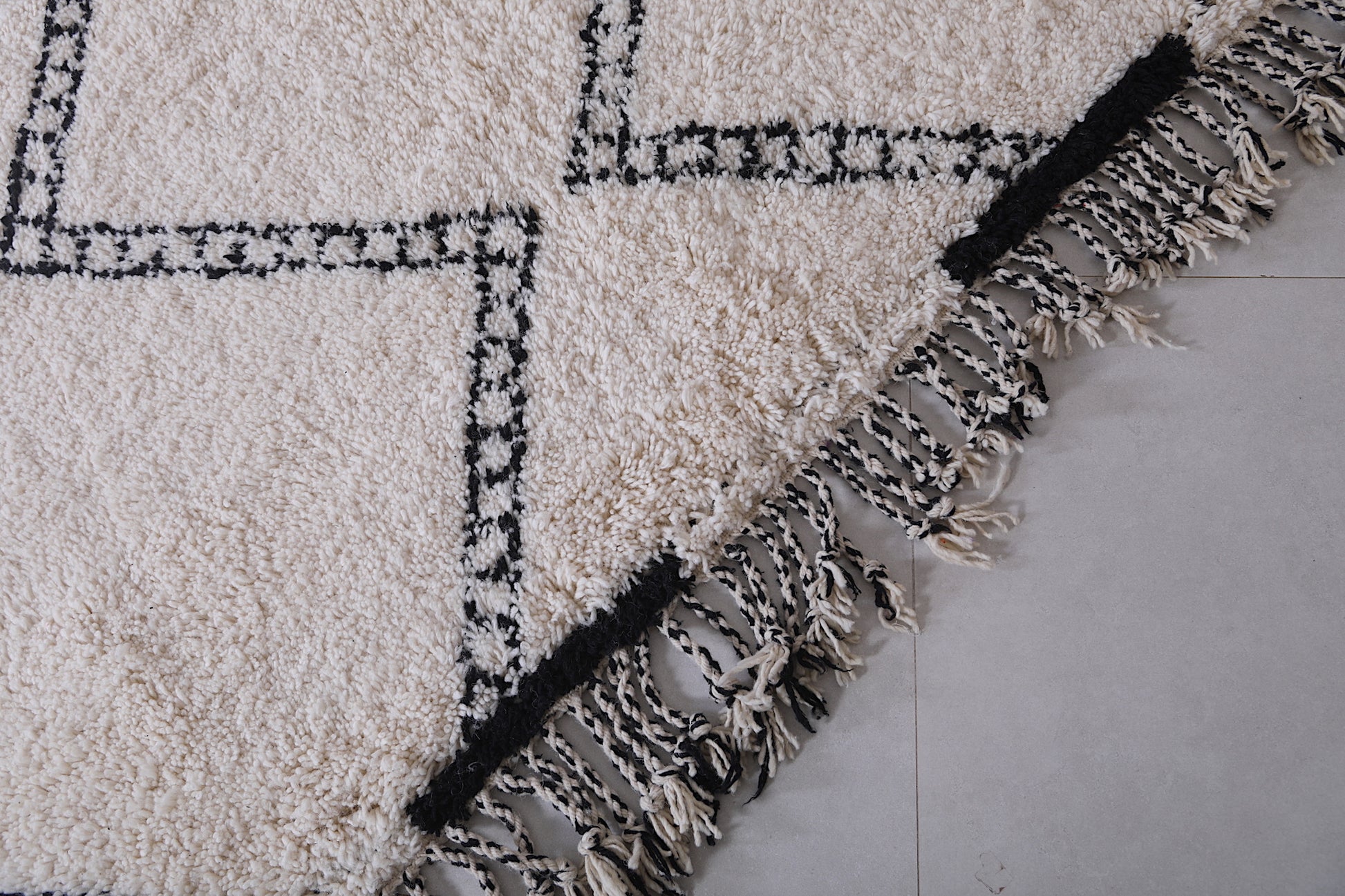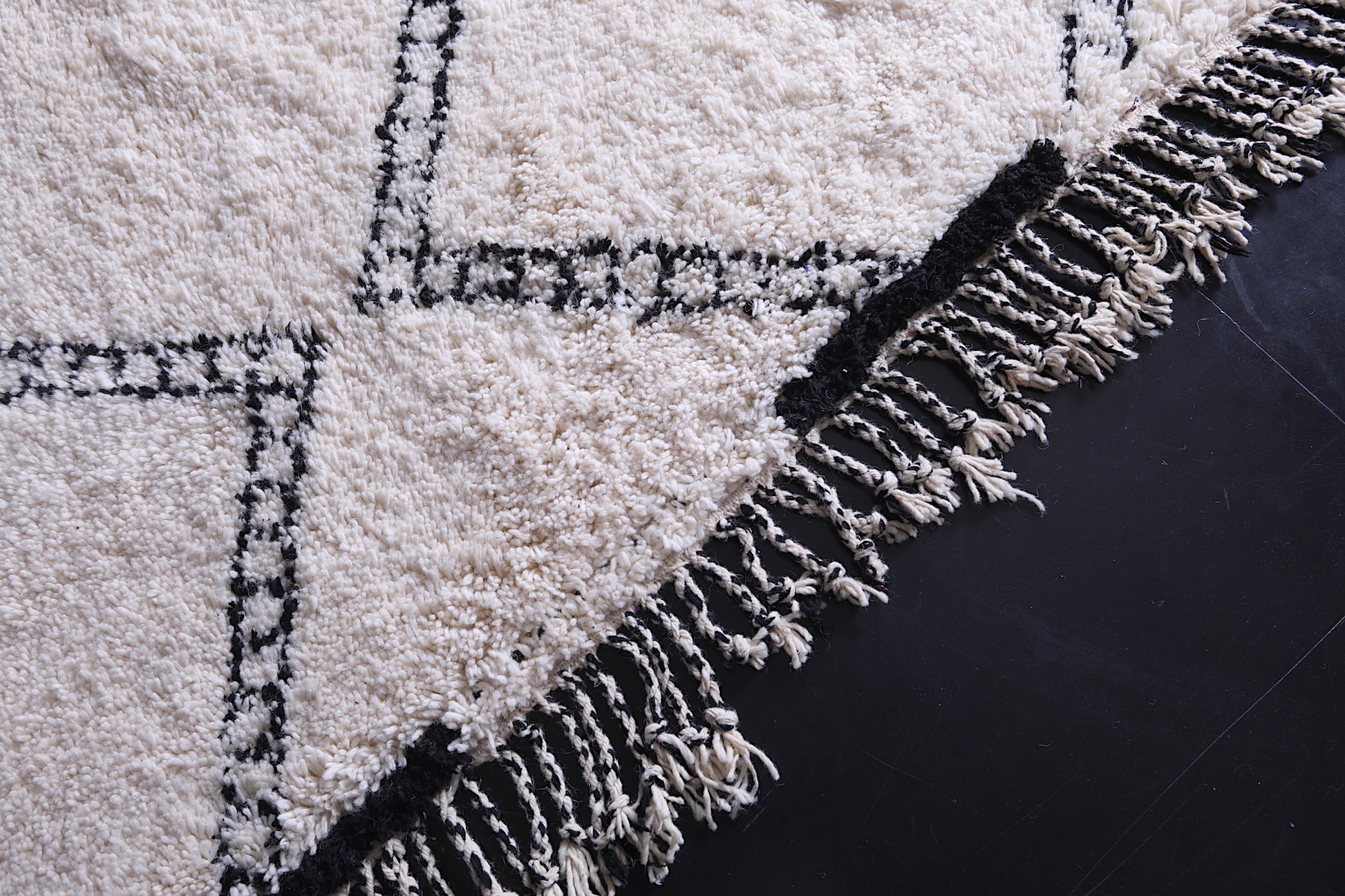 Timeless, bold, and effortlessly chic—this White and Black Moroccan Rug is a modern classic that brings texture and culture into any space. Handwoven from natural wool by Berber artisans, it features a clean ivory base with abstract black diamond outlines that create movement and depth without overwhelming your décor.