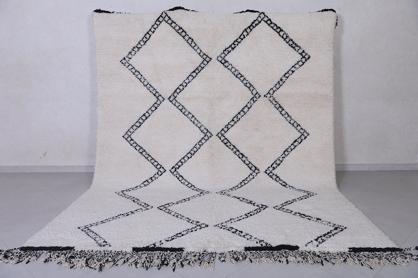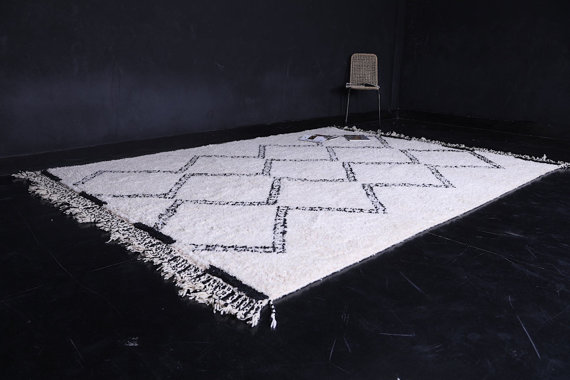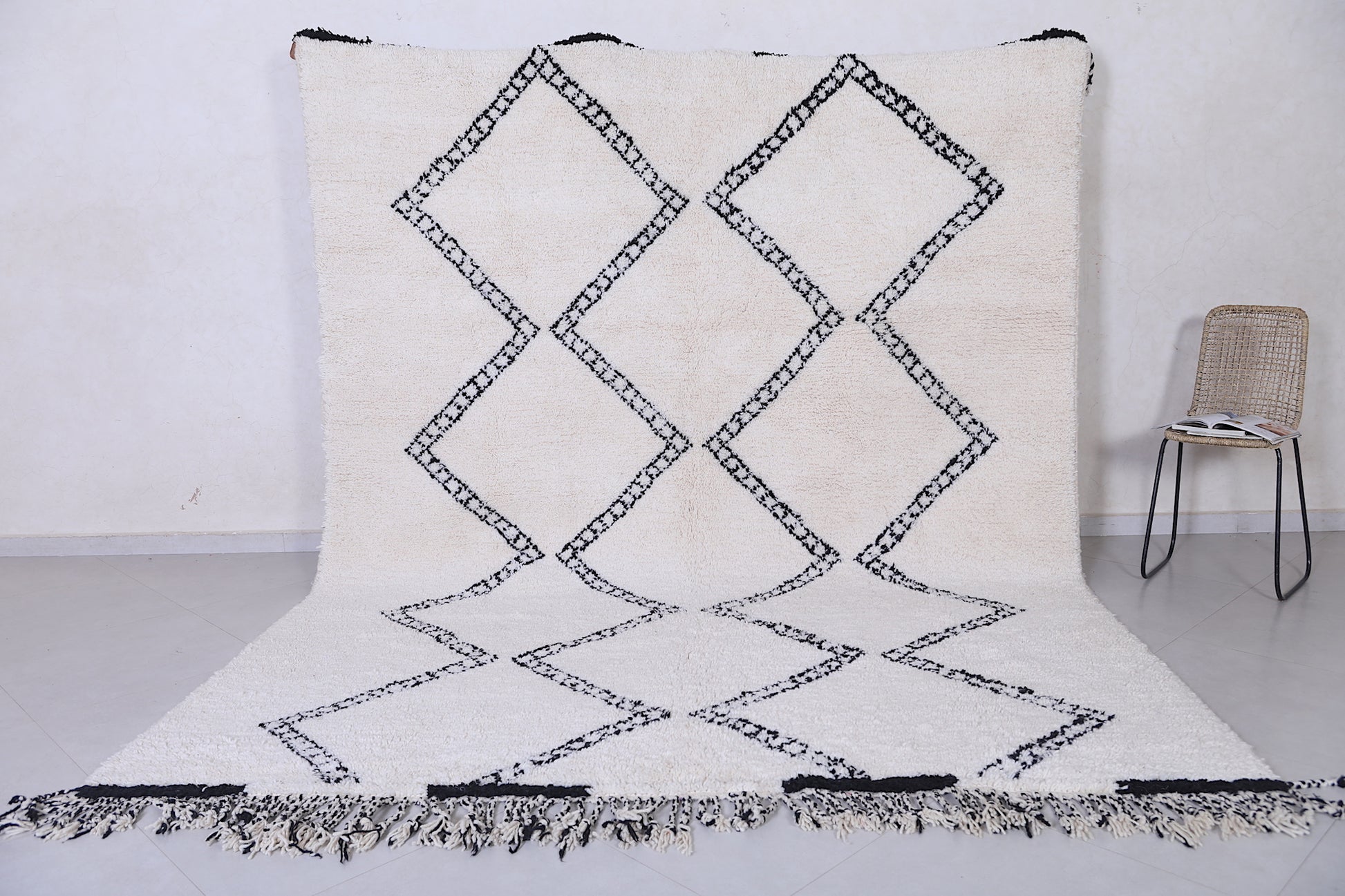 Timeless, bold, and effortlessly chic—this White and Black Moroccan Rug is a modern classic that brings texture and culture into any space. Handwoven from natural wool by Berber artisans, it features a clean ivory base with abstract black diamond outlines that create movement and depth without overwhelming your décor.