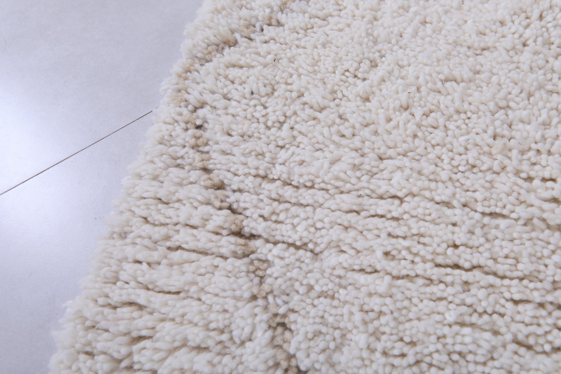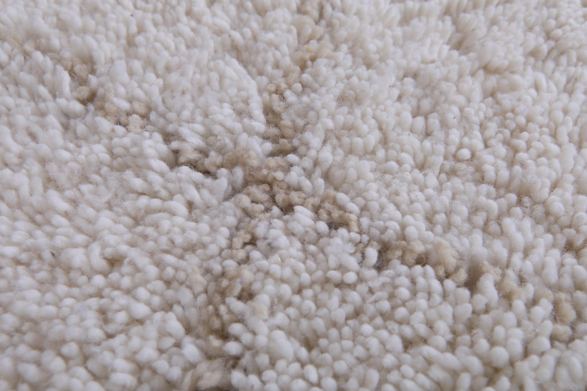 Bring authentic Moroccan charm to your home with this handcrafted Beni Ourain rug in a soft cream hue. Made from 100% natural wool, this high-pile rug features a delicate diamond pattern in light beige tones, offering subtle texture without overwhelming your space. Its neutral color palette makes it a versatile piece that complements both modern and traditional interiors.