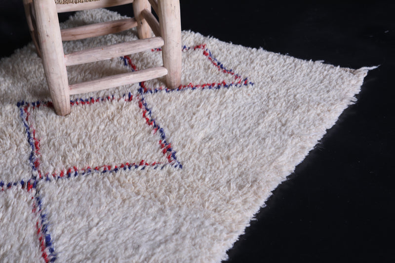 Brighten your space with this charming Berber Area Rug, sized at 2.9 x 4.3 feet (90 CM x 132 CM). Featuring a soft cream wool base with delicate multicolor diamond patterns, this handwoven Moroccan rug blends tradition with contemporary style.