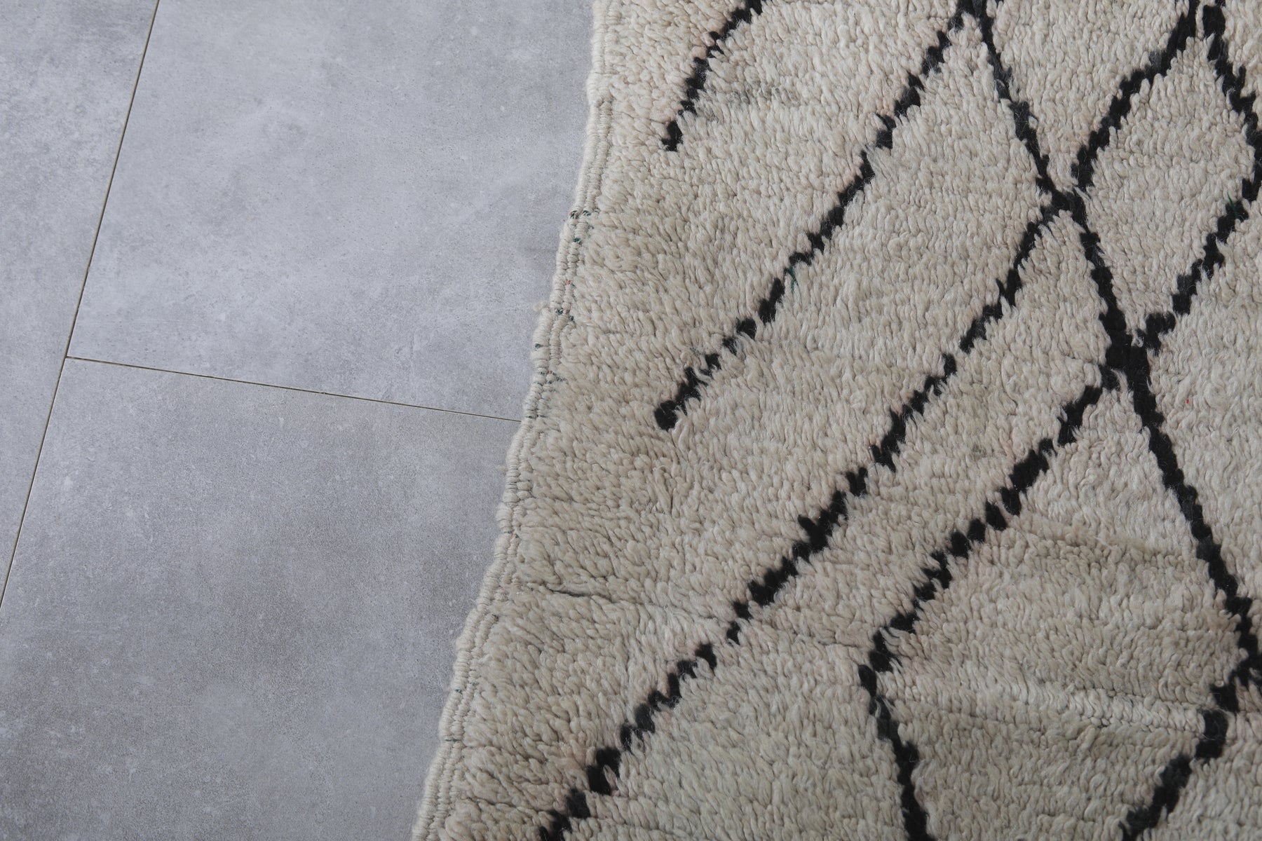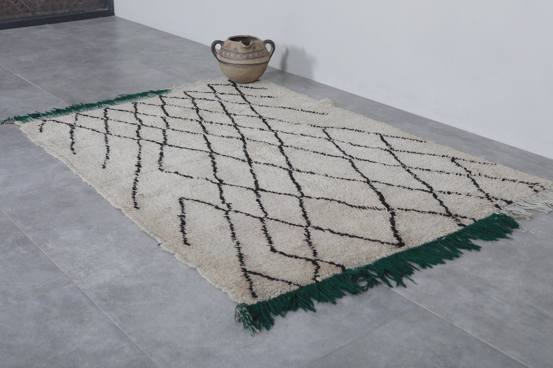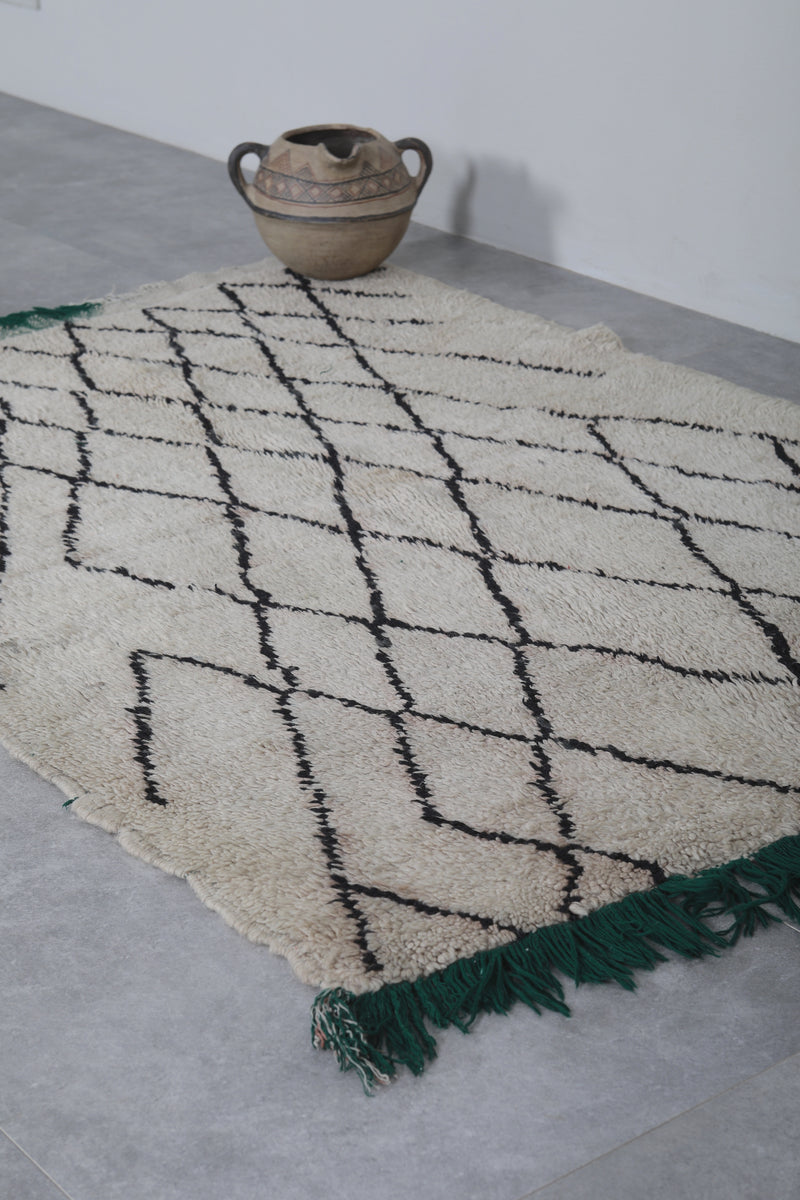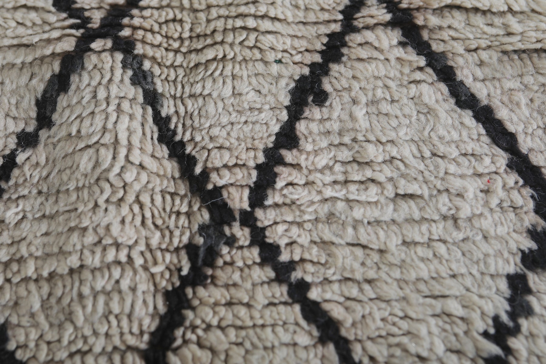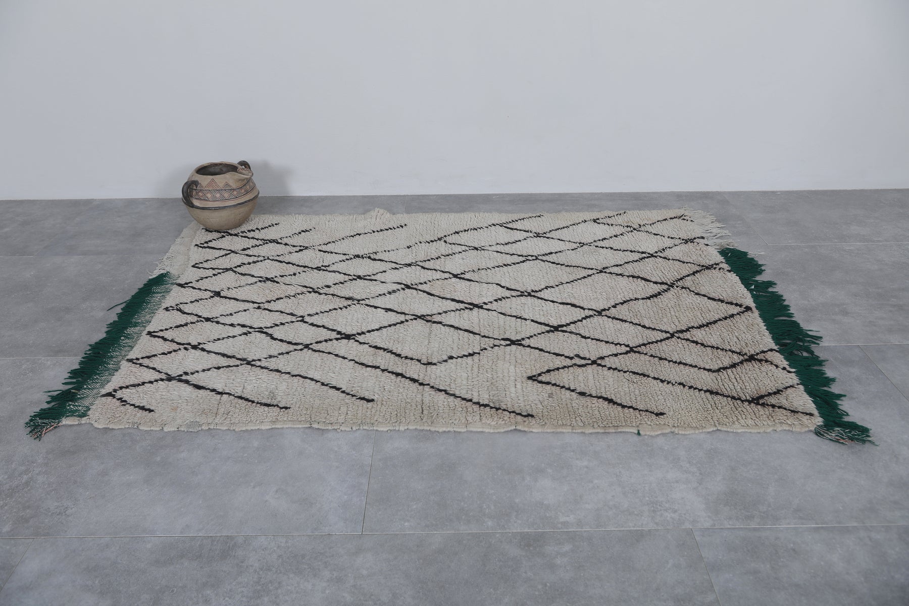 Berber Area Rug 3.9 x 5.6 ft – Black and Beige Moroccan Wool Carpet