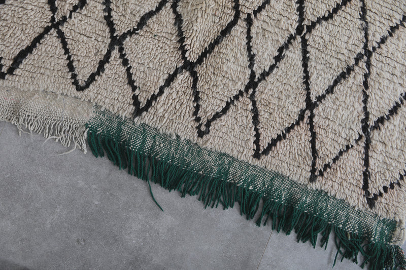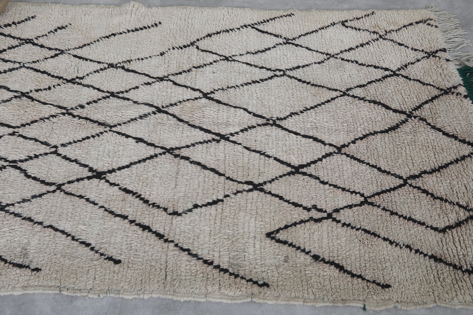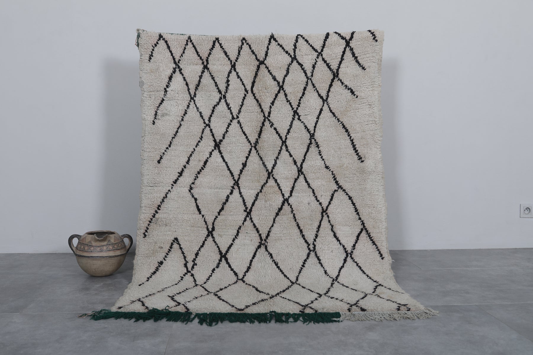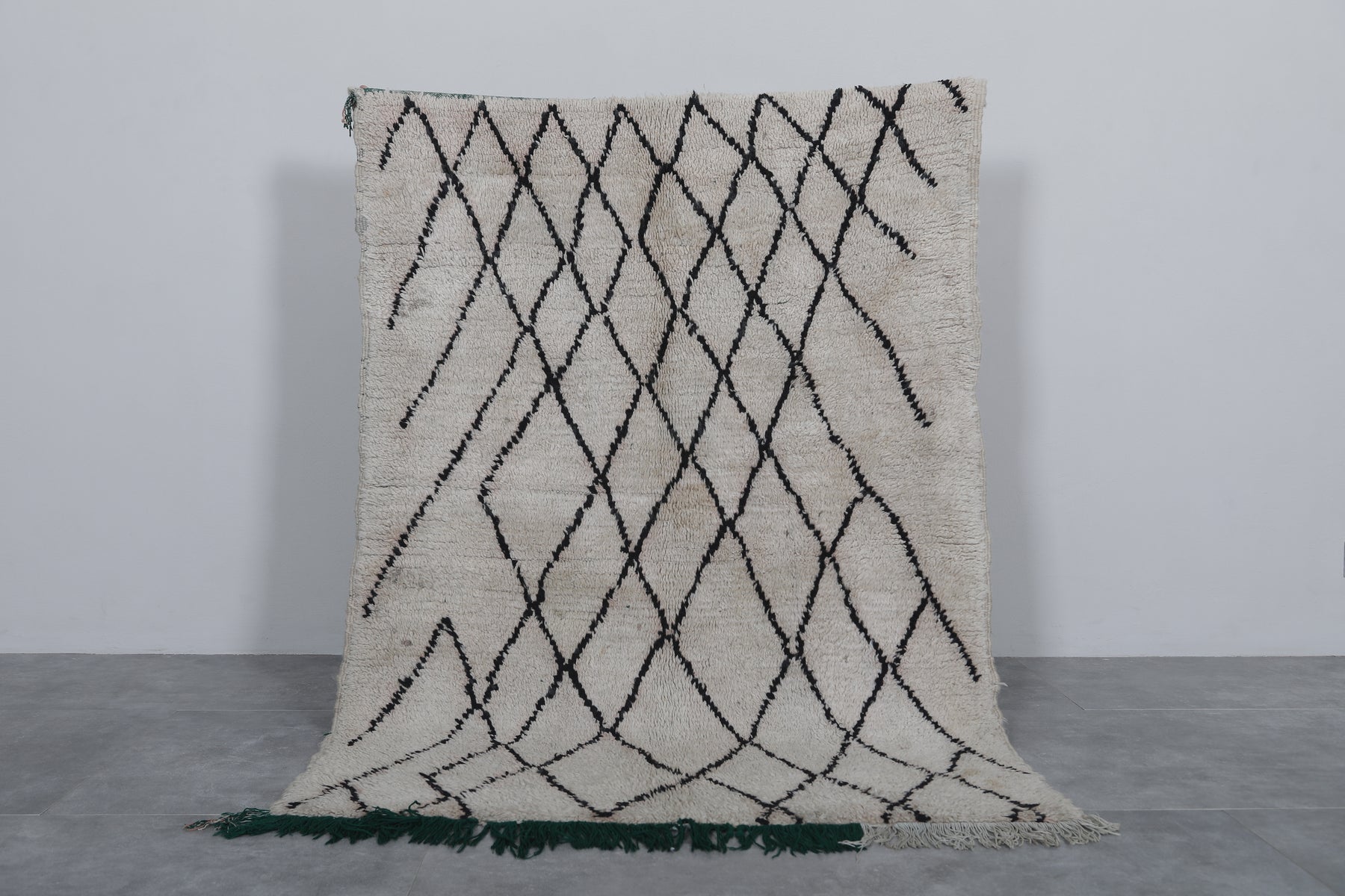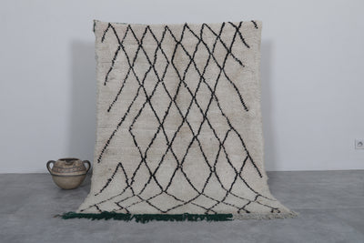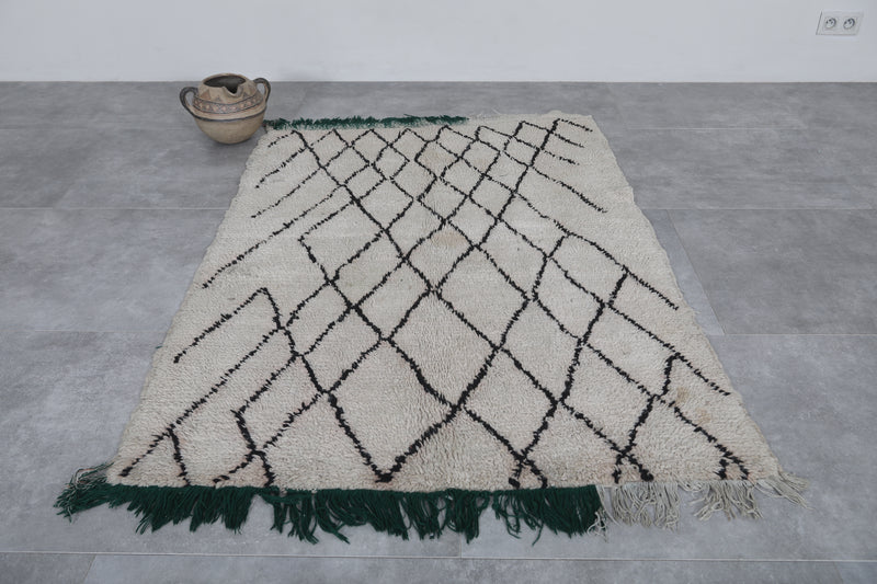 Berber Area Rug 3.9 x 5.6 ft – Black and Beige Moroccan Wool Carpet