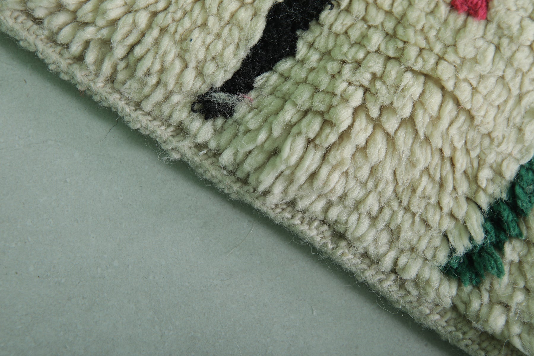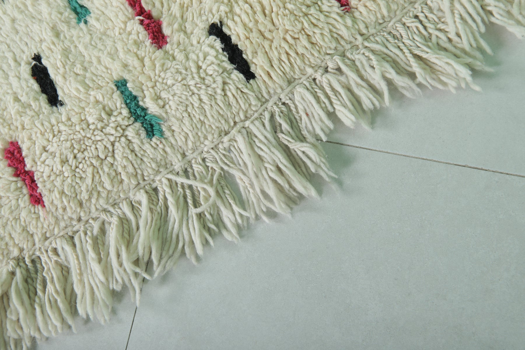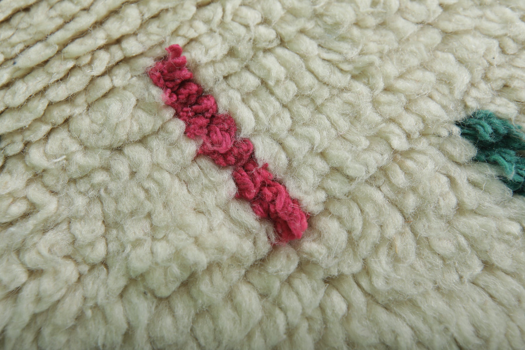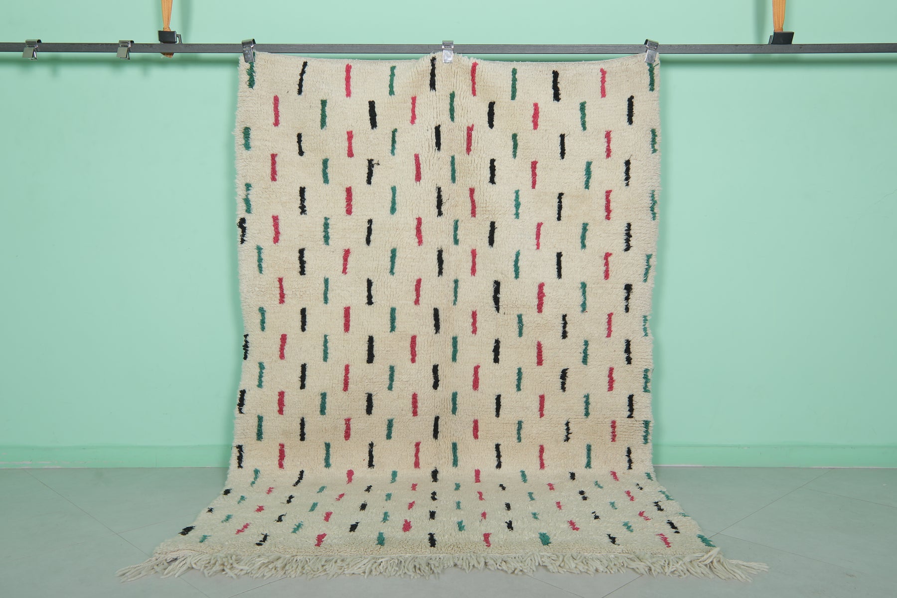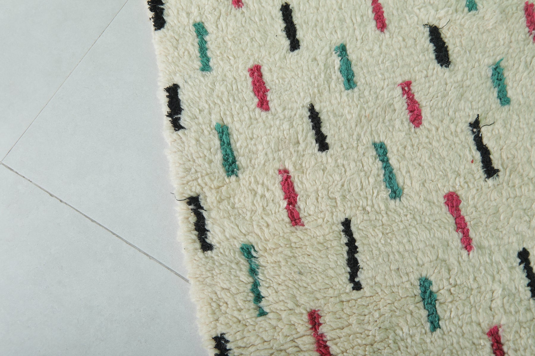 Bring a touch of traditional Moroccan artistry into your space with this Berber Azilal rug, measuring 4.7 x 6.8 feet. Crafted by hand, this rug features an exquisite design of colorful stripes against a cream backdrop, blending modern simplicity with cultural heritage. Perfect for adding warmth and character to living rooms, bedrooms, or offices, this versatile piece is made with soft wool for a luxurious feel. Its unique aesthetic and durable craftsmanship make it an ideal centerpiece for contemporary and bohemian decor styles. Add this timeless Moroccan treasure to your collection today.