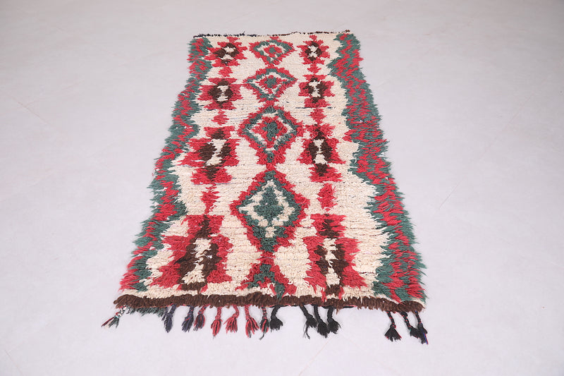Add a touch of vibrant Moroccan artistry to your space with this Berber Azilal runner rug, measuring 2.8 x 6 feet. Featuring striking geometric patterns and a bold mix of red, green, and earthy tones, this rug is the perfect centerpiece for hallways, entryways, or narrow spaces. Handcrafted by skilled Berber artisans, this runner is made using traditional weaving techniques, ensuring a one-of-a-kind masterpiece for your home. Its thick, plush texture adds warmth and coziness, making it as practical as it is beautiful.