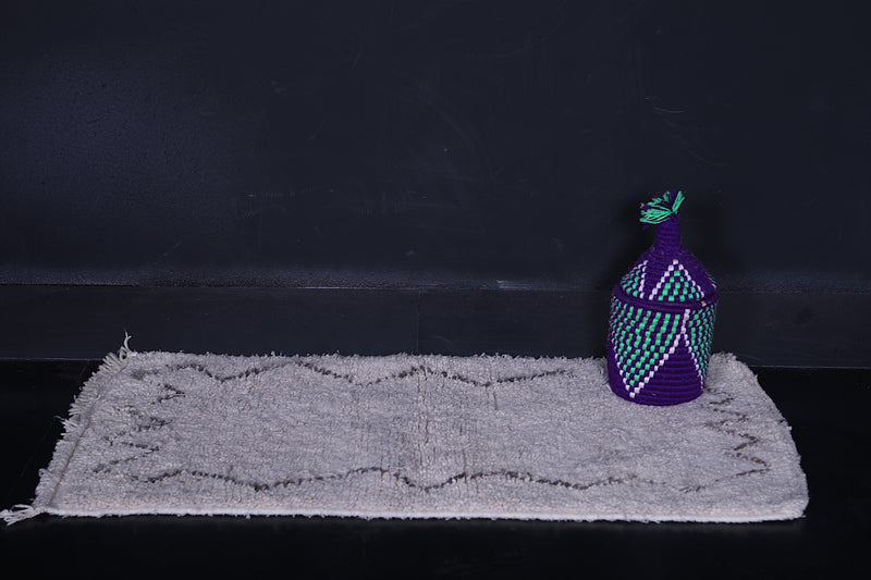 Elevate your space with this Handwoven Berber Beni Ourain Rug, sized at 2.1 x 3.8 feet (65 CM x 118 CM). Featuring a minimalist zigzag pattern on a soft ivory background, this Moroccan wool rug adds warmth and authenticity to any décor.