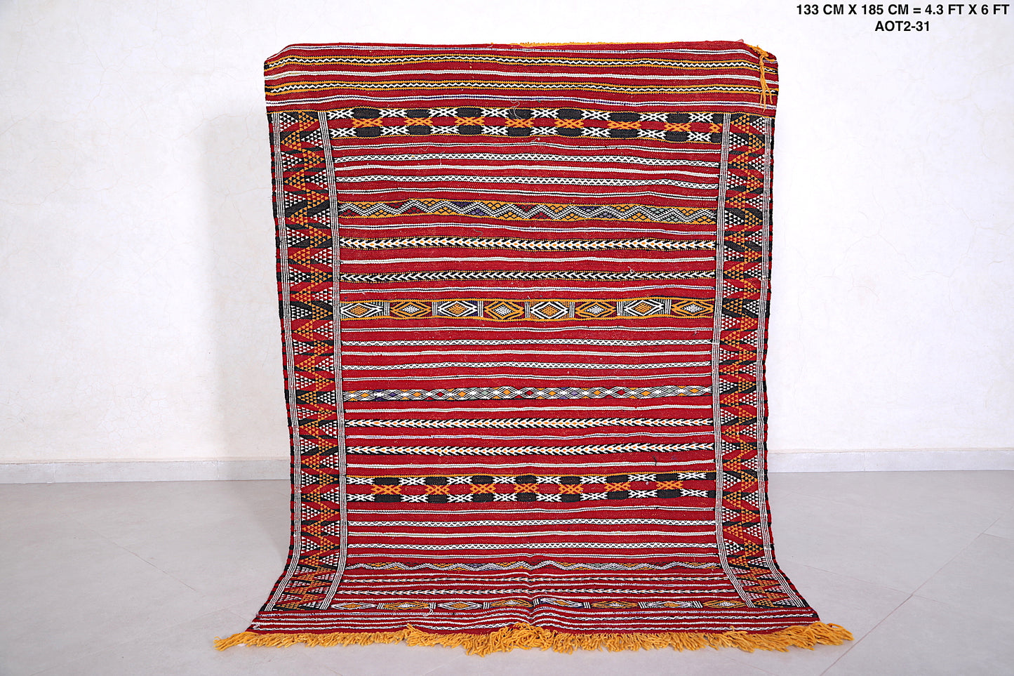 Handwoven Berber Kilim - 4.3 FT X 6 FT | Authentic Moroccan Rug