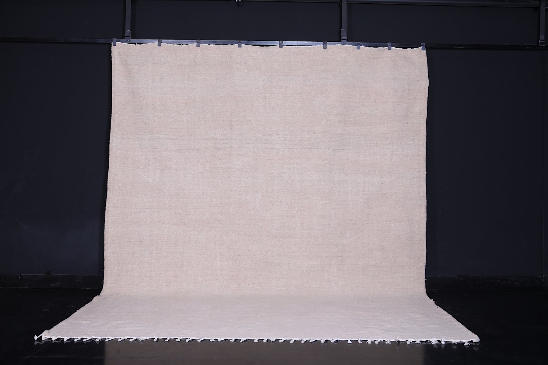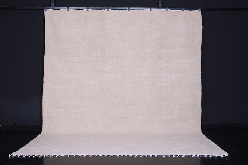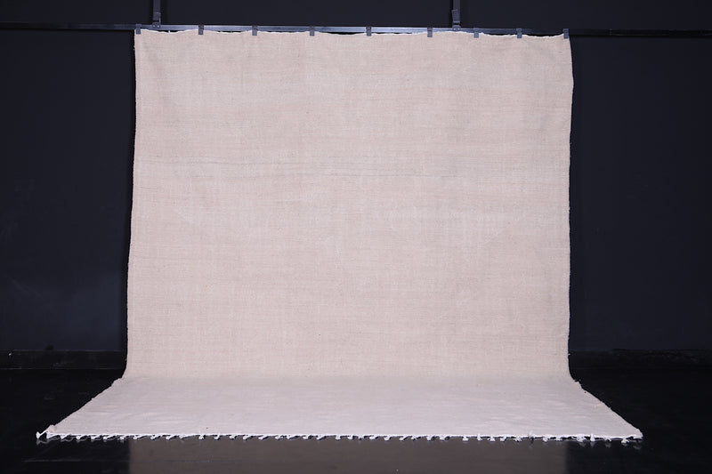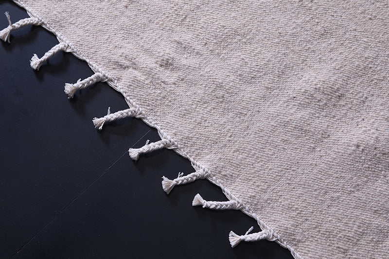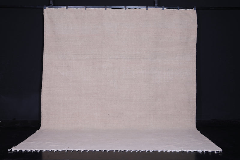 Infuse your home with "quiet luxury" using this authentic hand-spun wool Moroccan Kilim. This piece celebrates raw beauty with its monochromatic cream and oatmeal palette, showcasing the natural, undyed tonal variations of high-quality wool. Its flatwoven construction provides a sleek, architectural look that is as durable as it is beautiful.