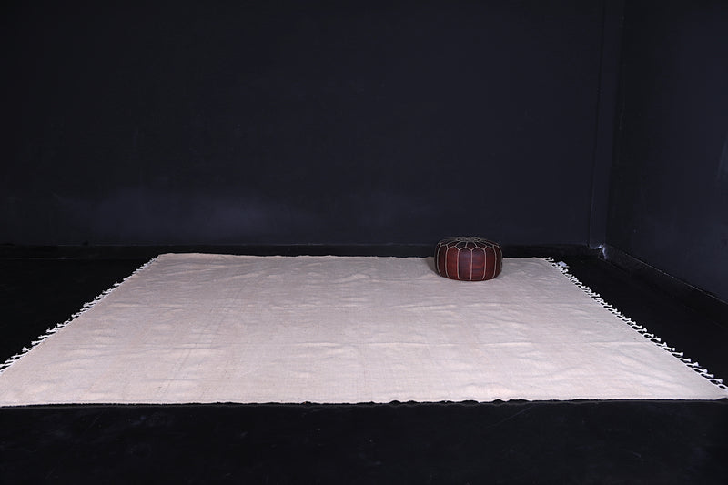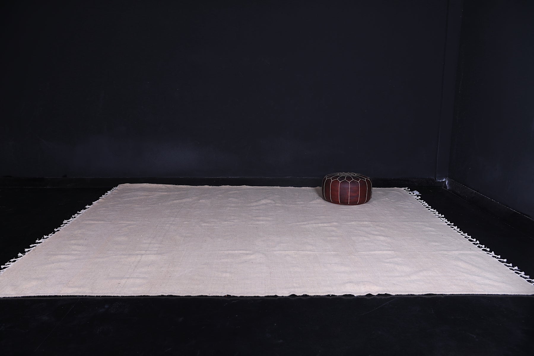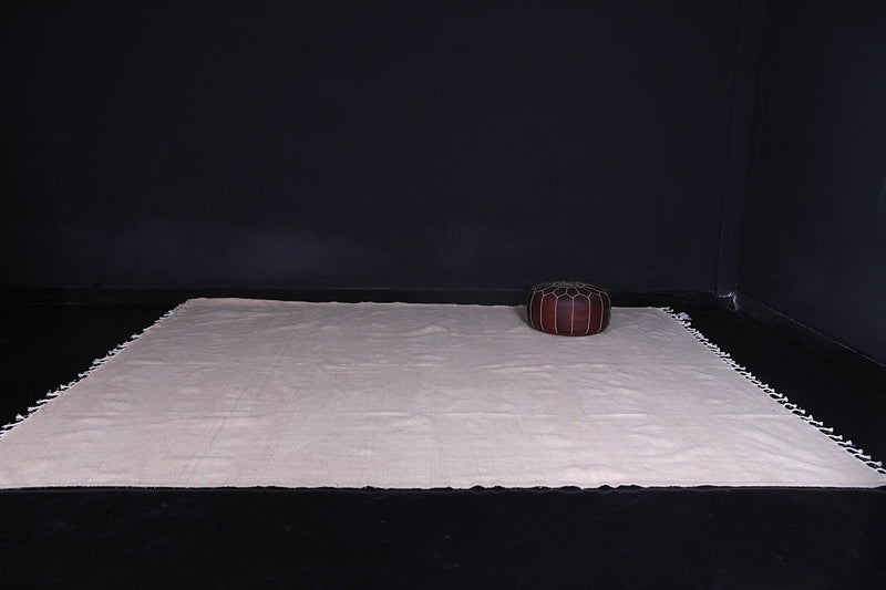 Custom wool Moroccan kilim - Organic cream flatweave area rug