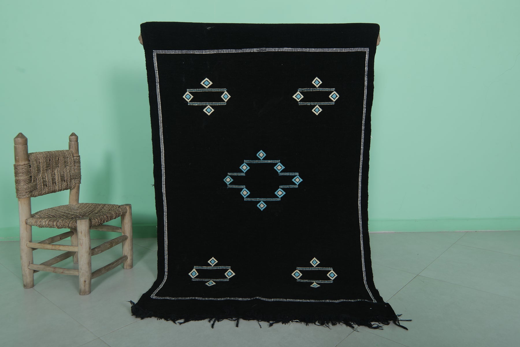 Black Moroccan Handwoven Kilim - 3 FT X 4.8 FT | Artisan Decor
