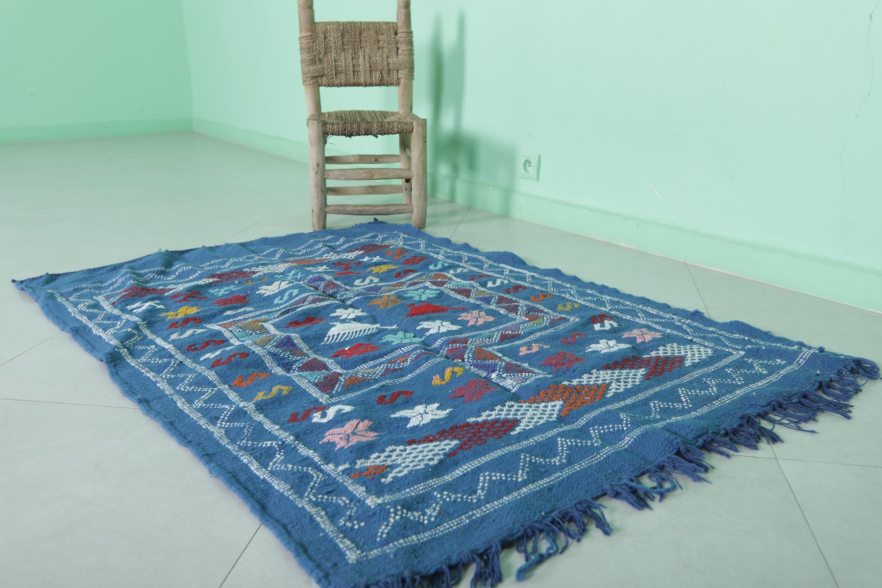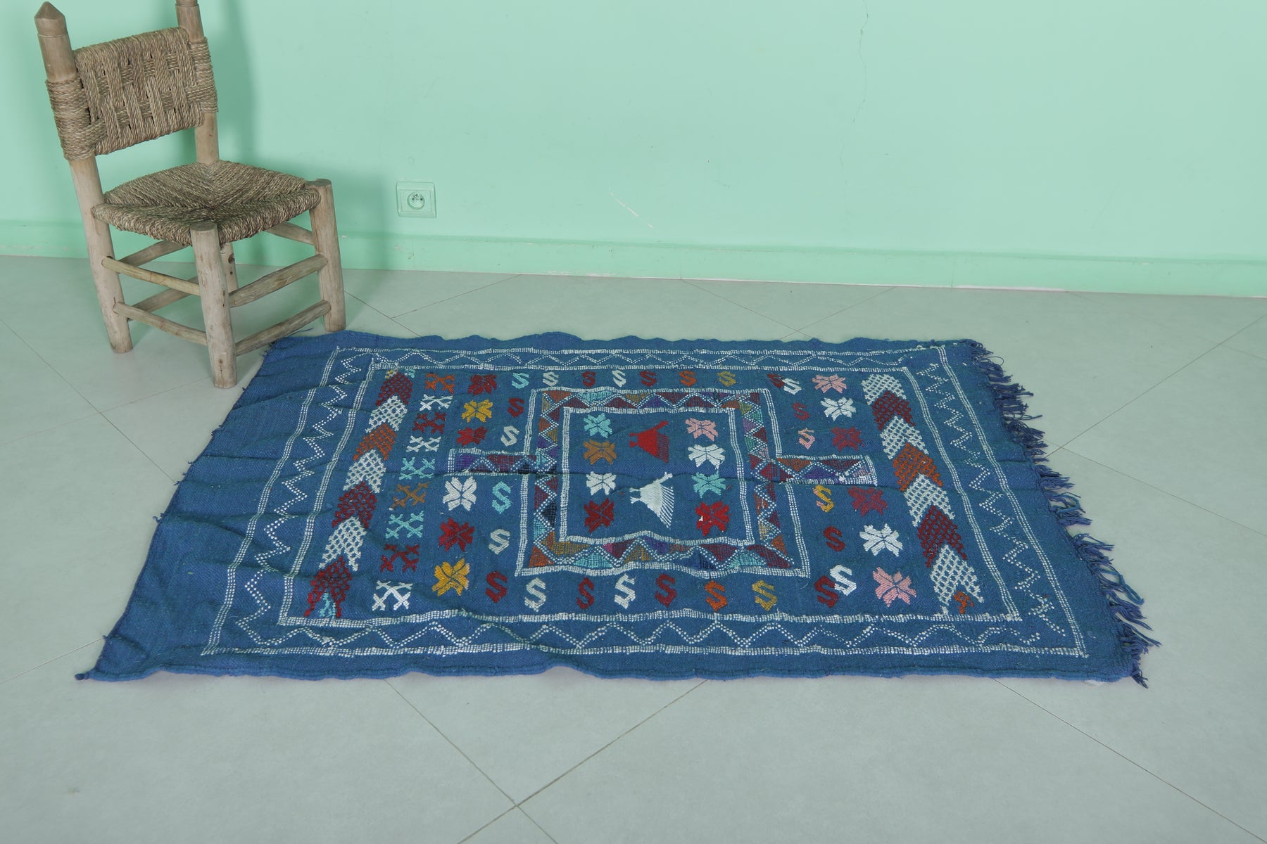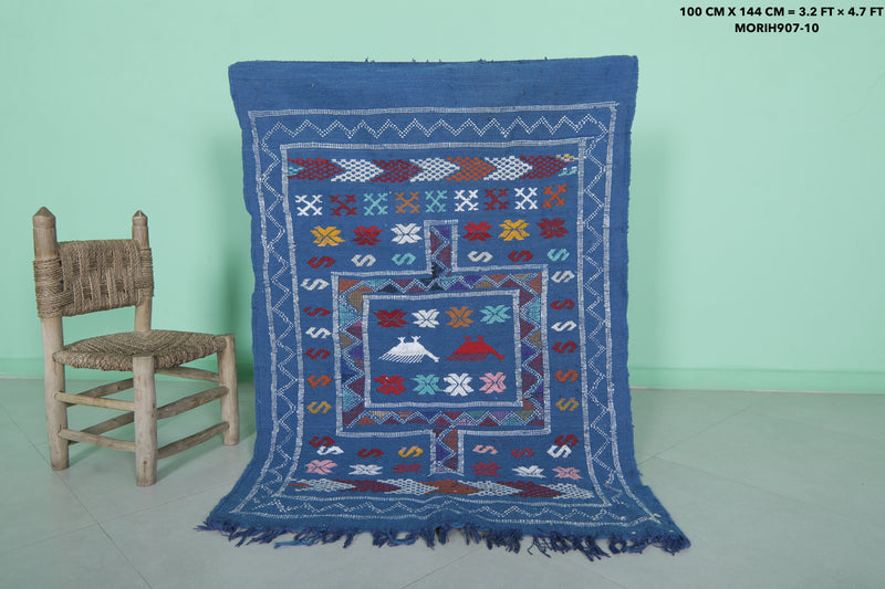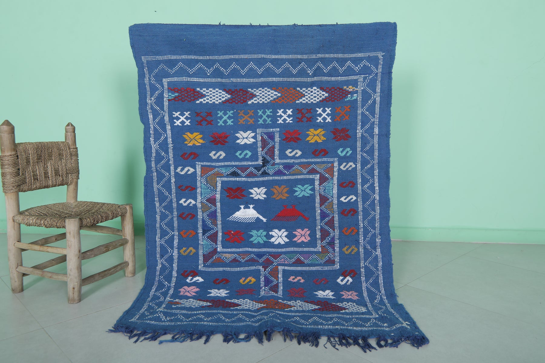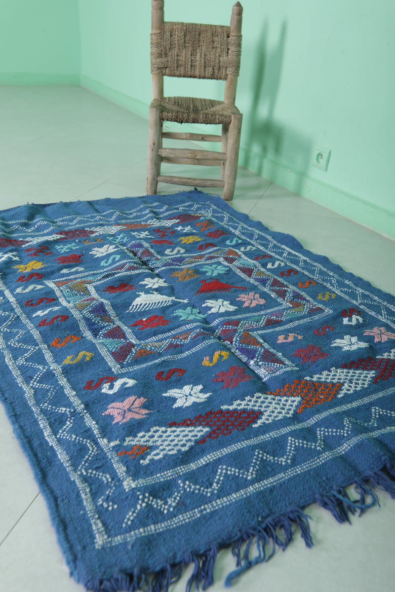 Blue Kilim Rug - 3.2 FT X 4.7 FT | Authentic Moroccan Handwoven