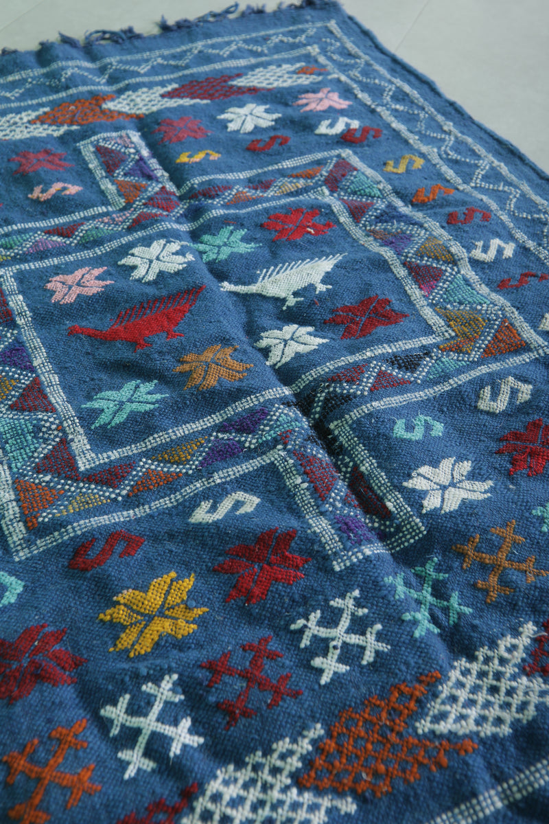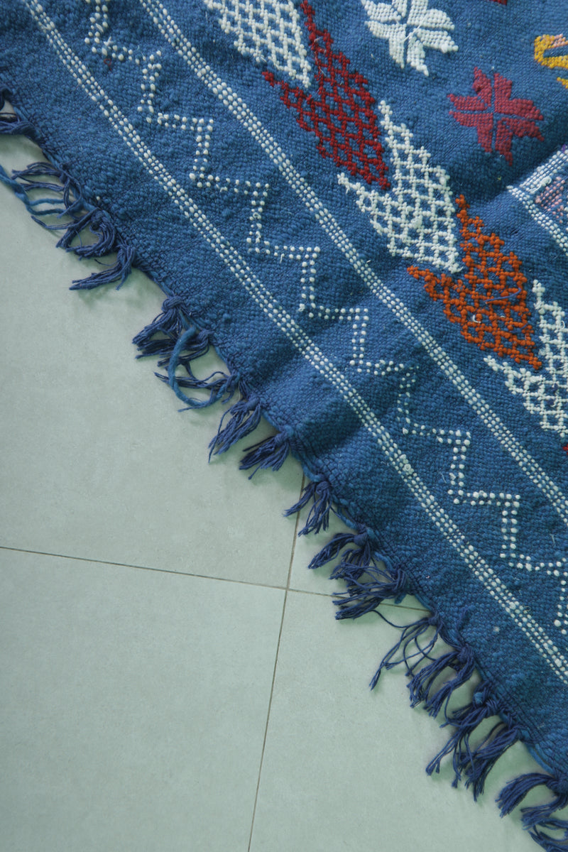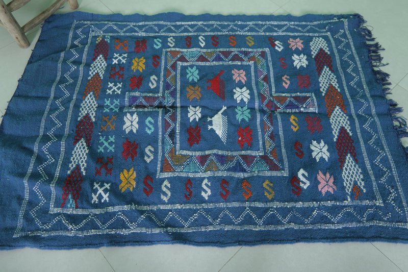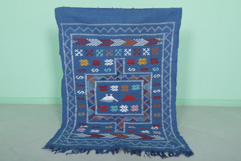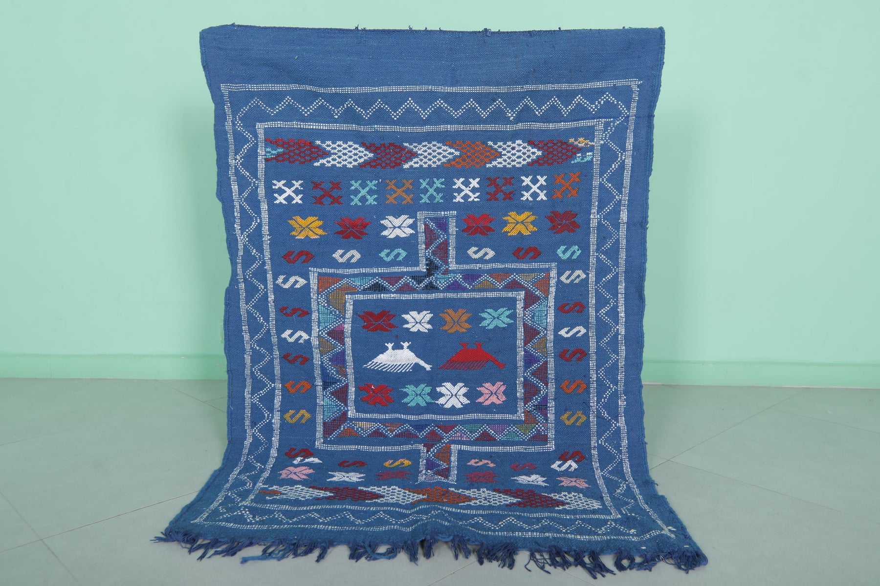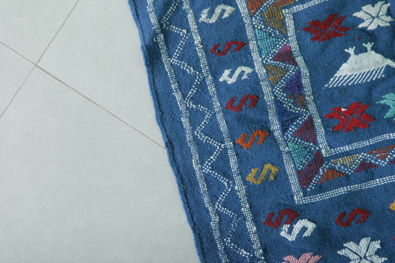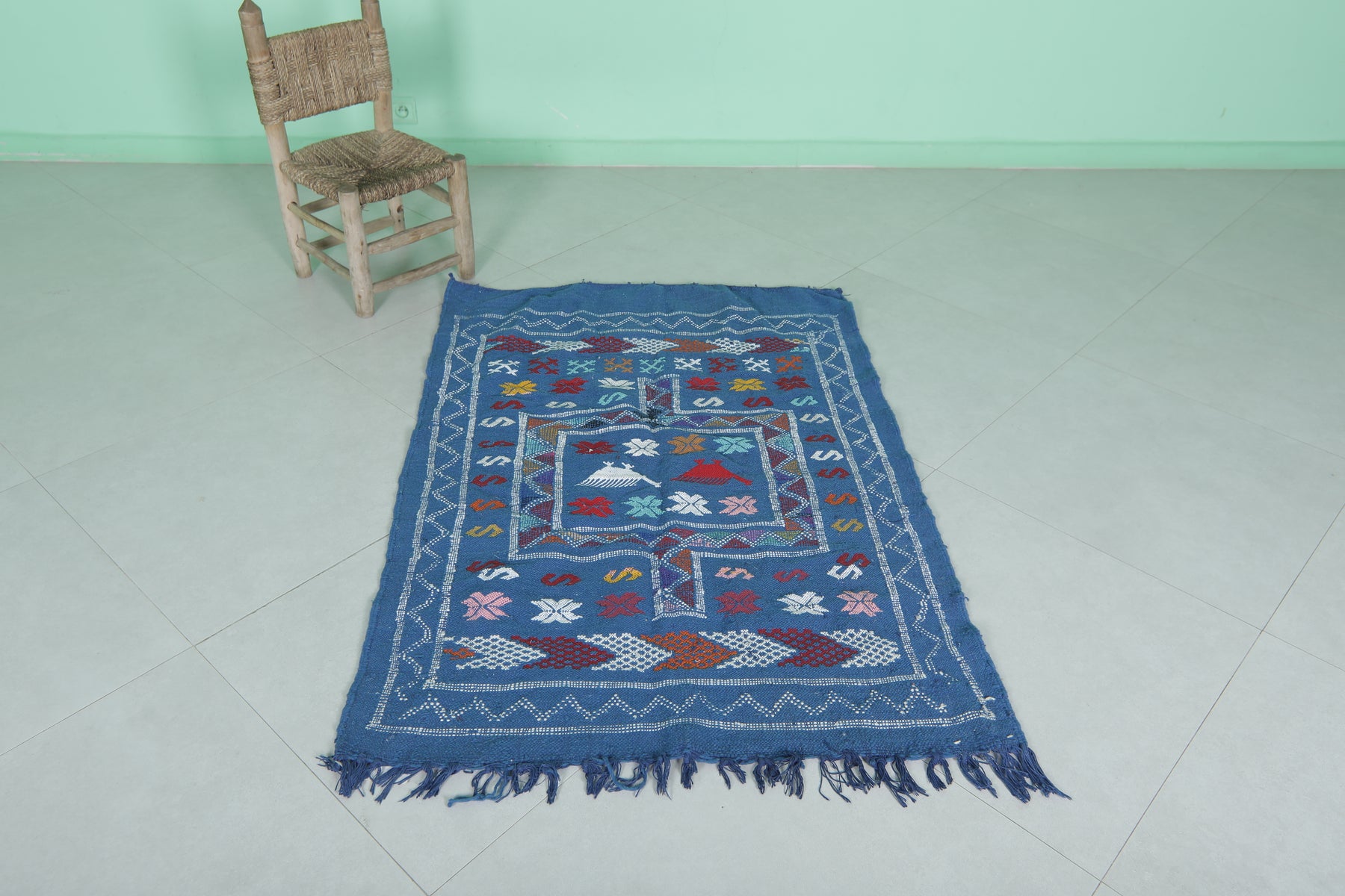 Blue Kilim Rug - 3.2 FT X 4.7 FT | Authentic Moroccan Handwoven