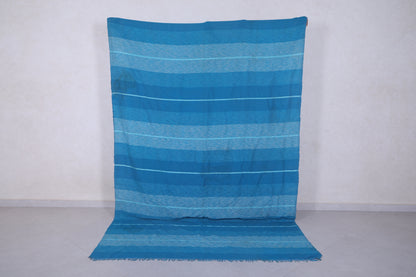 This 5.7 x 9 feet Blue Moroccan Handwoven Kilim adds a touch of tranquility with its serene blue tones and classic Moroccan patterns. Crafted by skilled artisans, this lightweight yet durable rug is ideal for living rooms, bedrooms, or meditation spaces.