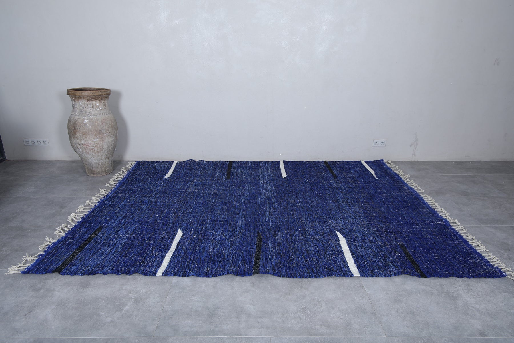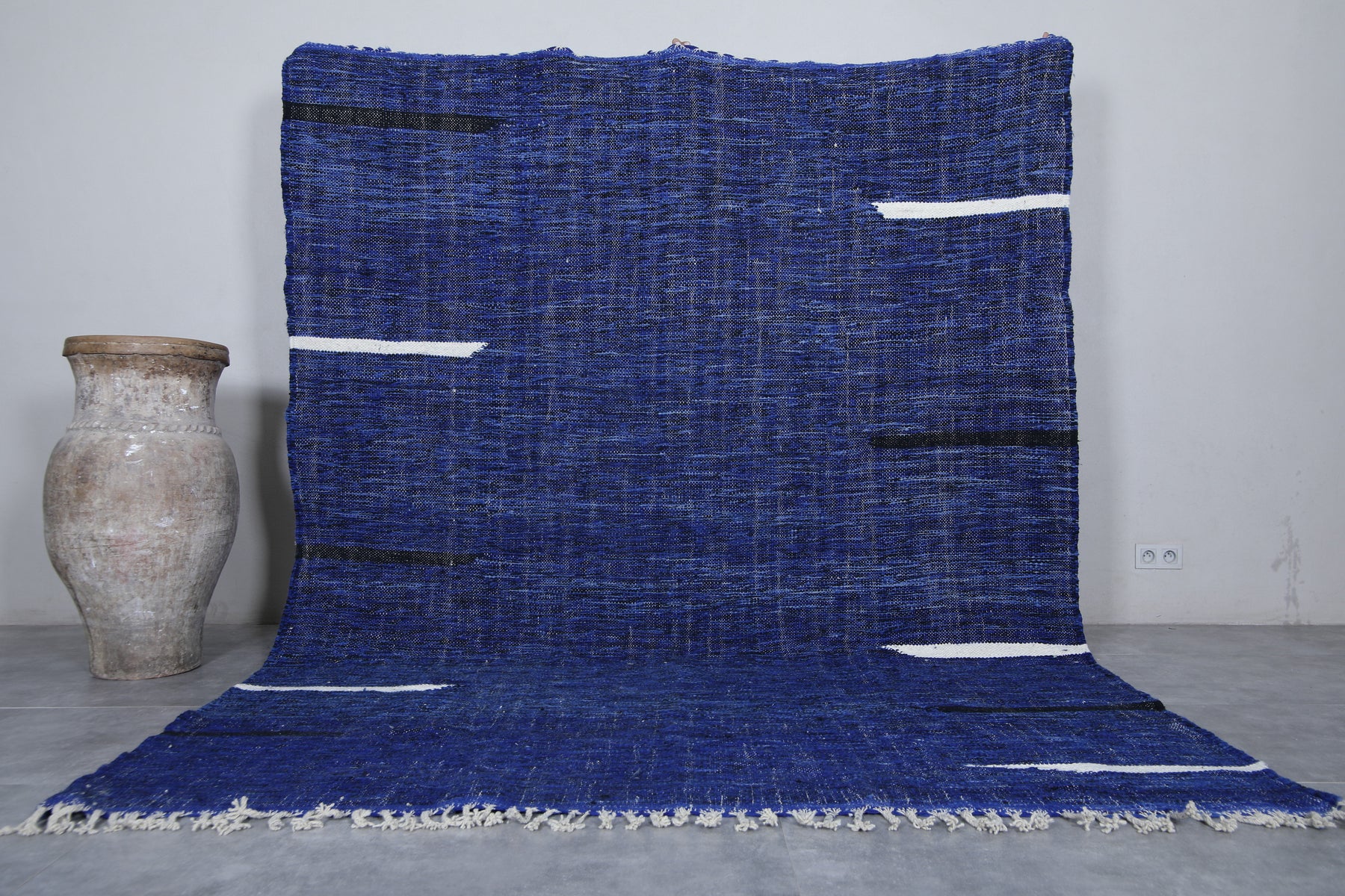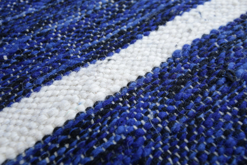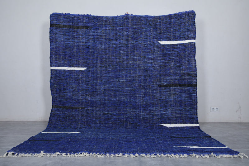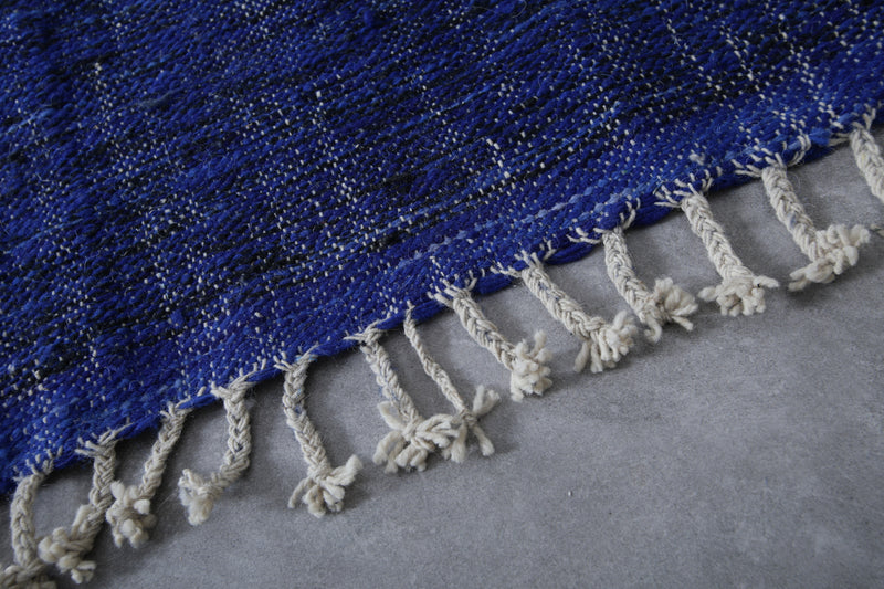 Blue Moroccan flat woven wool rug - Berber custom rug