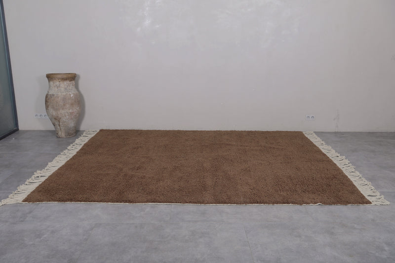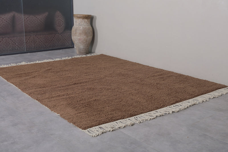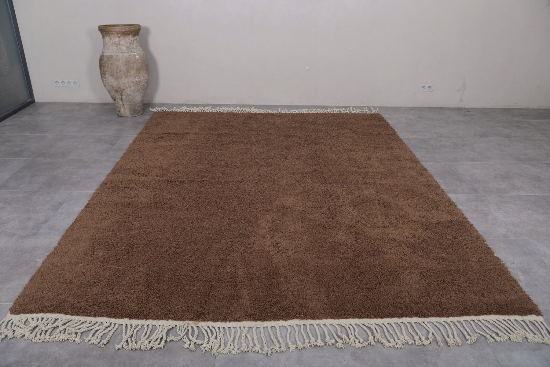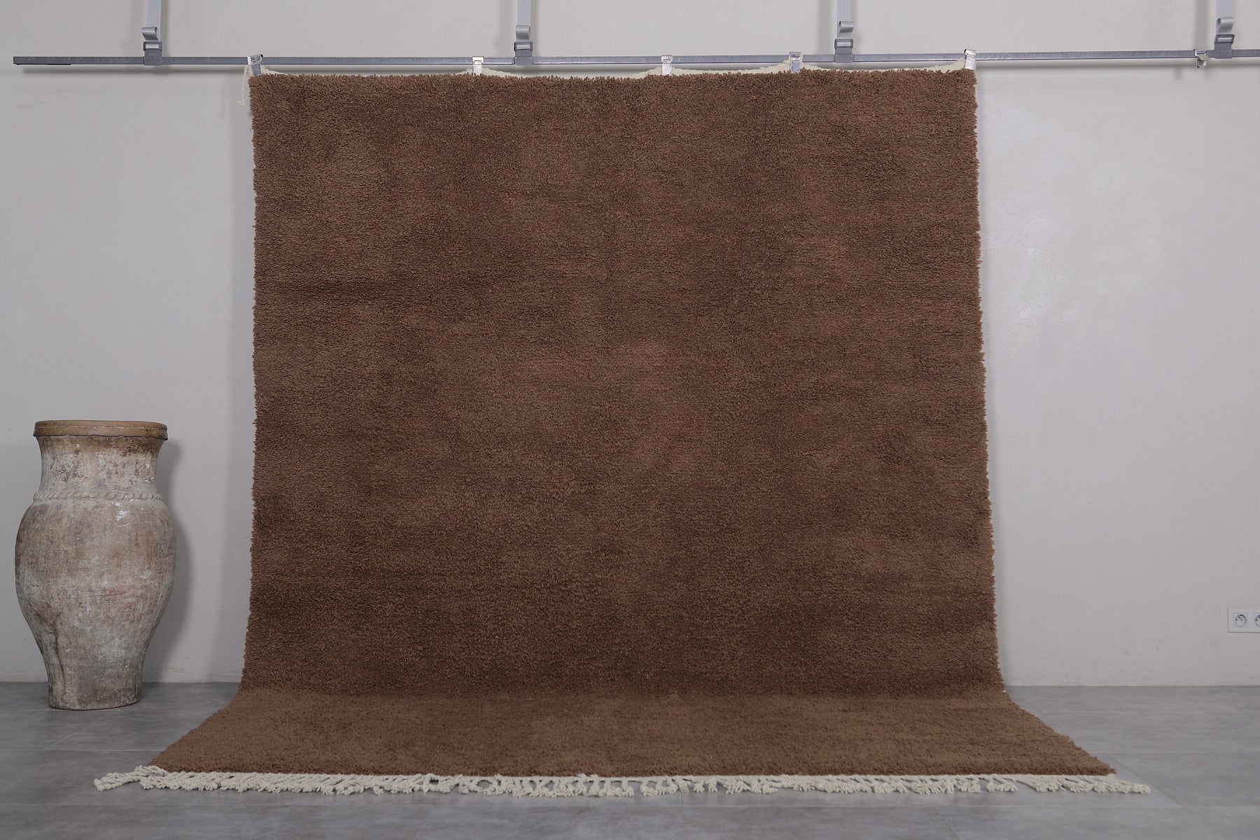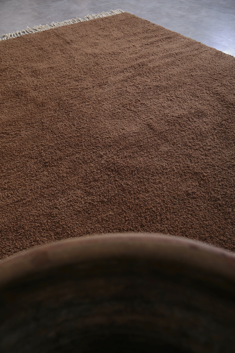 Discover the ultimate in comfort and style with this authentic Moroccan Berber area rug. This premium piece is handwoven in the Atlas Mountains, embodying the timeless simplicity of traditional design. The rich, earthy chocolate brown hue acts as a grounding neutral, making it an easy addition to any color scheme. Its substantial, plush high pile provides a luxurious, sinking-in feeling, transforming your room into a cozy sanctuary. Unlike patterned Berber rugs, its solid, minimalist design emphasizes texture, allowing it to provide warmth and sophistication without overwhelming your existing decor. A durable, heirloom-quality piece perfect for high-traffic areas. Search terms: handwoven wool rug, solid brown area rug, simple shag rug, large Moroccan floor covering, minimalist home decor, Beni Ourain style brown.