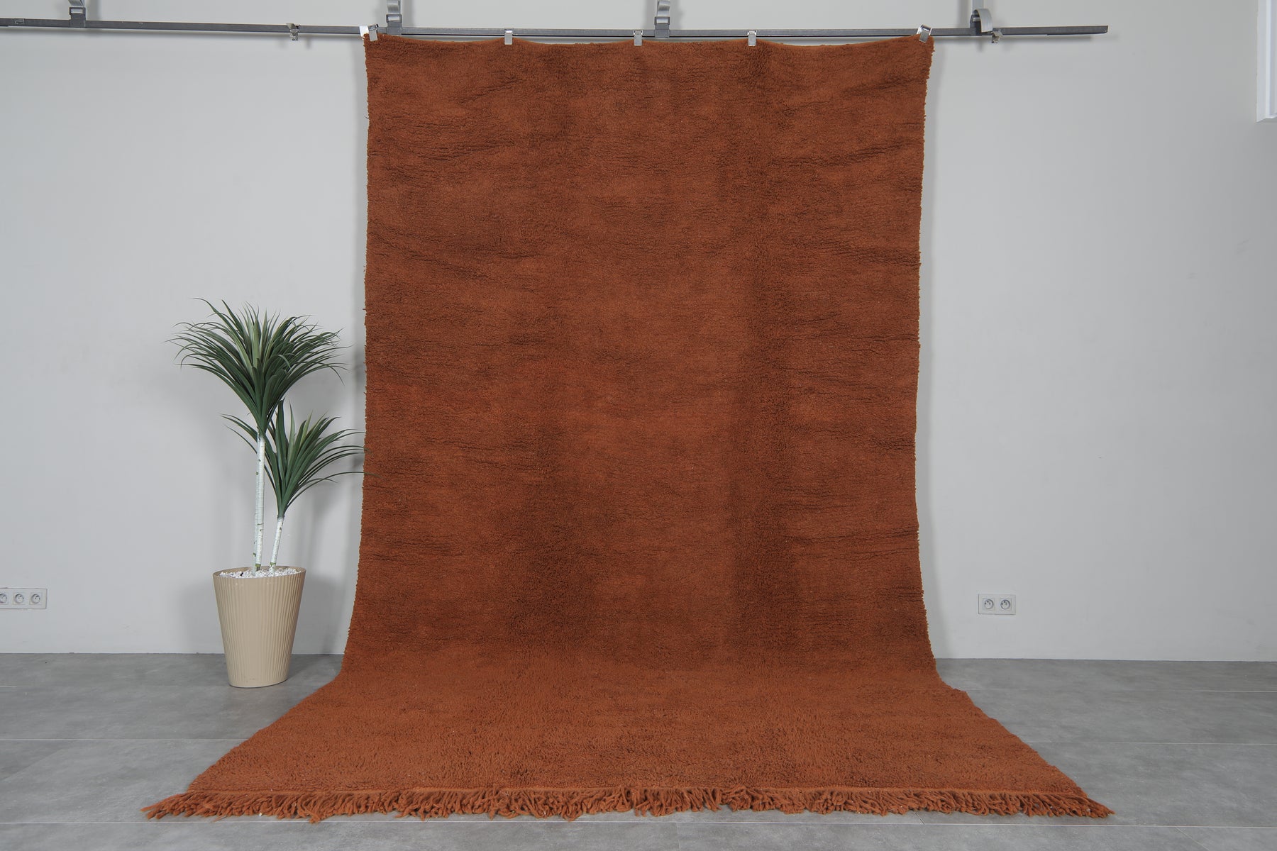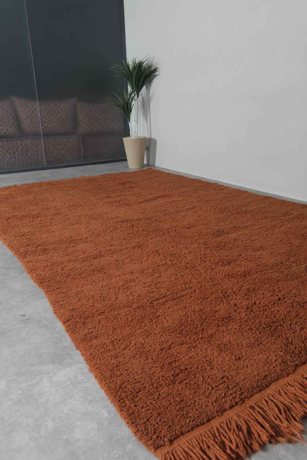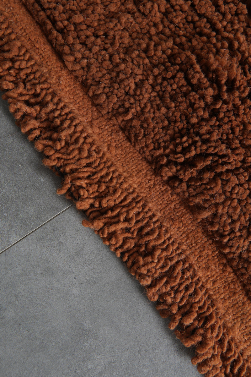 Bring warmth and elegance to your home with this handmade Moroccan wool rug, measuring 7.5 FT x 12.7 FT. Featuring a rich brown tone and a plush hand-knotted texture, this rug offers both luxurious comfort and long-lasting durability. Crafted from 100% high-quality natural wool, it’s the perfect statement piece for living rooms, dining areas, or spacious interiors.