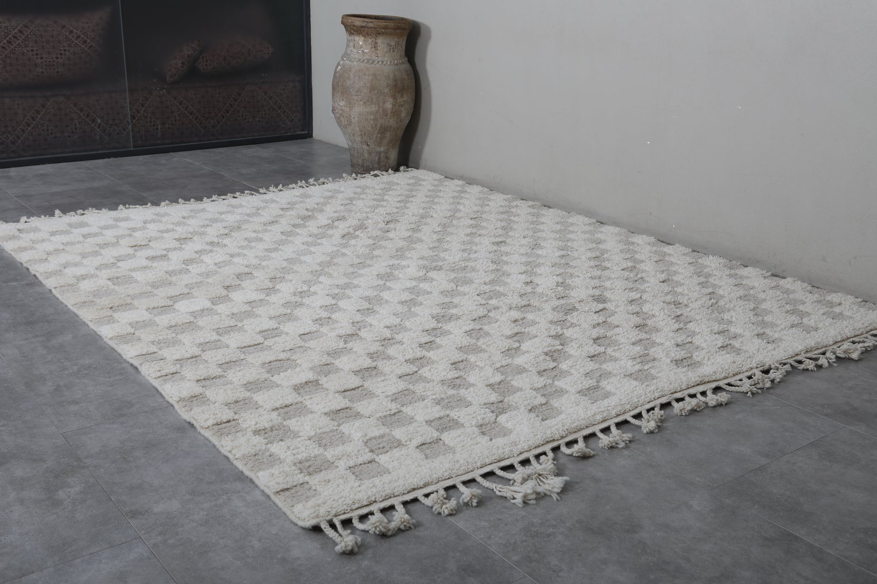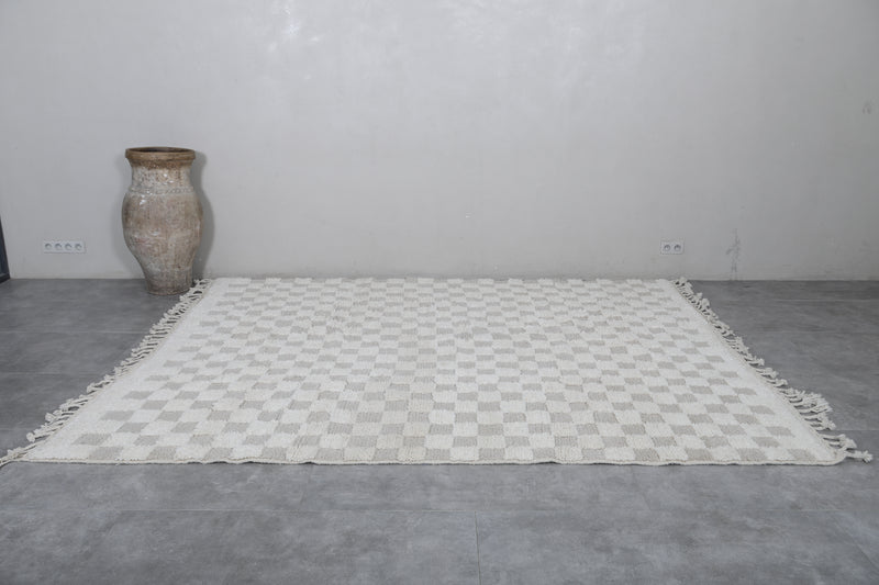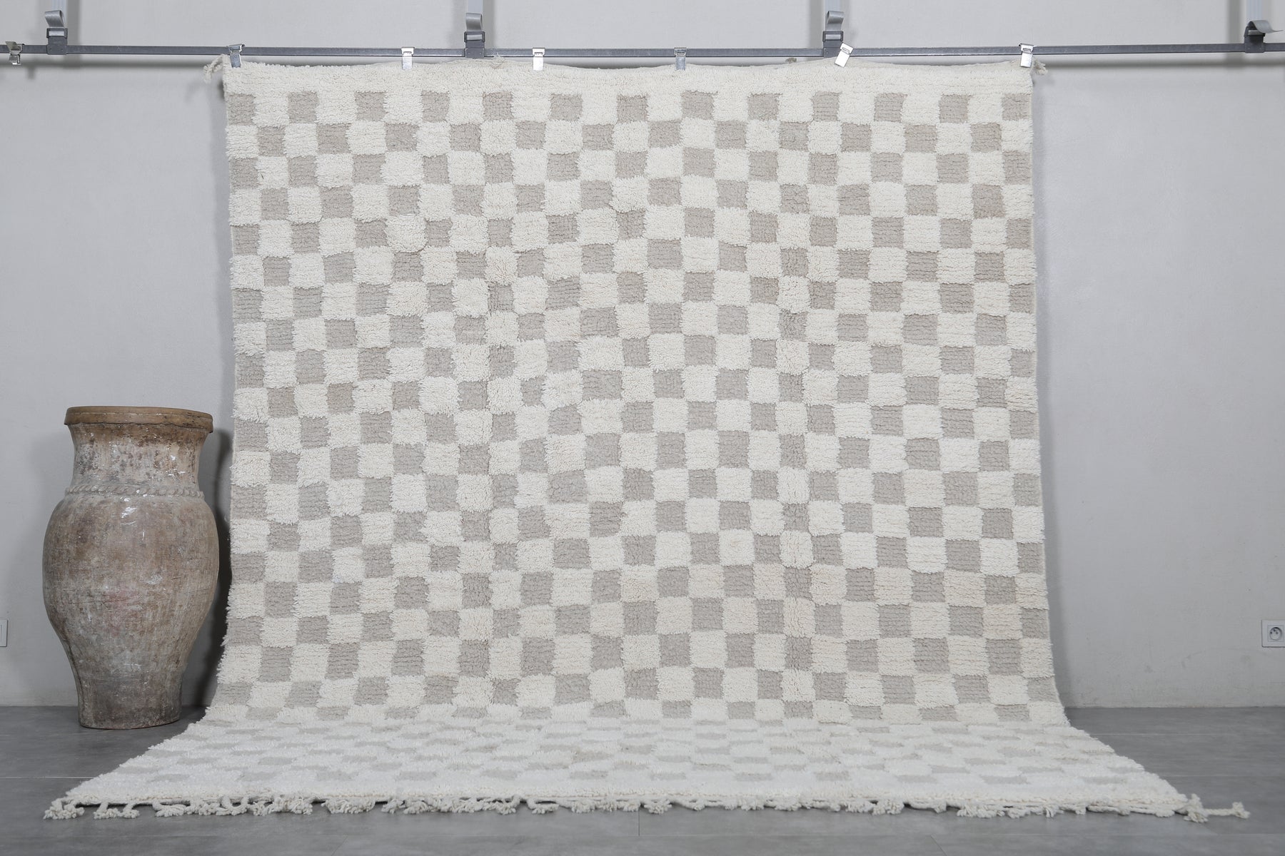 Checkered Moroccan rug - Handwoven 8.3 x 10.1 Feet | Elegant neutral design