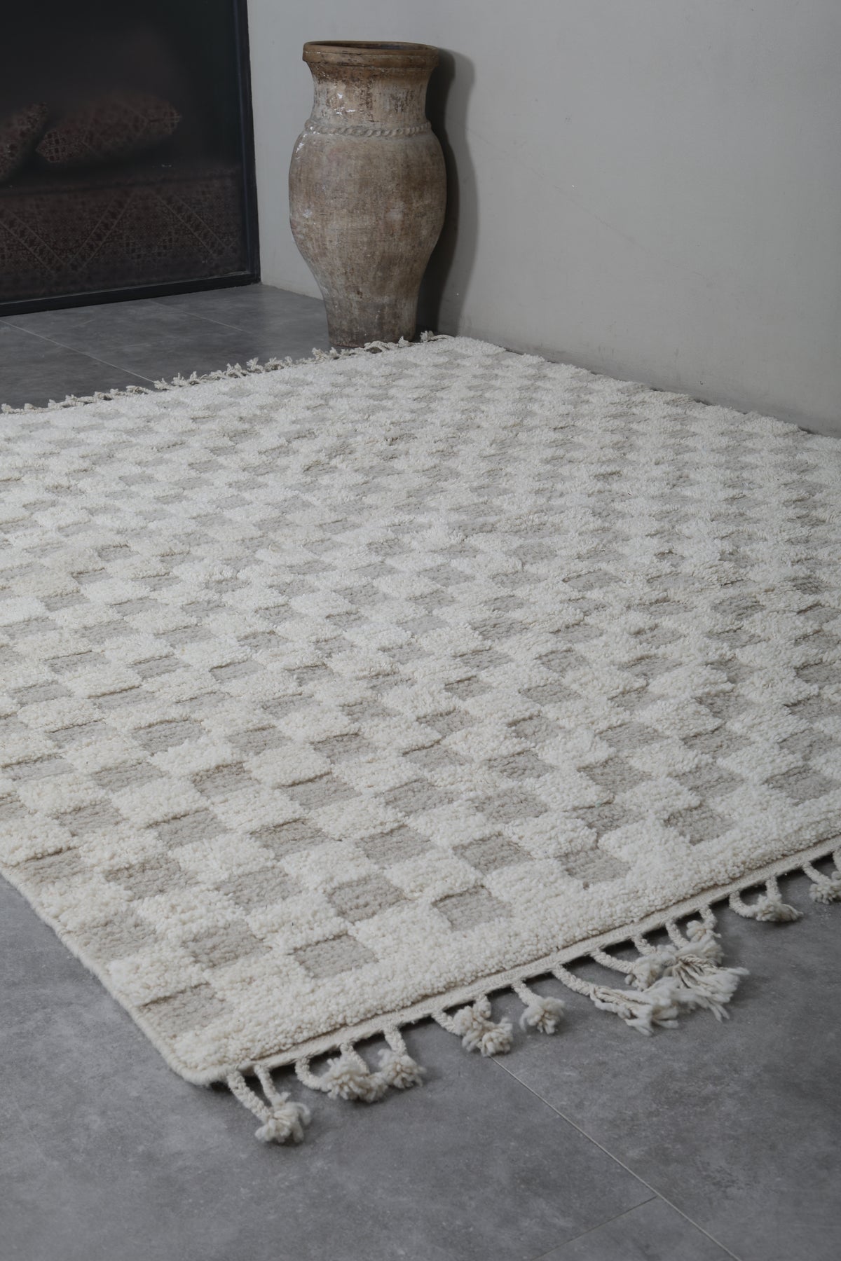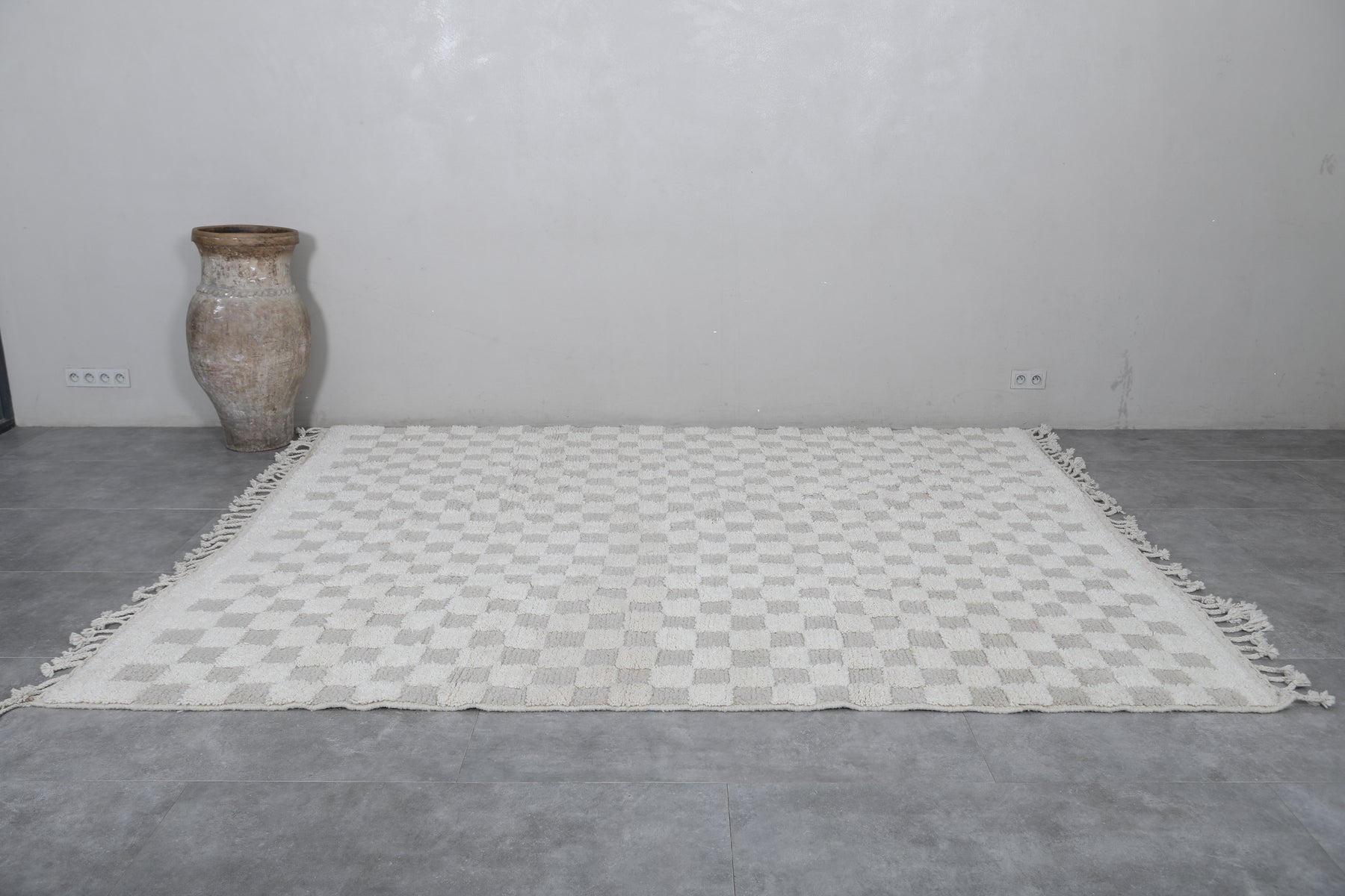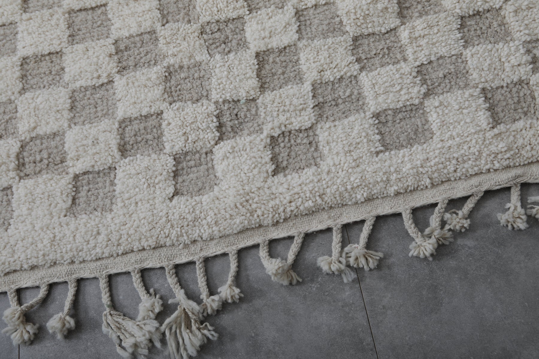 Checkered Moroccan rug - Handwoven 8.3 x 10.1 Feet | Elegant neutral design