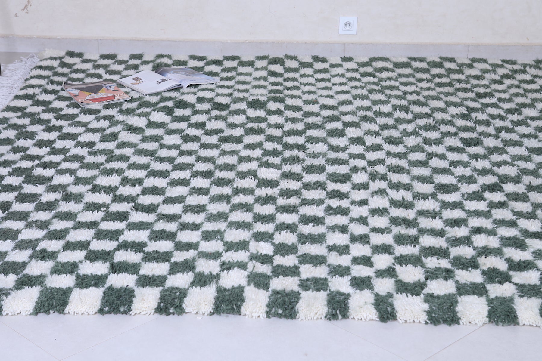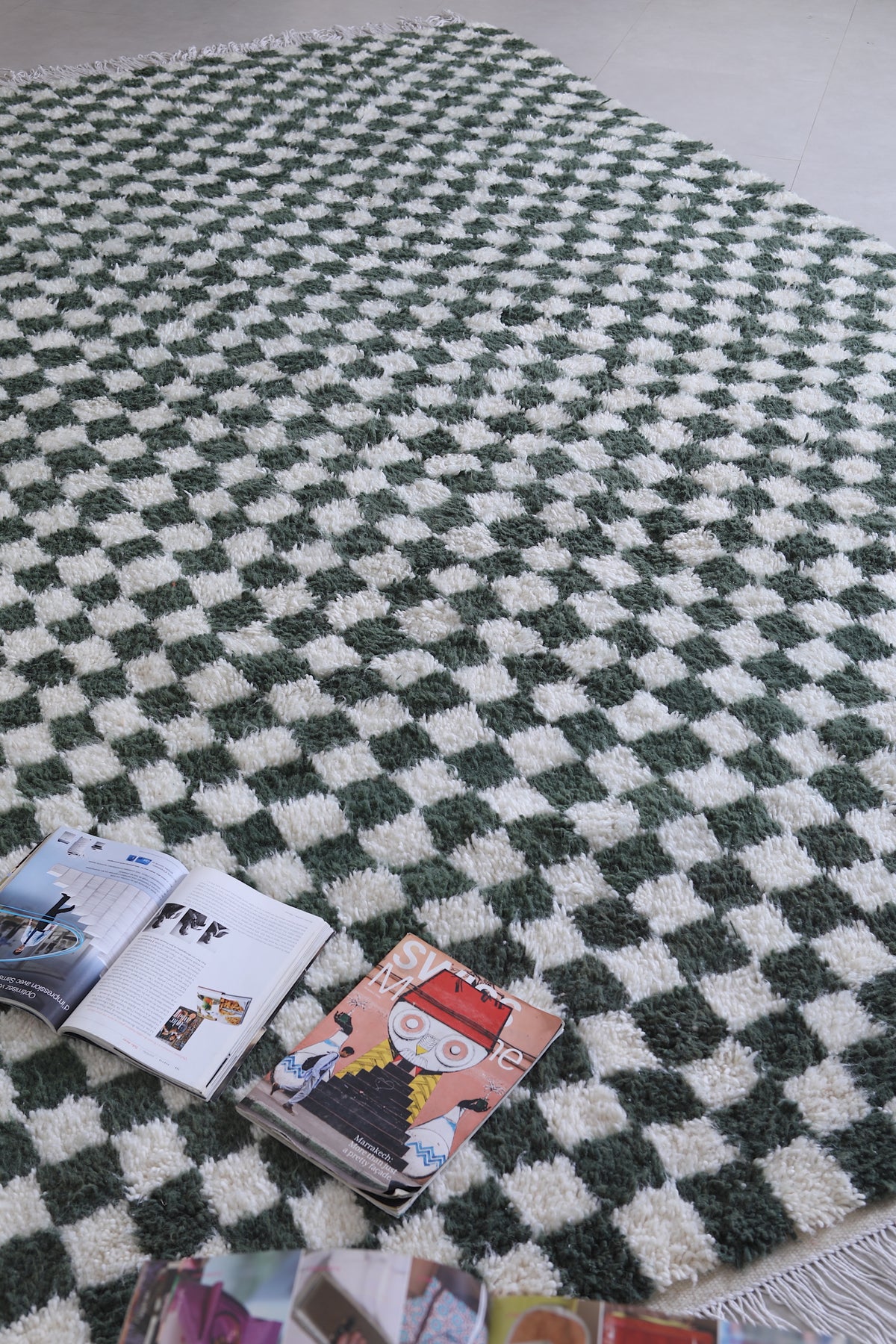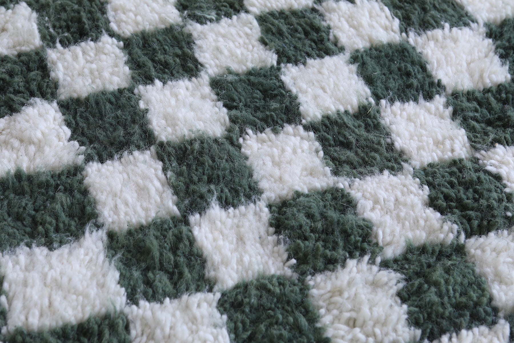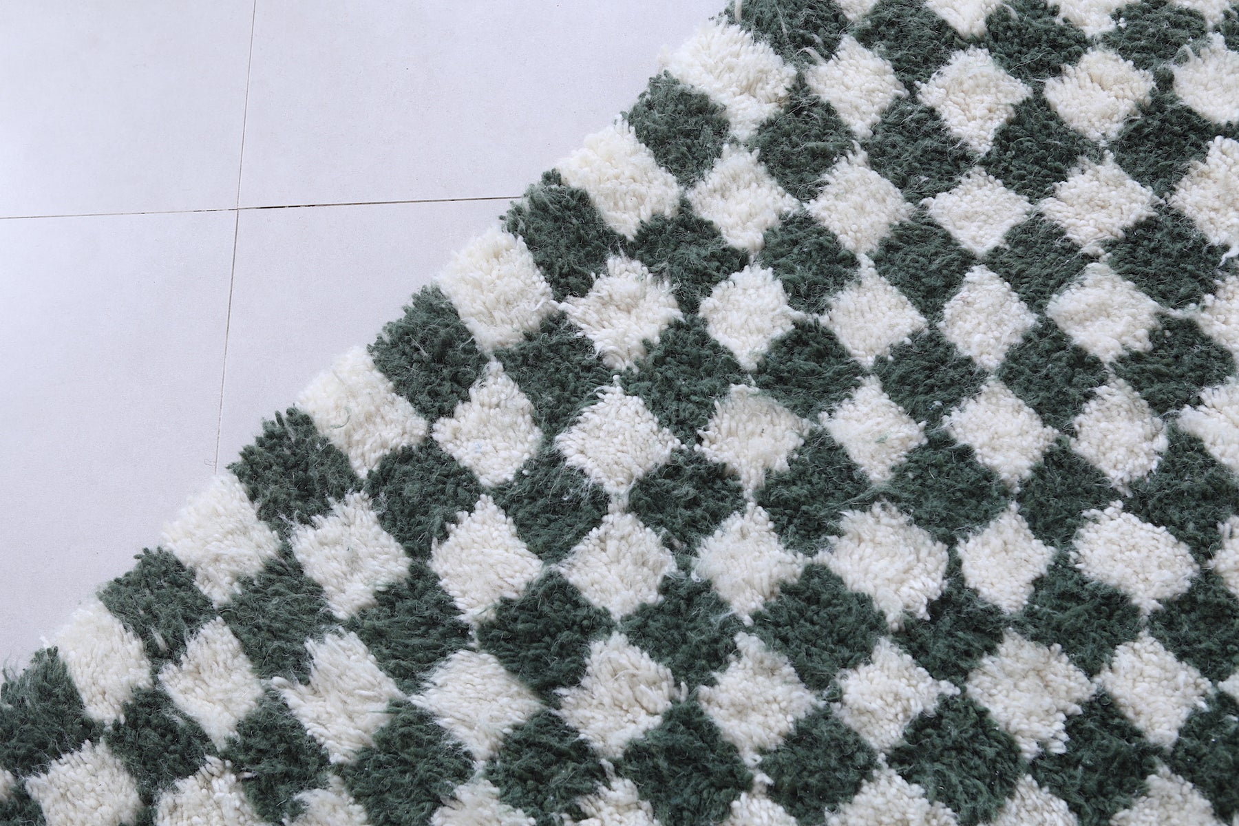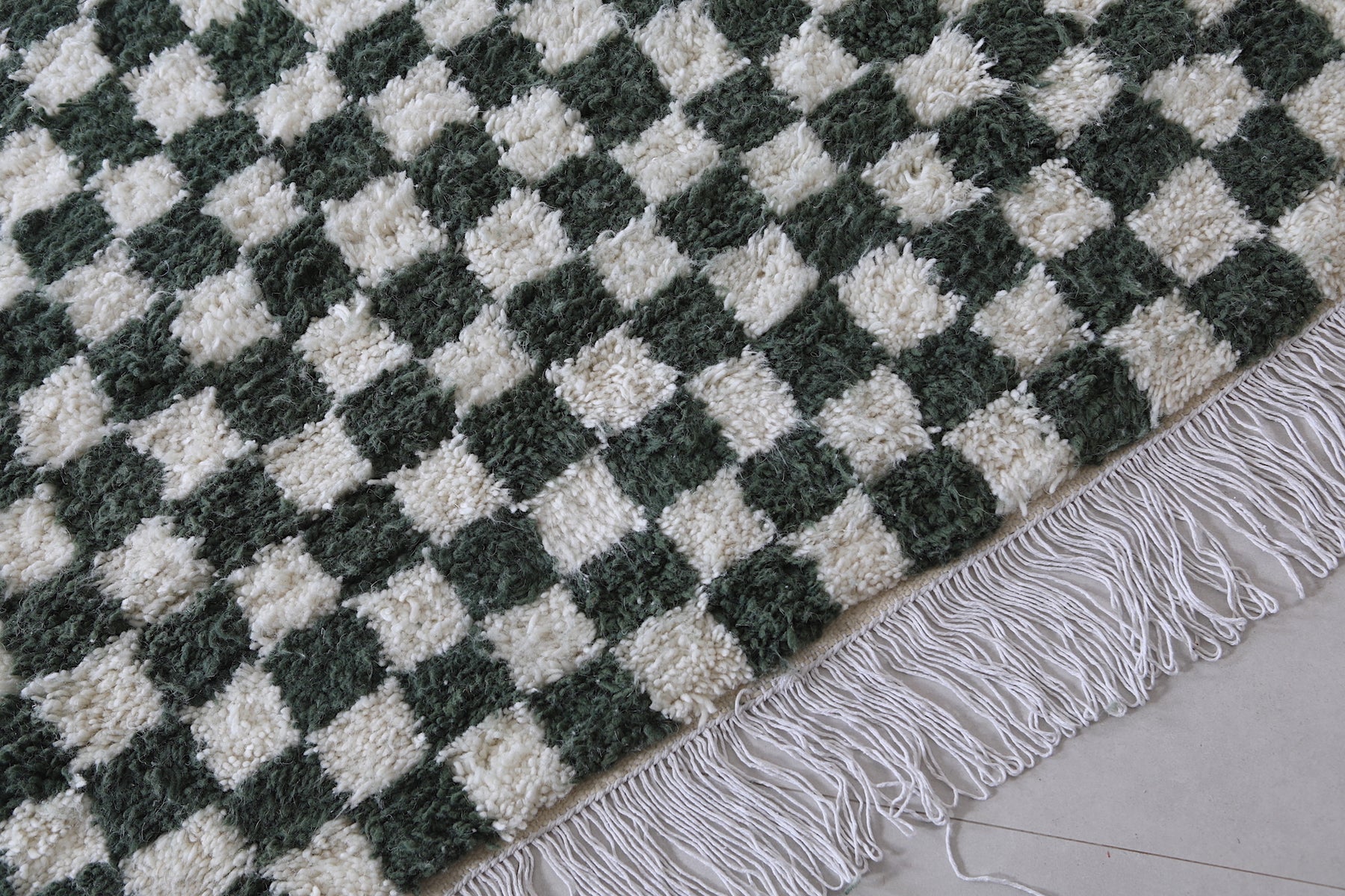 Checkered Moroccan rug - Green and White Beni rug - Custom Rug - custom moroccan rugs