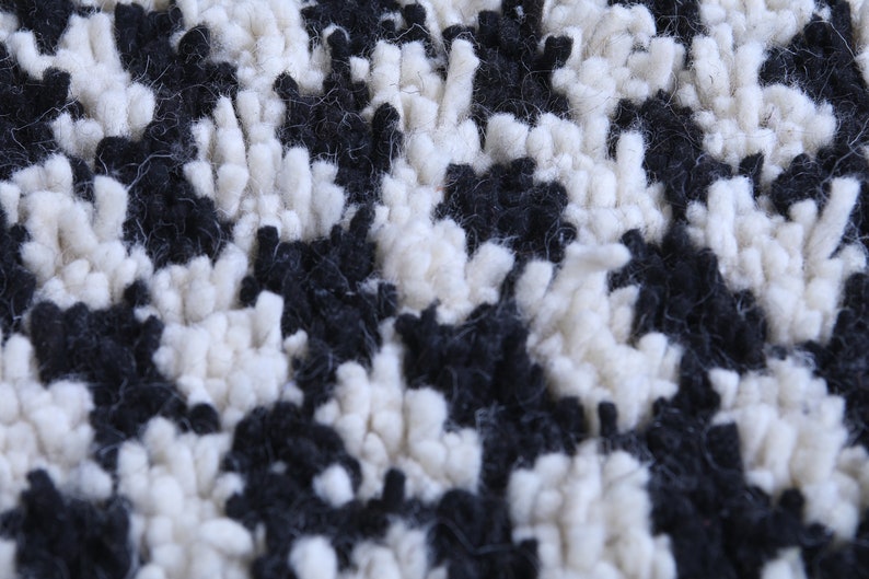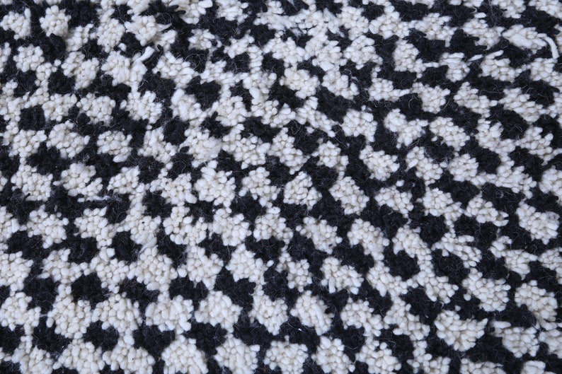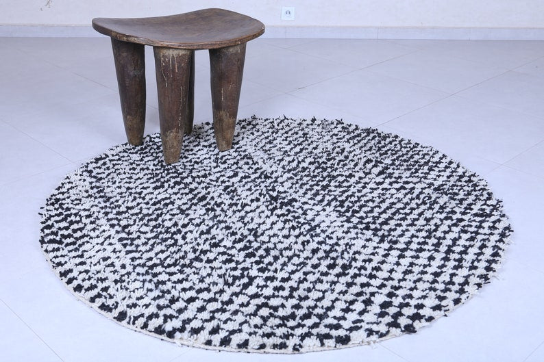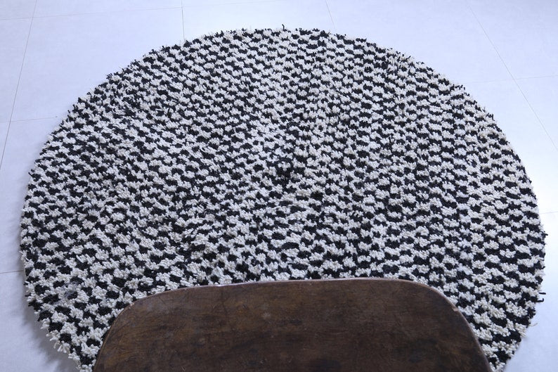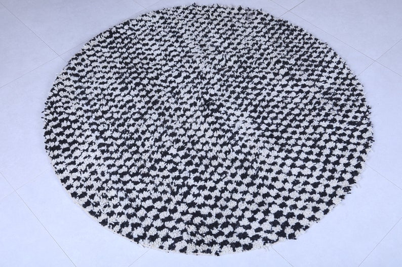 This Moroccan Round Rug features a bold black and white checkered pattern, adding instant contrast and artistic flair to your interior space.