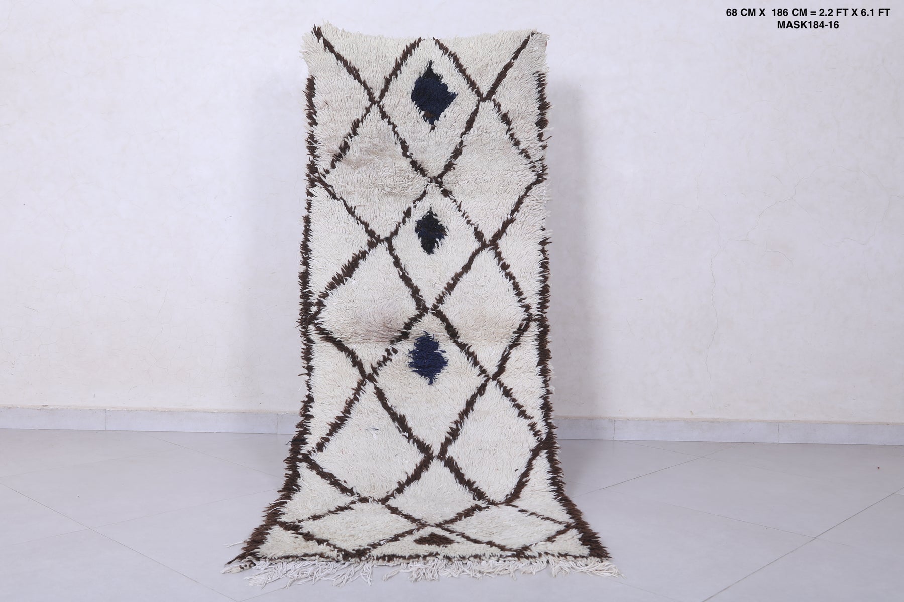 Elevate your space with this handcrafted Moroccan Berber rug, measuring 2.2 x 6.1 feet. Featuring a striking black and white diamond pattern, this versatile piece seamlessly blends traditional artistry with modern sophistication. The soft, plush wool offers comfort underfoot, making it ideal for hallways, living rooms, or cozy reading nooks. Handwoven by skilled artisans, this rug embodies the rich cultural heritage of Morocco while adding a touch of elegance to any home.