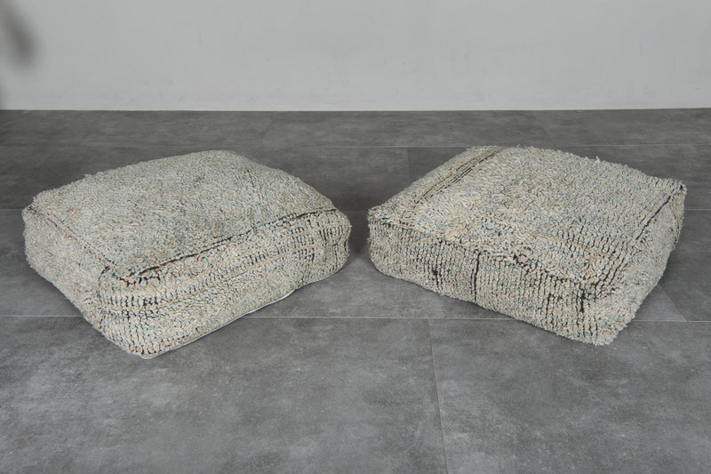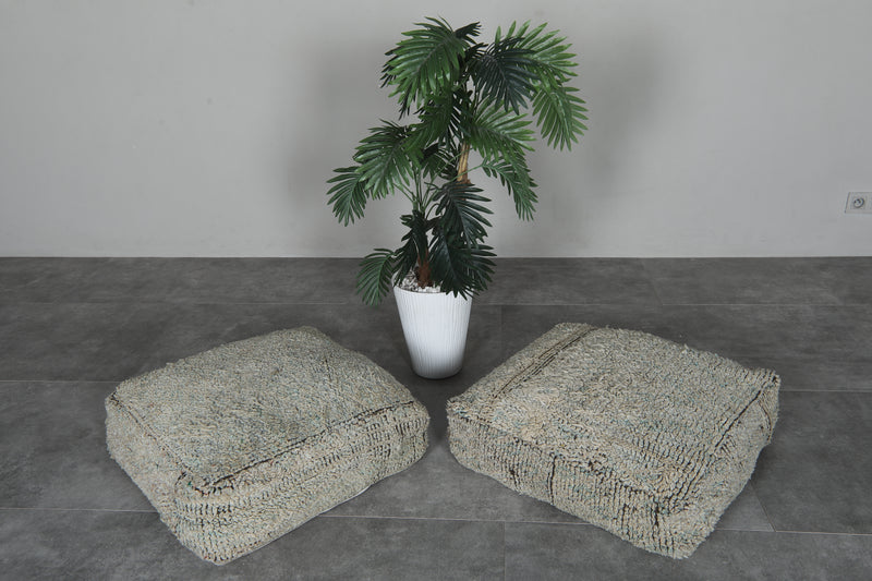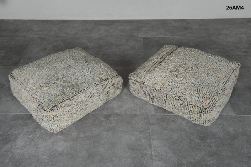 Neutral Wool Moroccan Pouf Set – 24x24 Minimalist Floor Cushions - kilim poufs