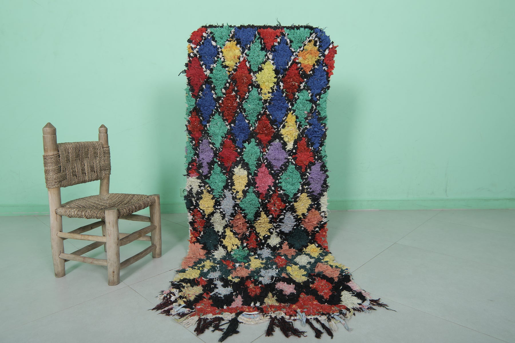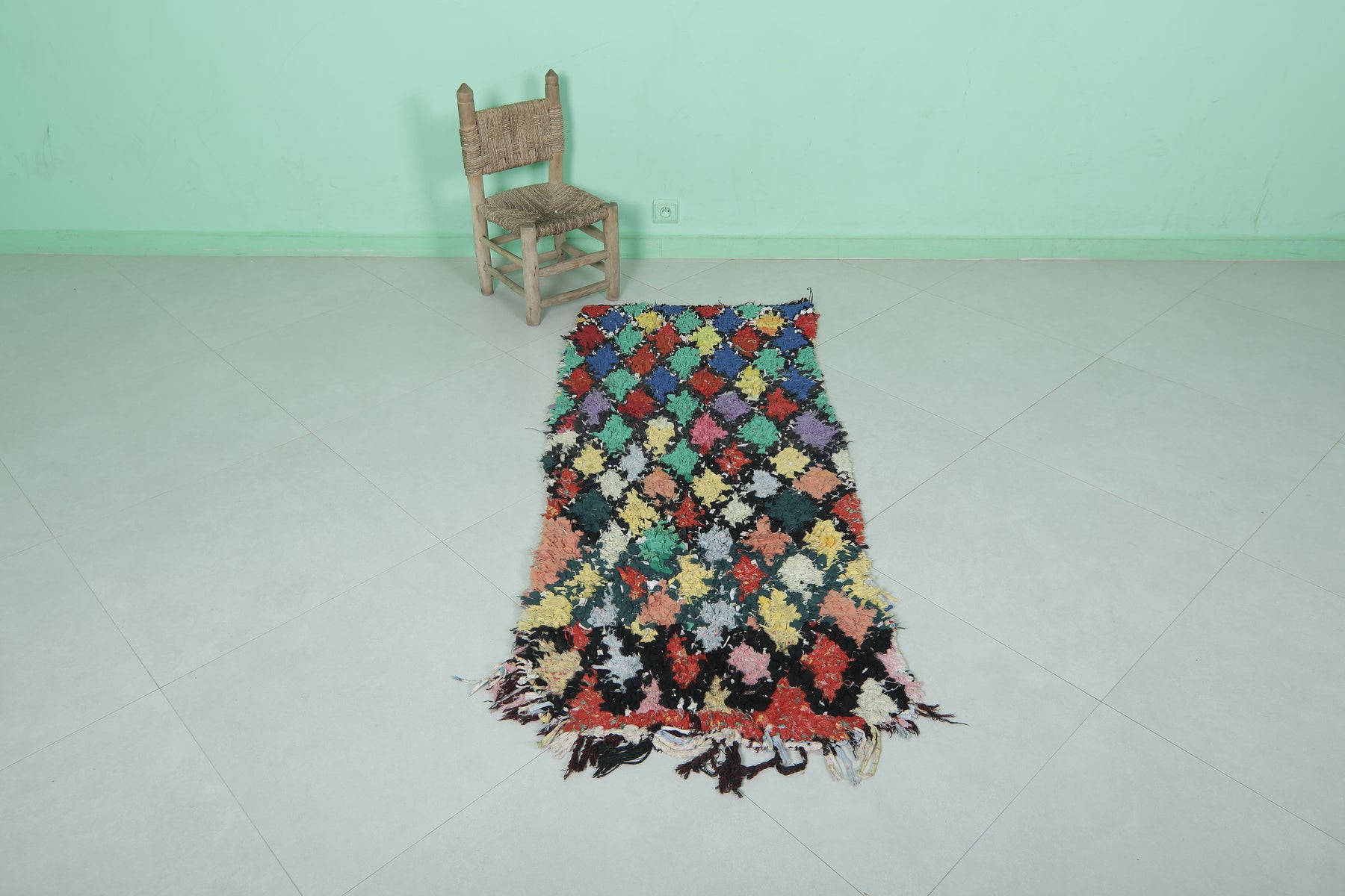 Transform your space with this vibrant handmade Moroccan Boucherouite rug, measuring 2.3 x 5.4 feet. Crafted from upcycled textiles, this eco-friendly rug features a dynamic diamond pattern in bold, colorful hues, perfect for adding a pop of personality to any room. Its lightweight design and versatile size make it ideal as an accent piece for hallways, nurseries, or cozy corners. Celebrate Moroccan artistry and sustainable living with this one-of-a-kind Boucherouite rug that blends traditional techniques with contemporary charm.