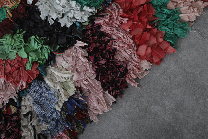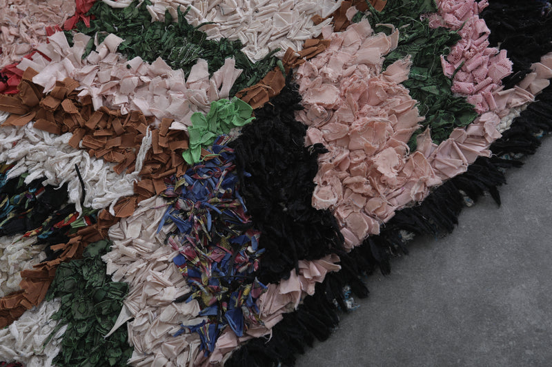 • Handwoven in Morocco using Boucherouite rug-making tradition