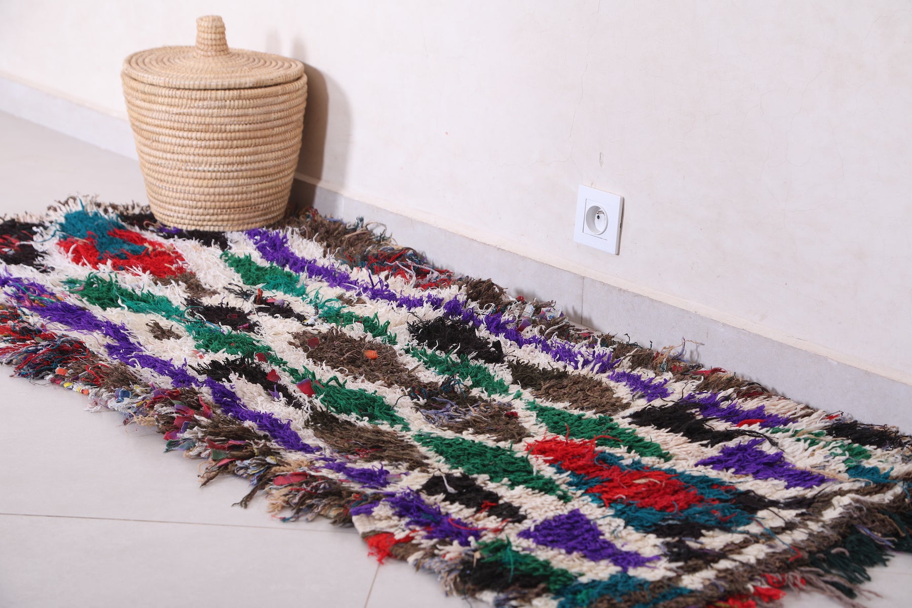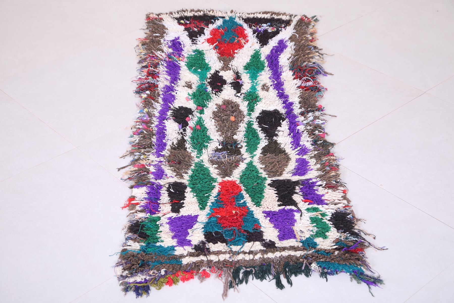 Transform your space with this Colorful Handmade Runner Rug Shag (2.2 x 5.3 FT), a striking Moroccan piece rich in texture and playful tones — perfect for adding cozy energy and artisan charm to any room.