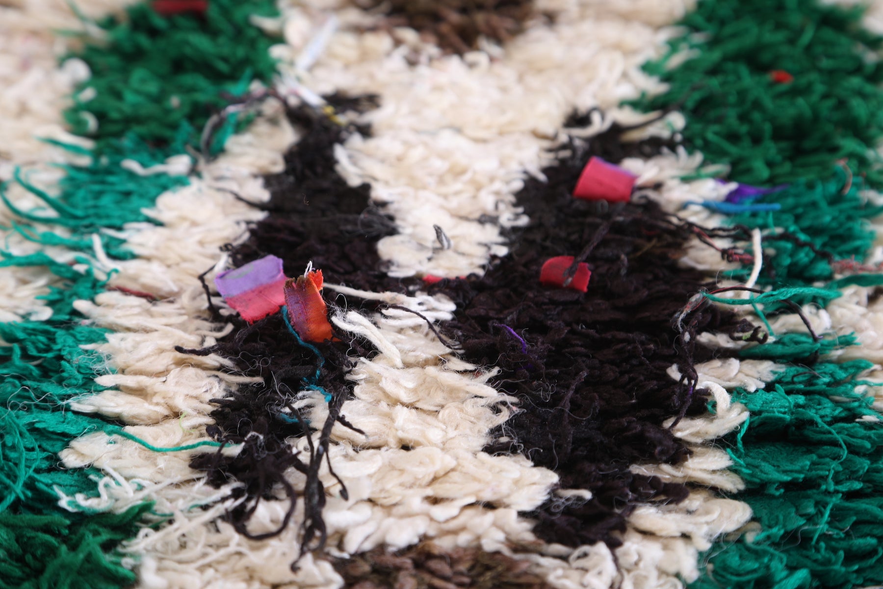 • Handmade in Morocco using Boucherouite rug techniques