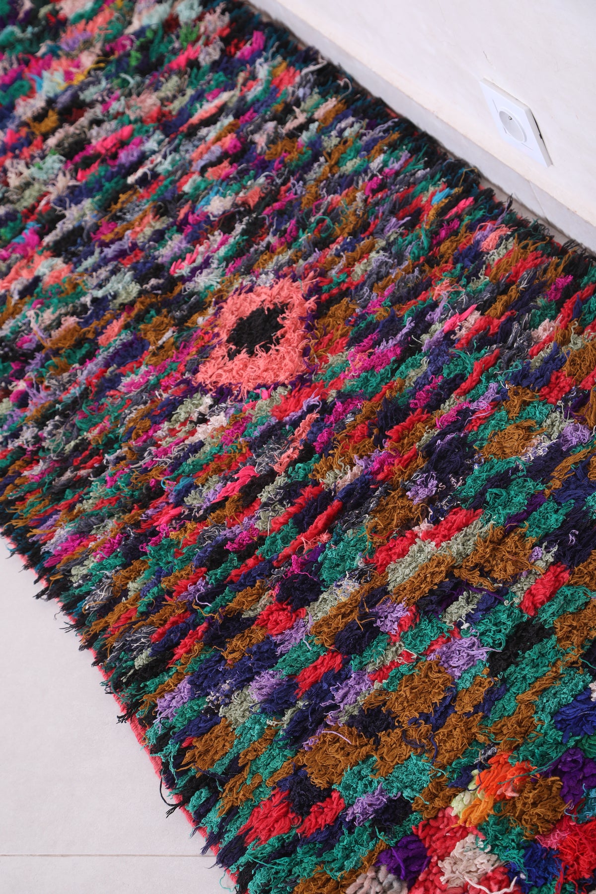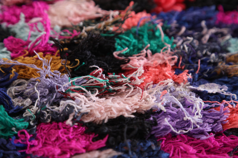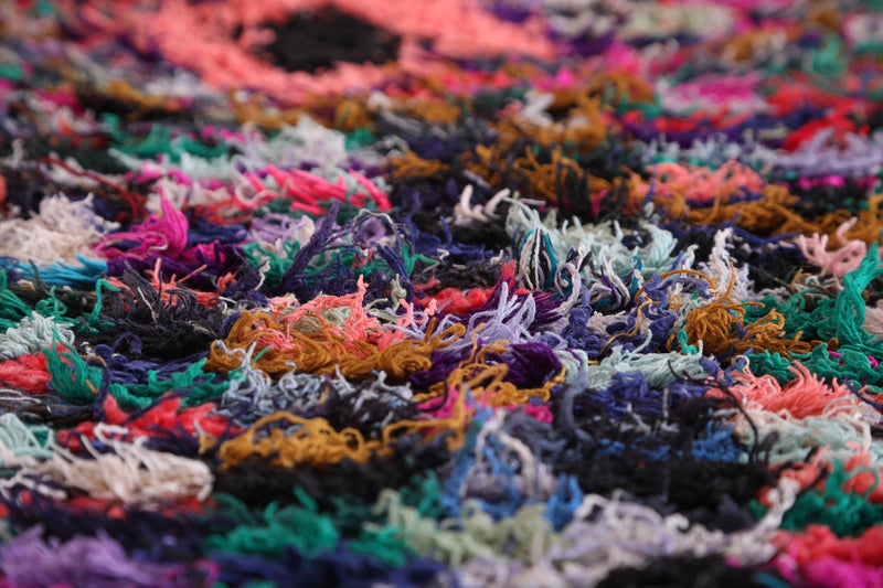 • Handwoven in Morocco using traditional Boucherouite rug techniques