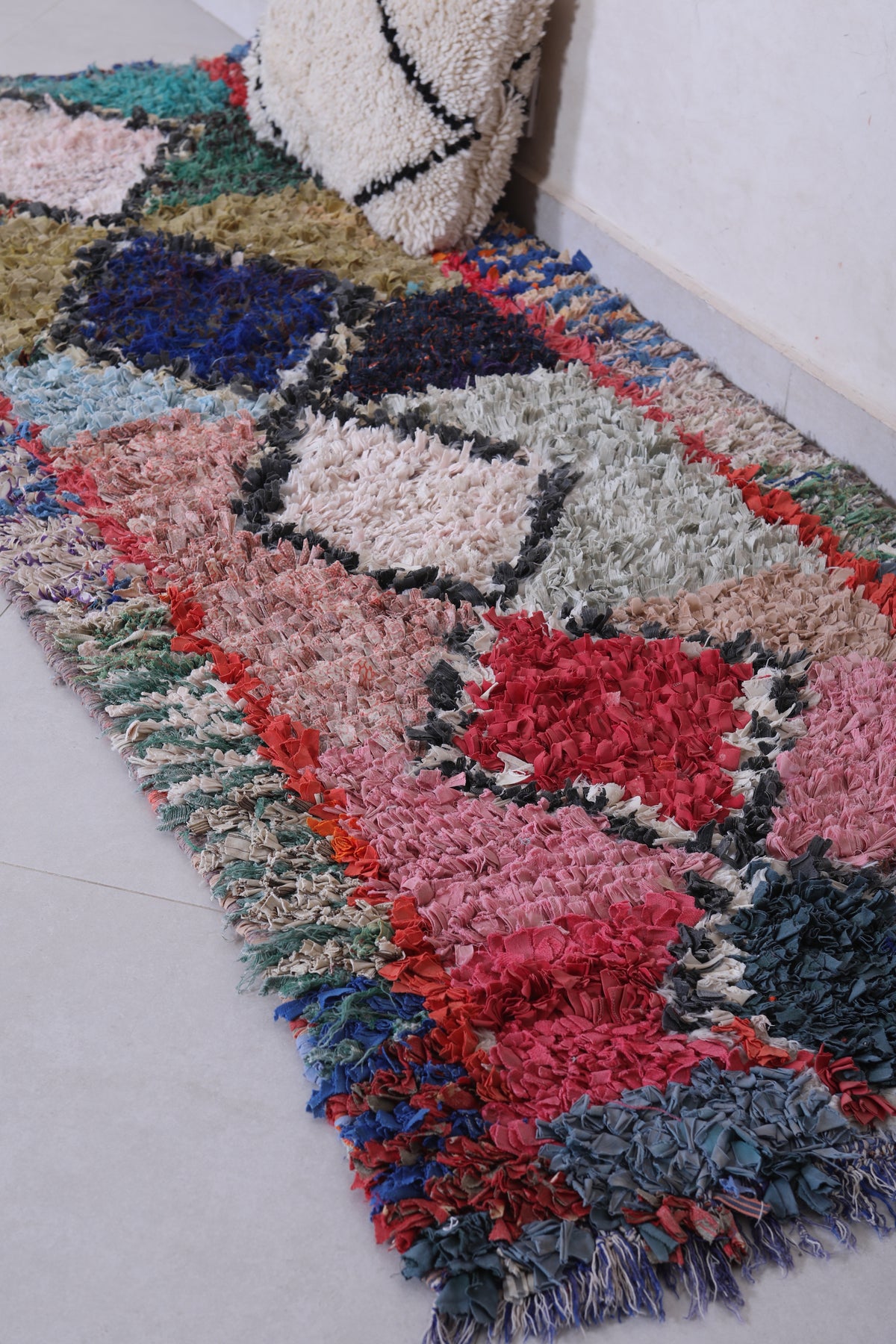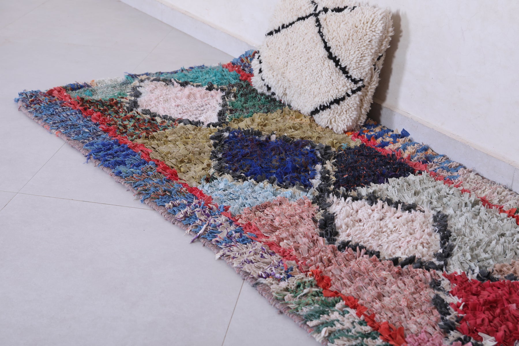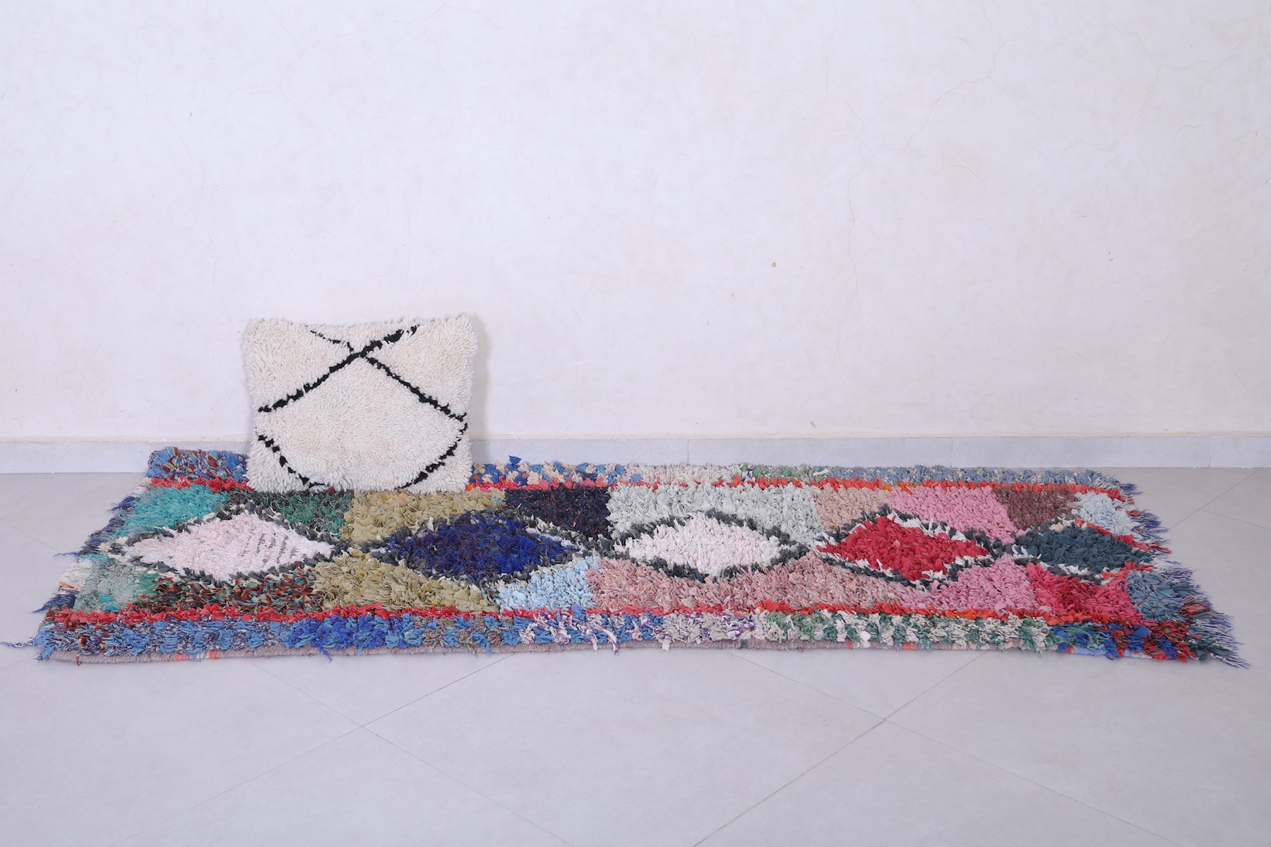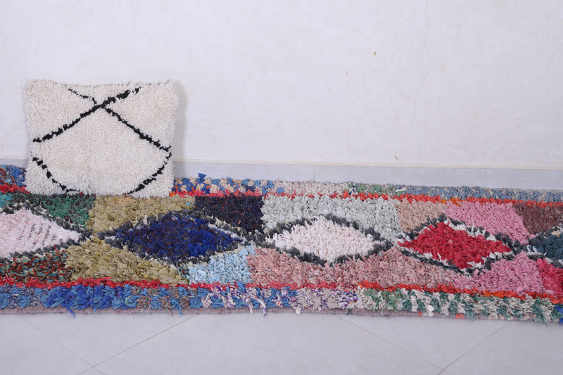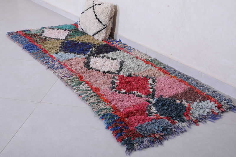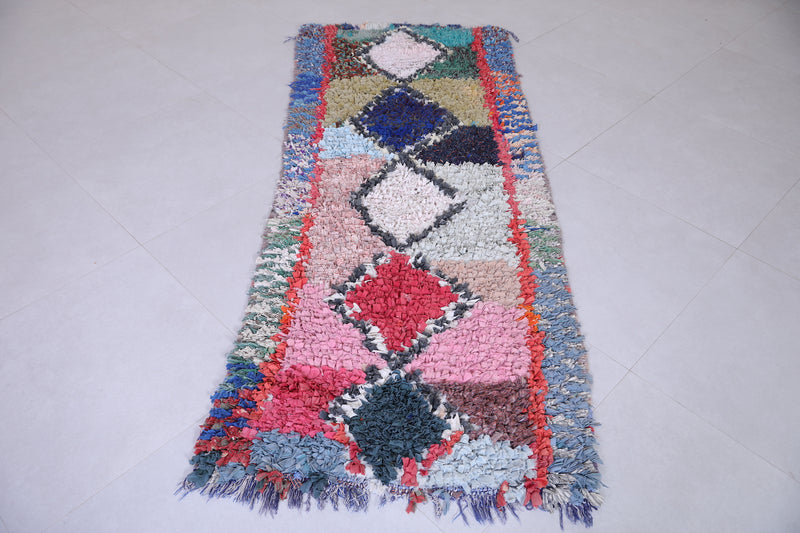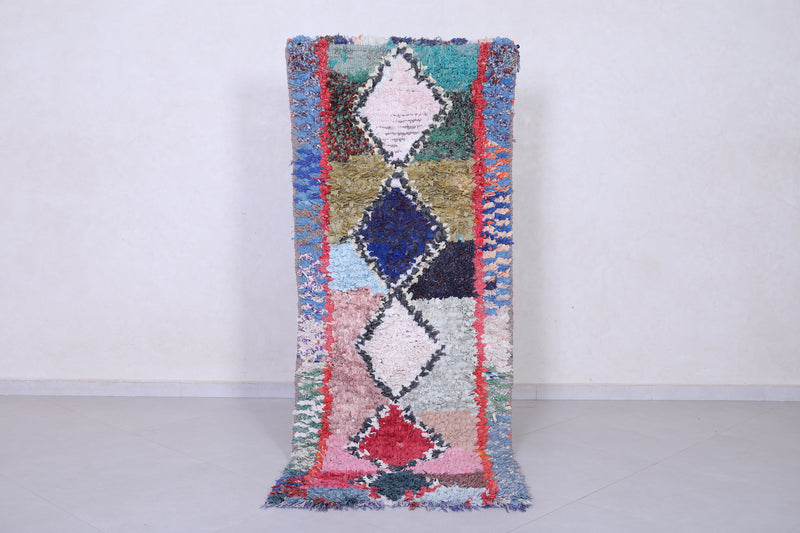 Transform your space with this Handmade Moroccan Rug in a vibrant bohemian style. Measuring 2.7 ft x 7 ft, it features bold diamond motifs and colorful contrasts, perfect for hallways, living rooms, or eclectic bedrooms.