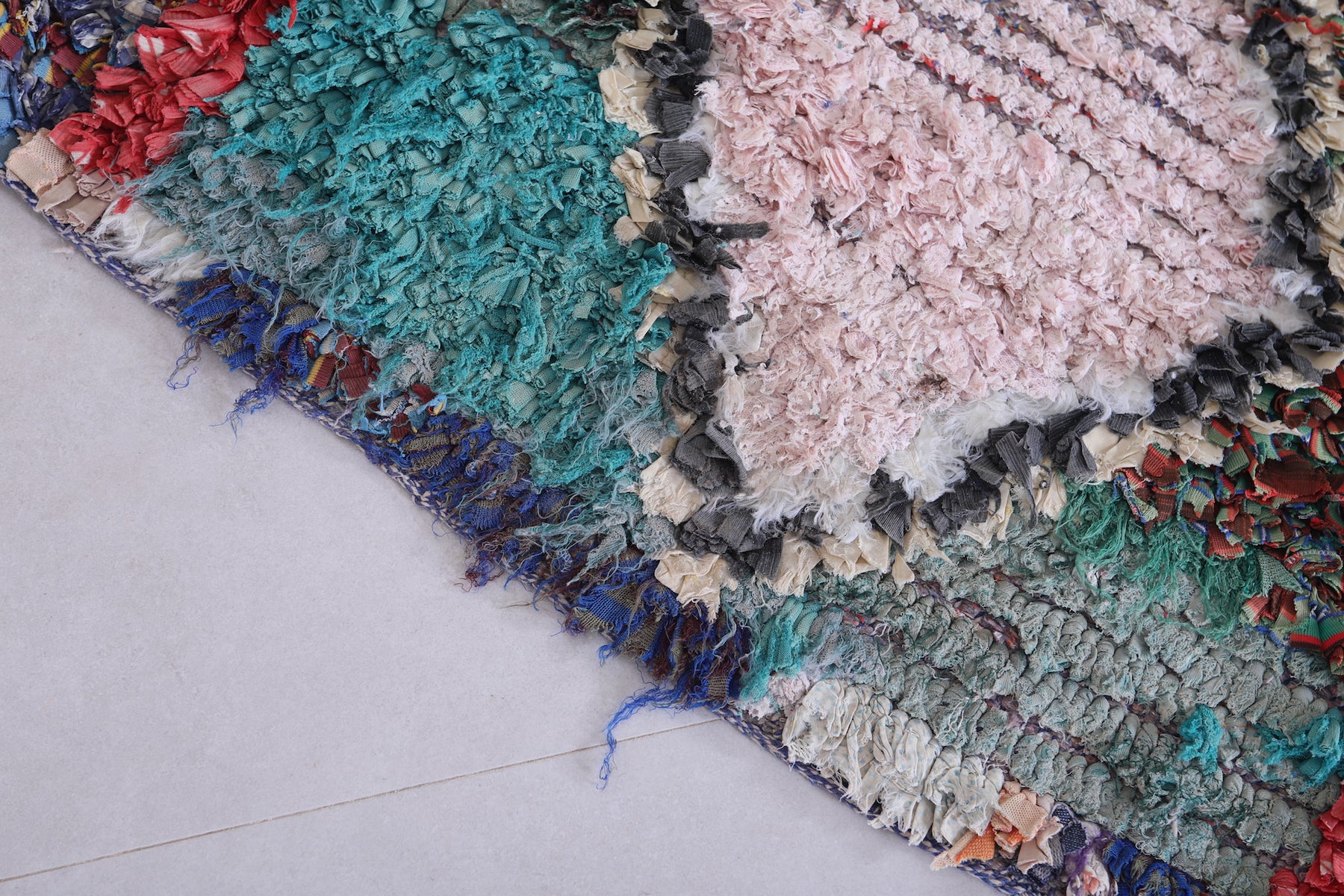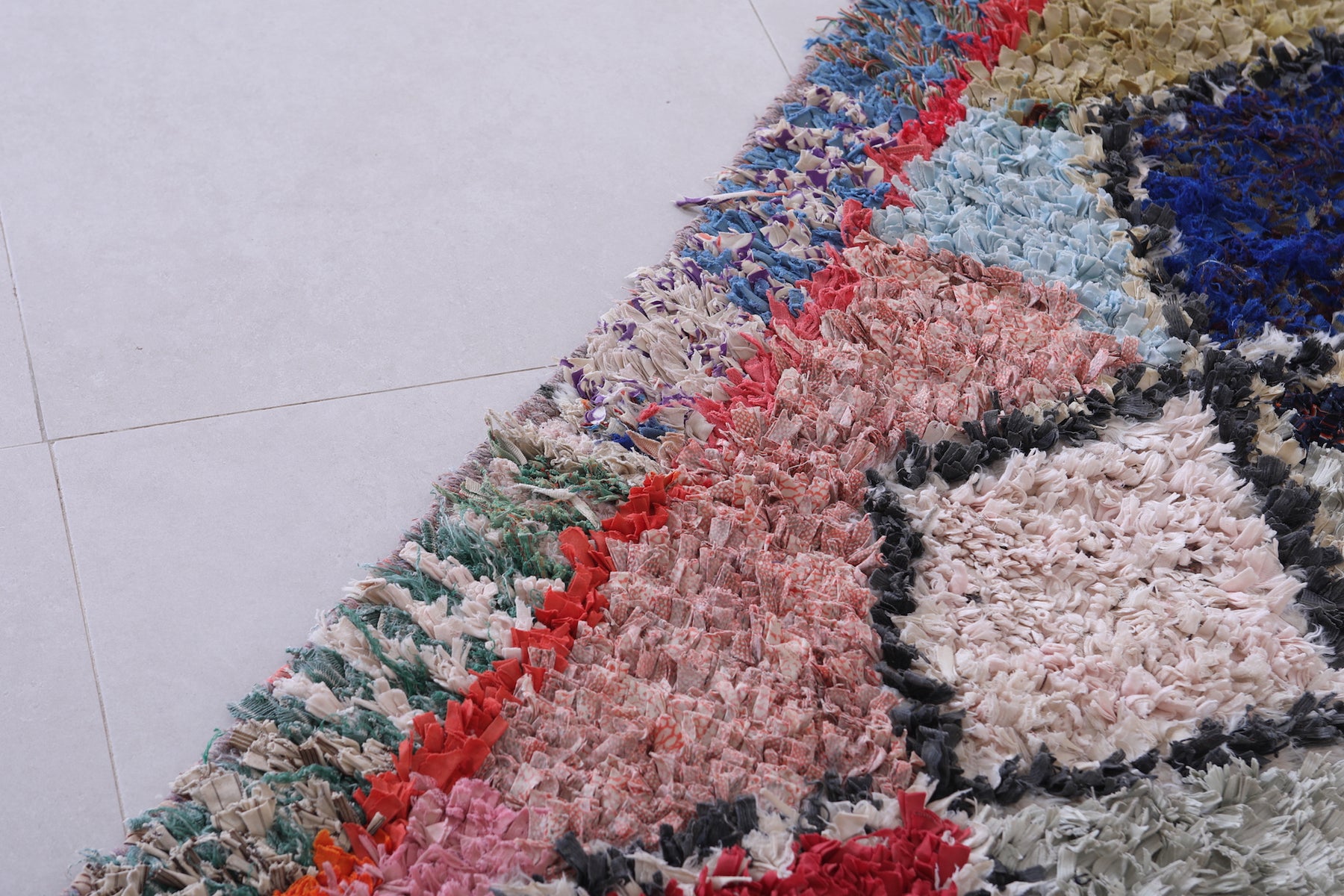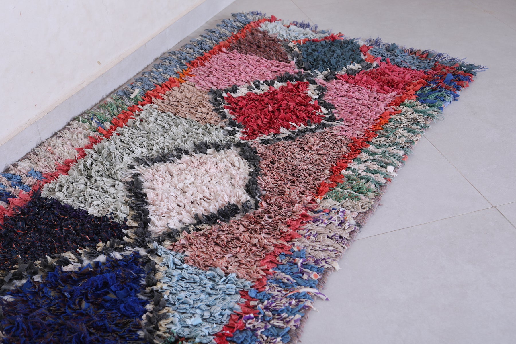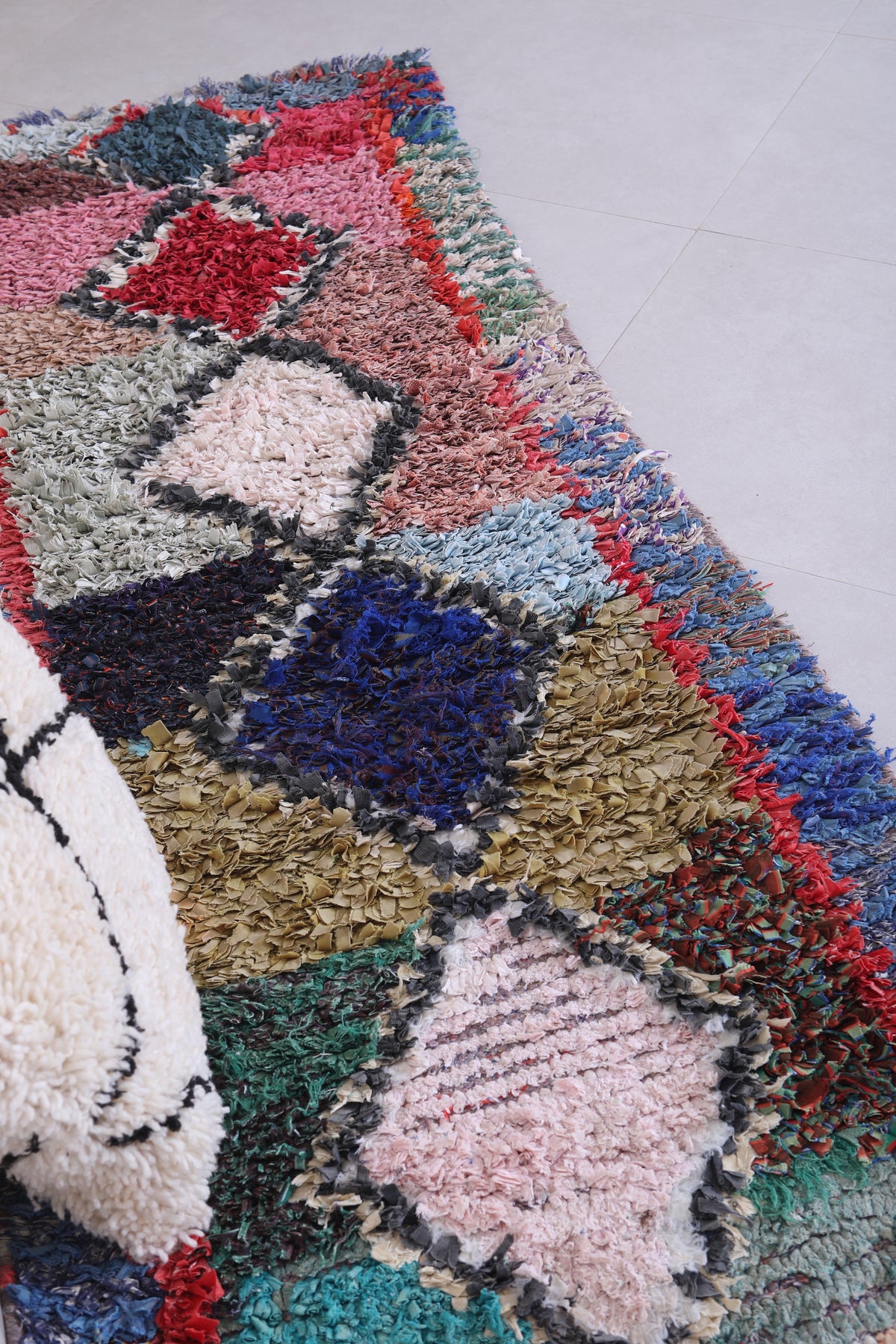 Transform your space with this Handmade Moroccan Rug in a vibrant bohemian style. Measuring 2.7 ft x 7 ft, it features bold diamond motifs and colorful contrasts, perfect for hallways, living rooms, or eclectic bedrooms.