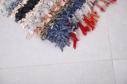 Add warmth and texture to your home with this Colorful Moroccan Berber Rug, measuring 2.6 x 5.6 FT. Featuring vibrant striped patterns in earthy and bold tones, this handwoven rug brings traditional Moroccan craftsmanship to modern spaces. Perfect for entryways, living rooms, or as an accent rug, it is crafted from recycled materials, ensuring sustainability and uniqueness. Durable and versatile, this Berber rug is an eco-friendly choice that enhances any decor.